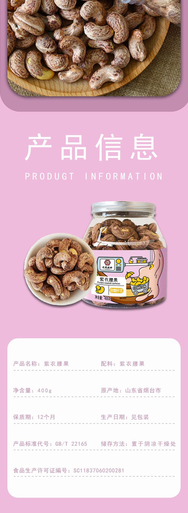 【自营】花家盛世 0添加烘焙腰果500g圆罐装新鲜健康美味 HJSSJG025