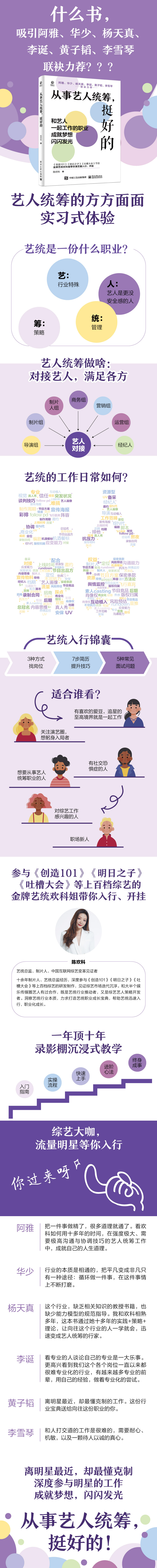 《创造1010》《吐槽大会》《明日之子》等100多档综艺的金*艺统欢科姐,系统介绍艺人统筹这个职业,给准备从事艺人统筹职业的人介绍行业前景,个人能力和职业要求匹配自测,如何入行,沉浸式了解艺统工作的日常,提供艺统从新手到高手的进阶方法和经验,终身从事艺统这个行业,挺好的。360度了解艺统职业的工作和生活,快速了解该职业,一本书获得十几年艺统的经验。