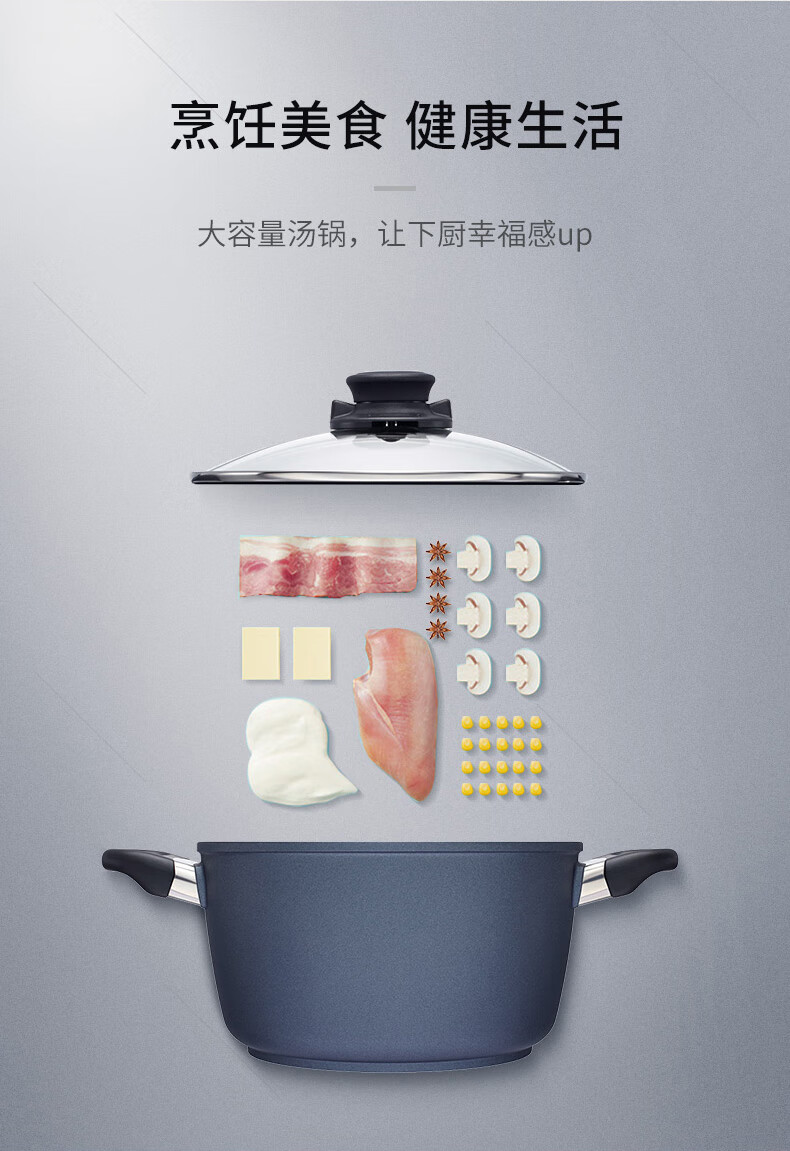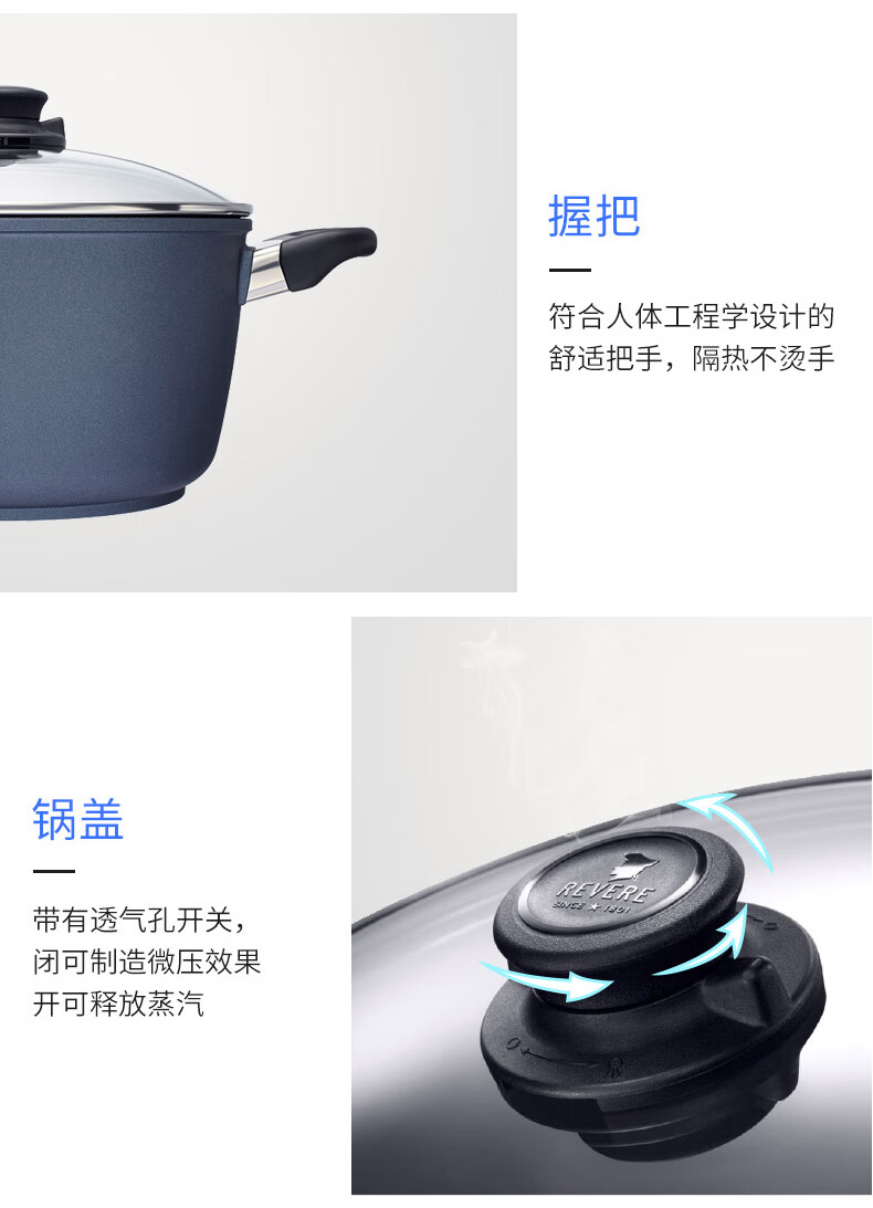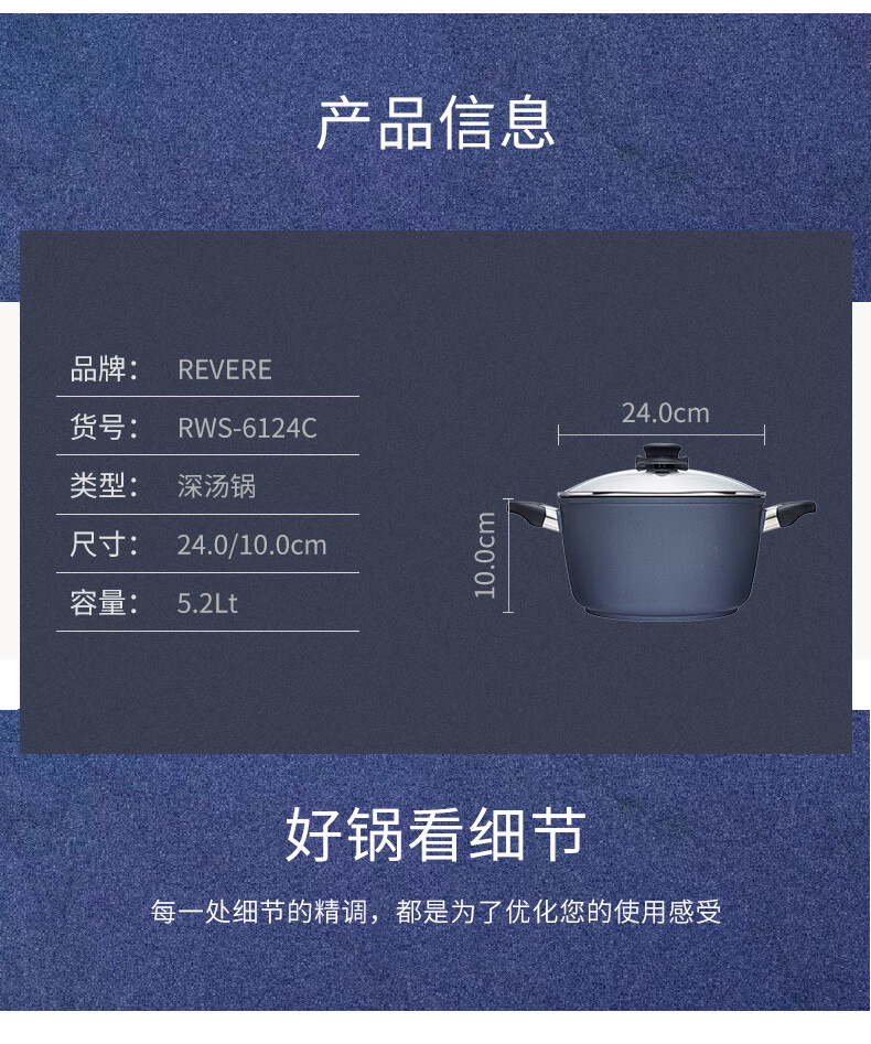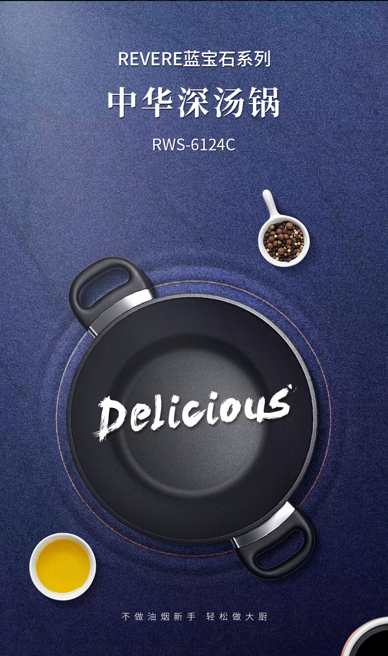 【小家电】Revere锅具蓝宝石材质带盖不粘锅汤锅深汤锅汤锅24cm RWS-6124C/YK HF