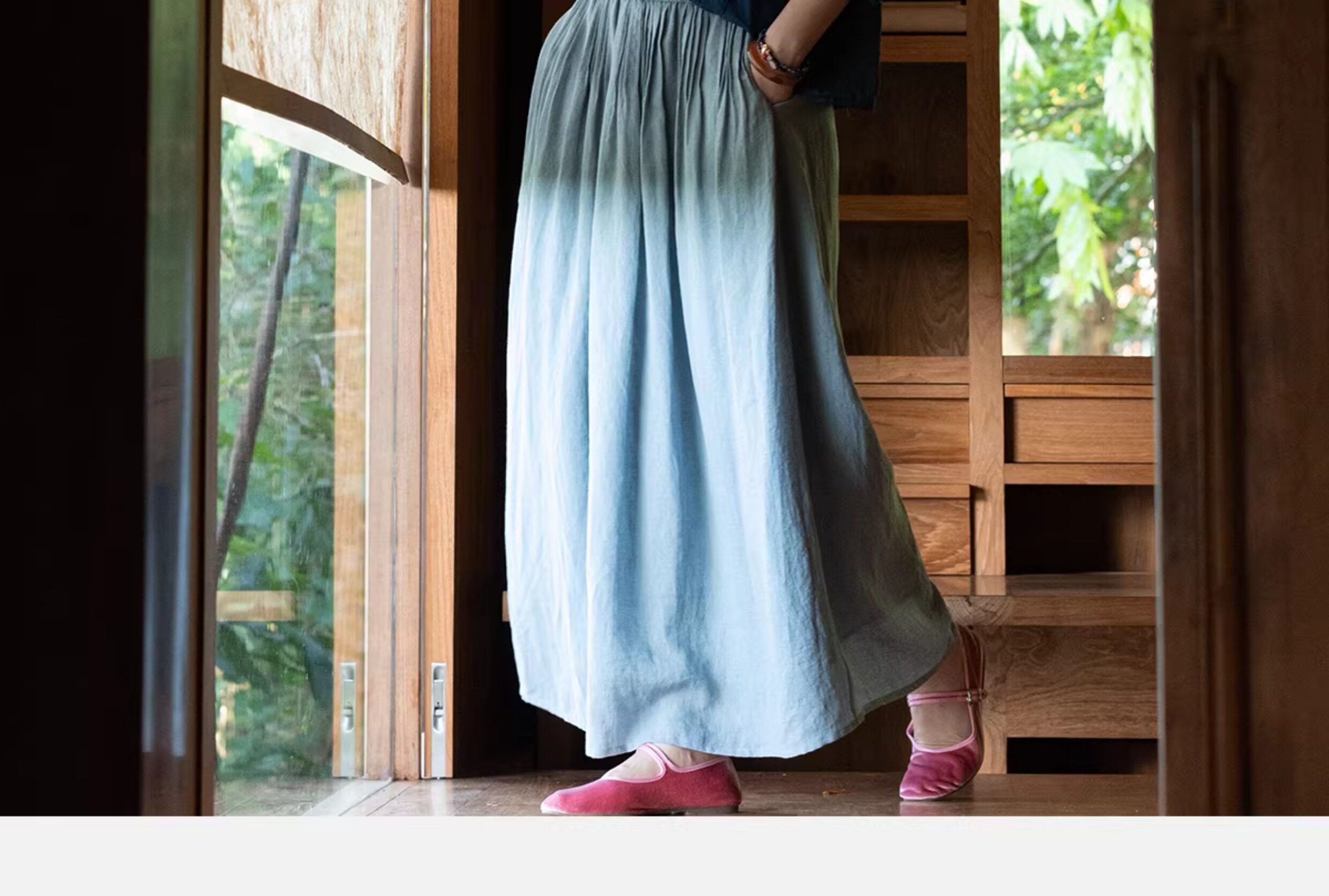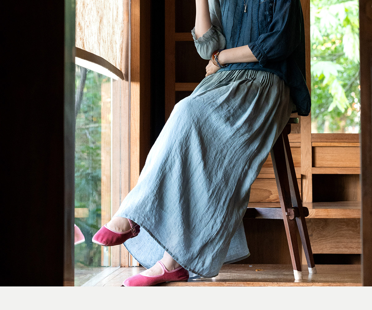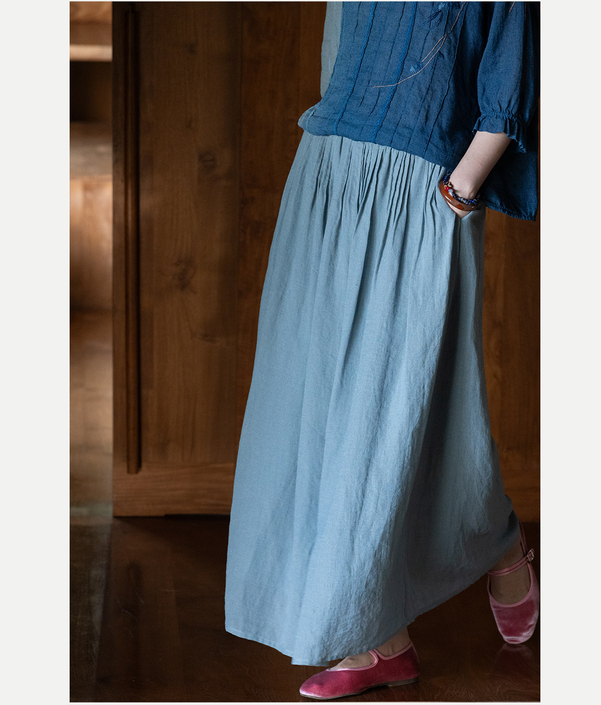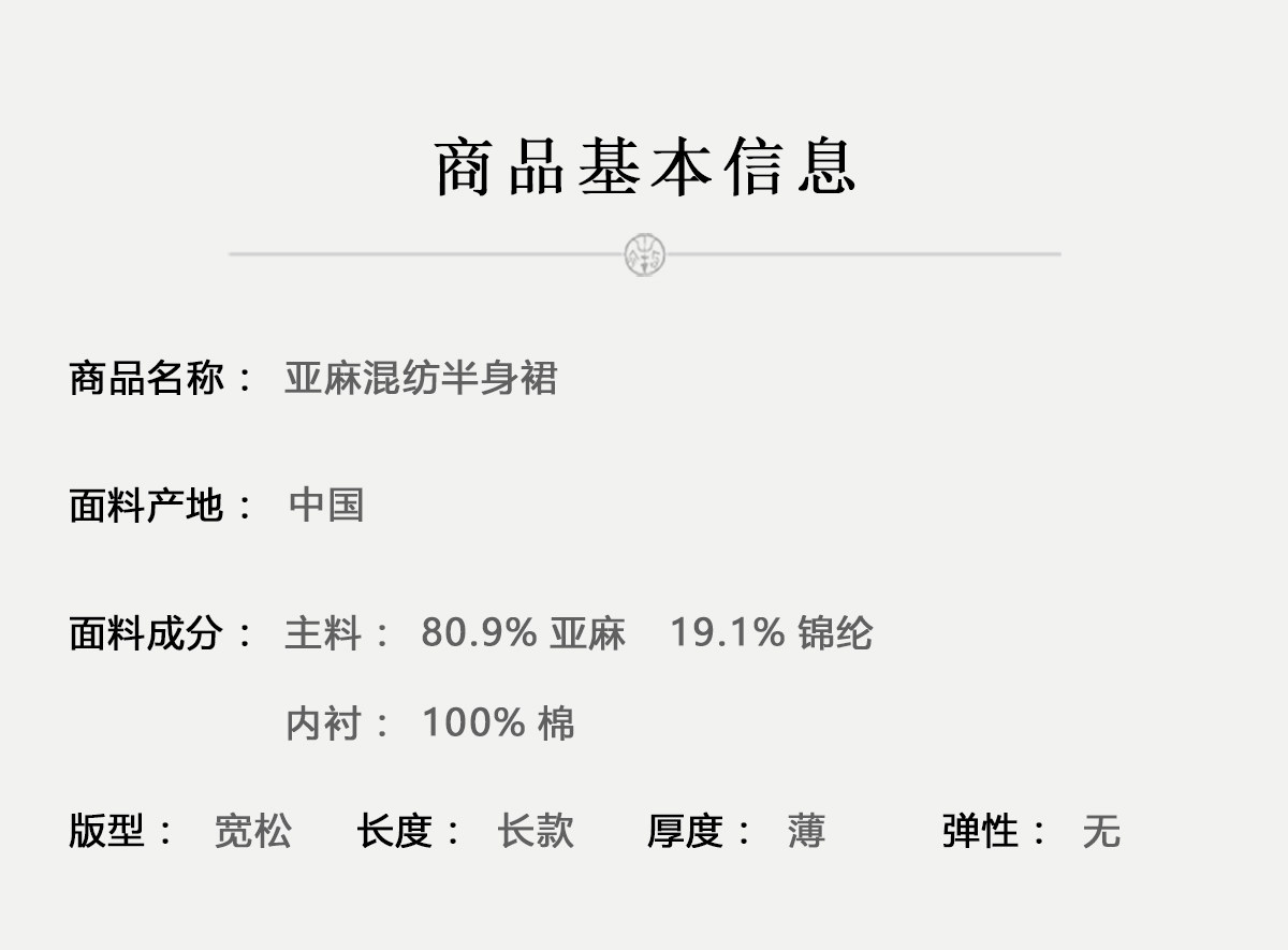 牧衣游原创 亚麻混纺半身裙新款轻薄百搭宽松文艺a字半裙 椿山