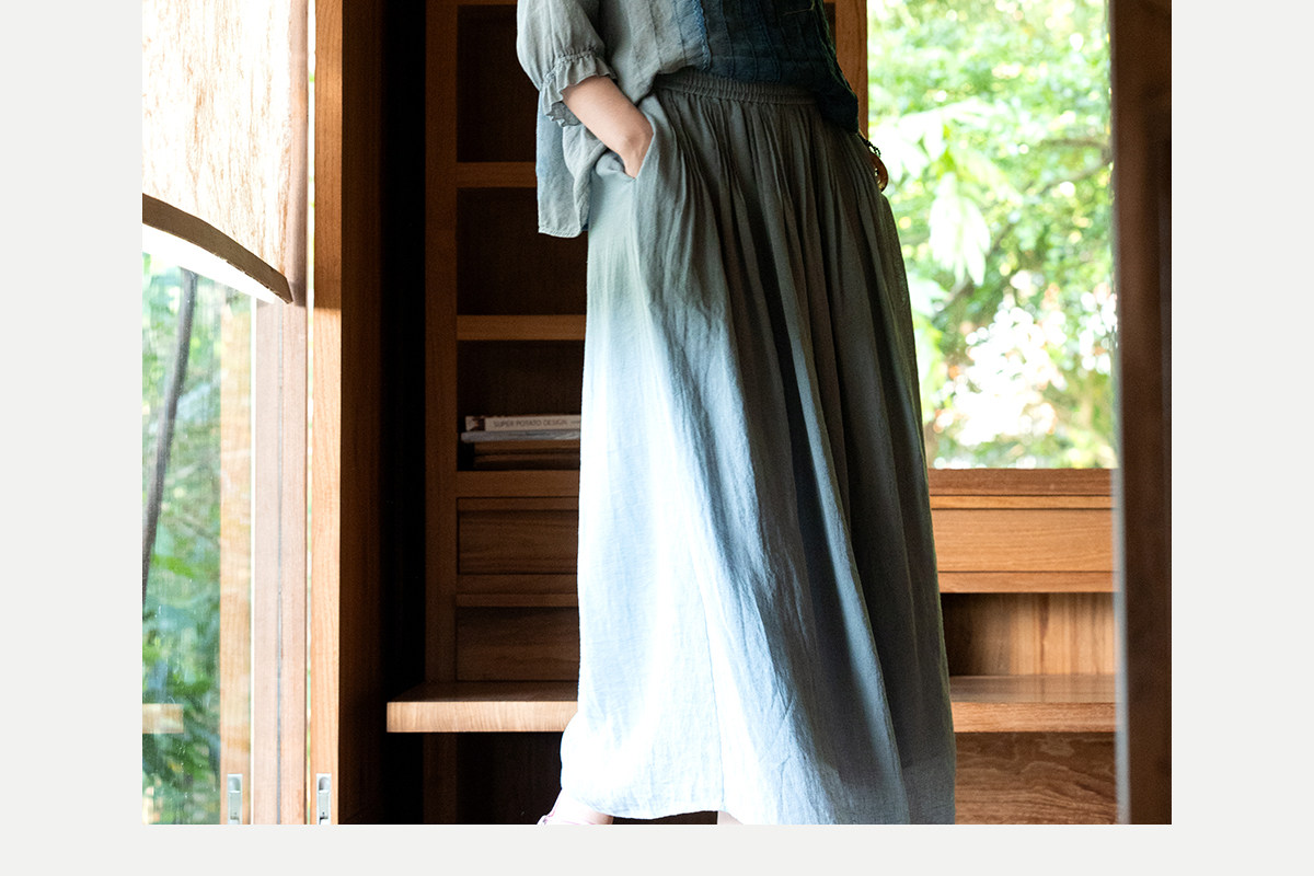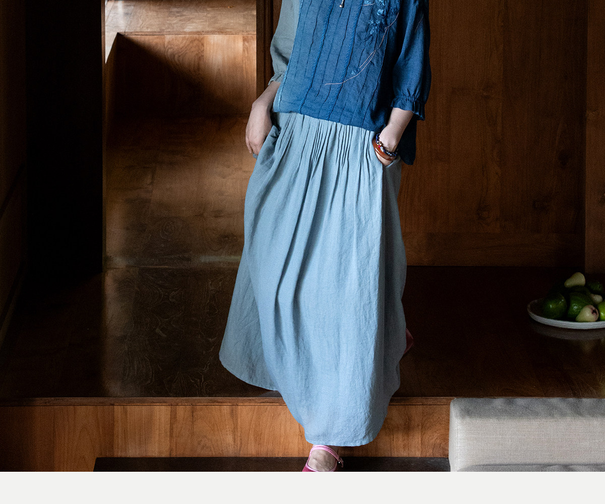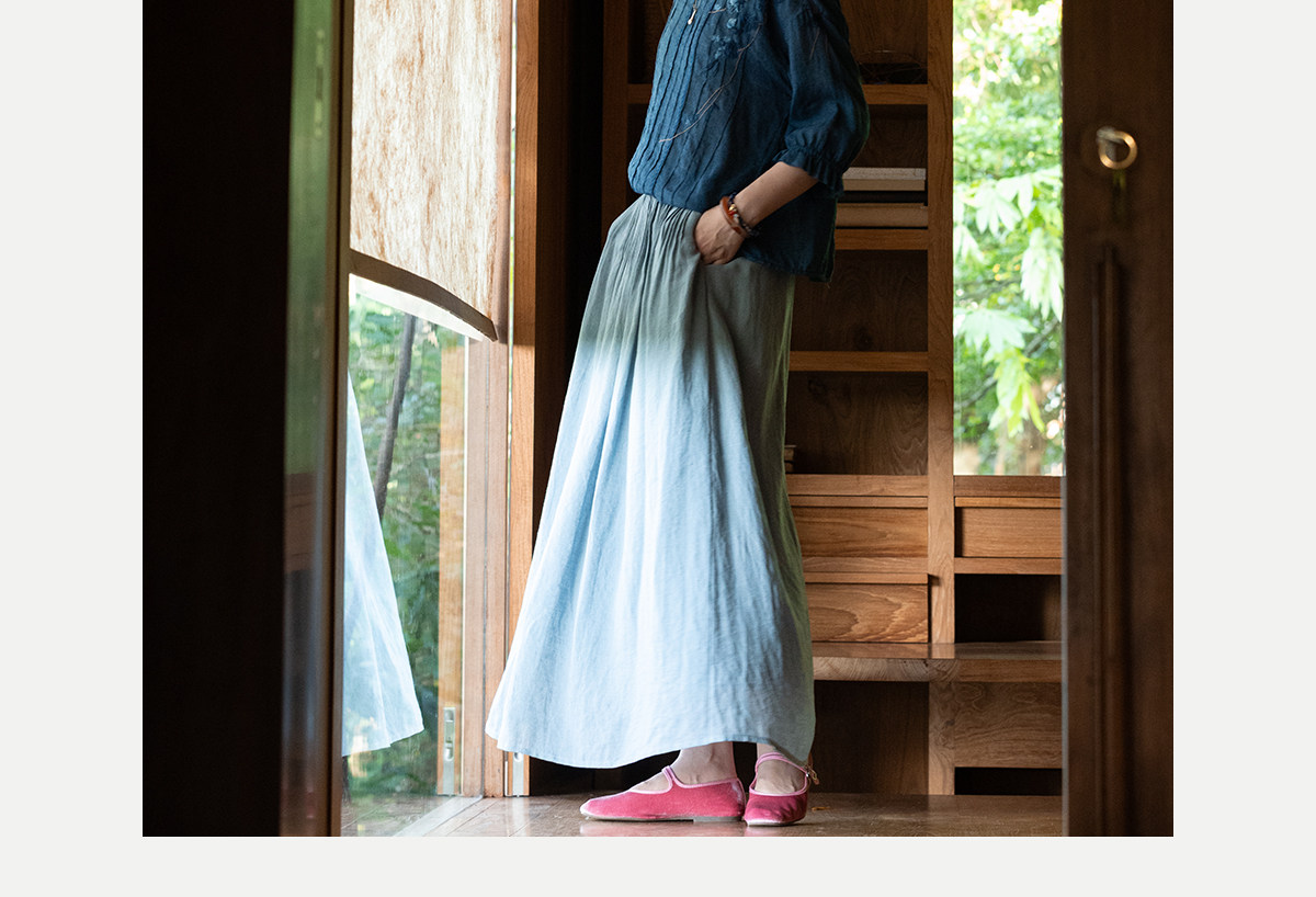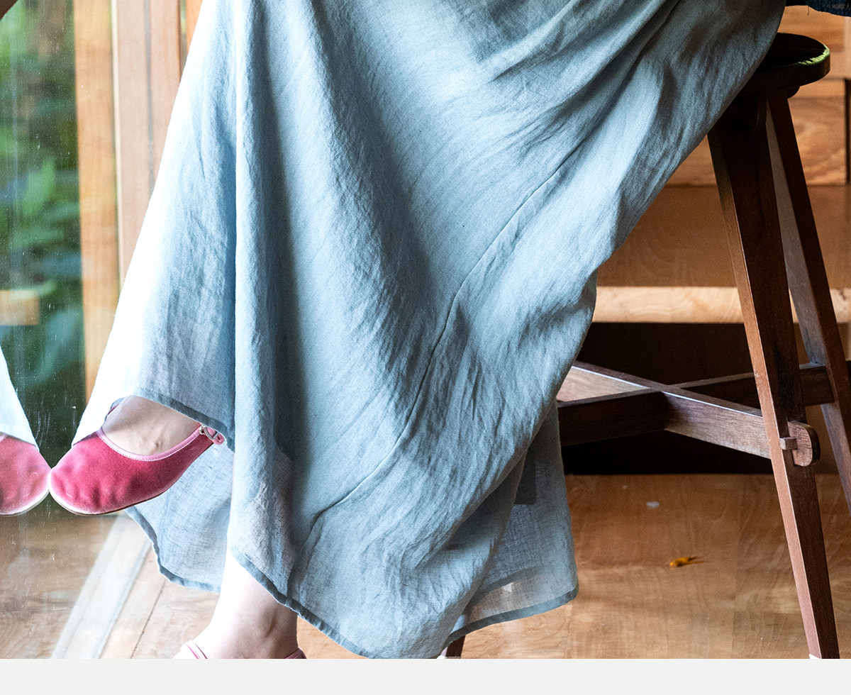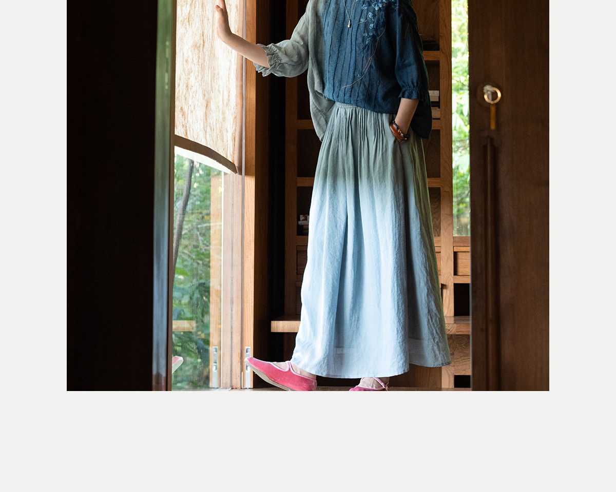 牧衣游原创 亚麻混纺半身裙新款轻薄百搭宽松文艺a字半裙 椿山
