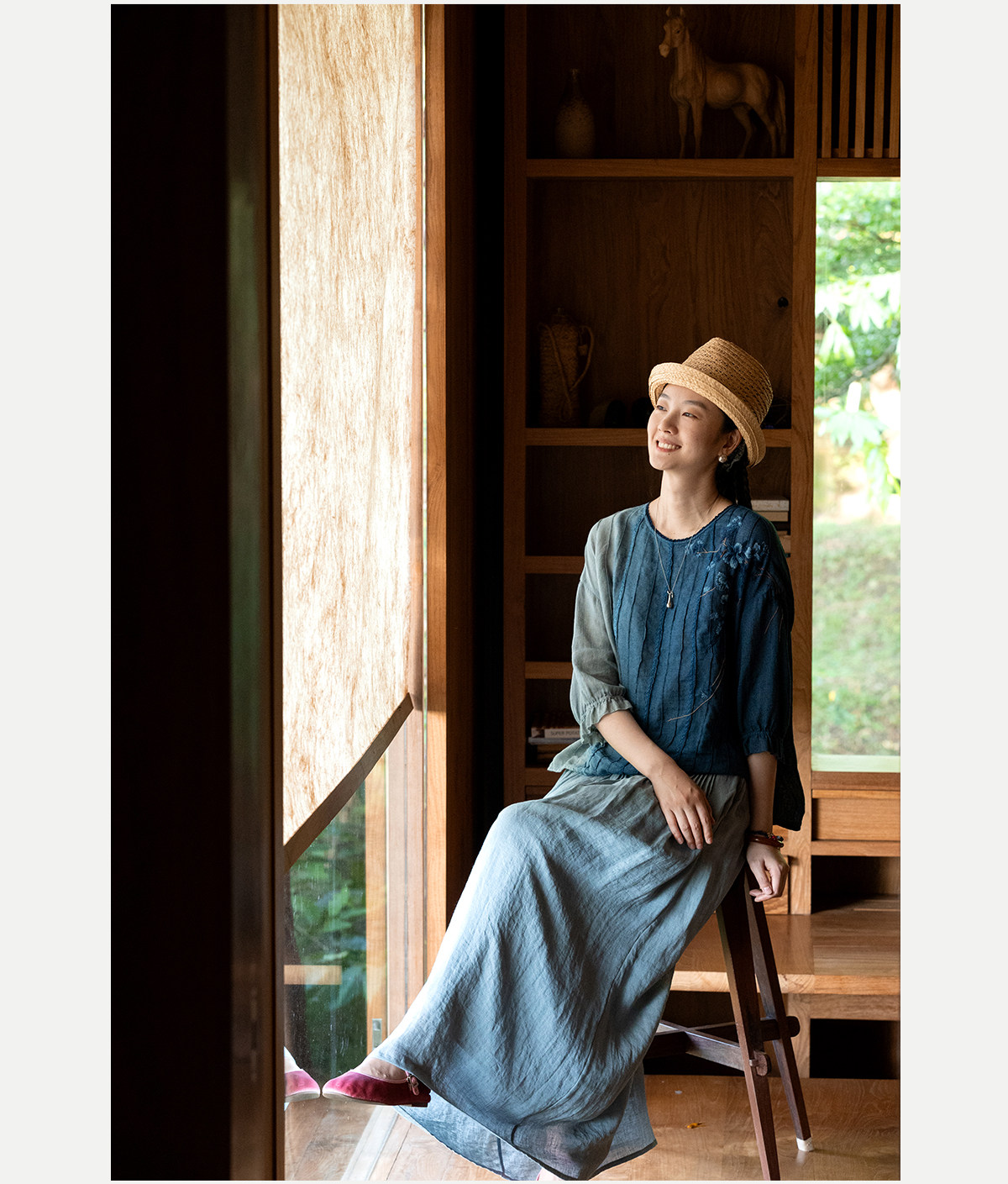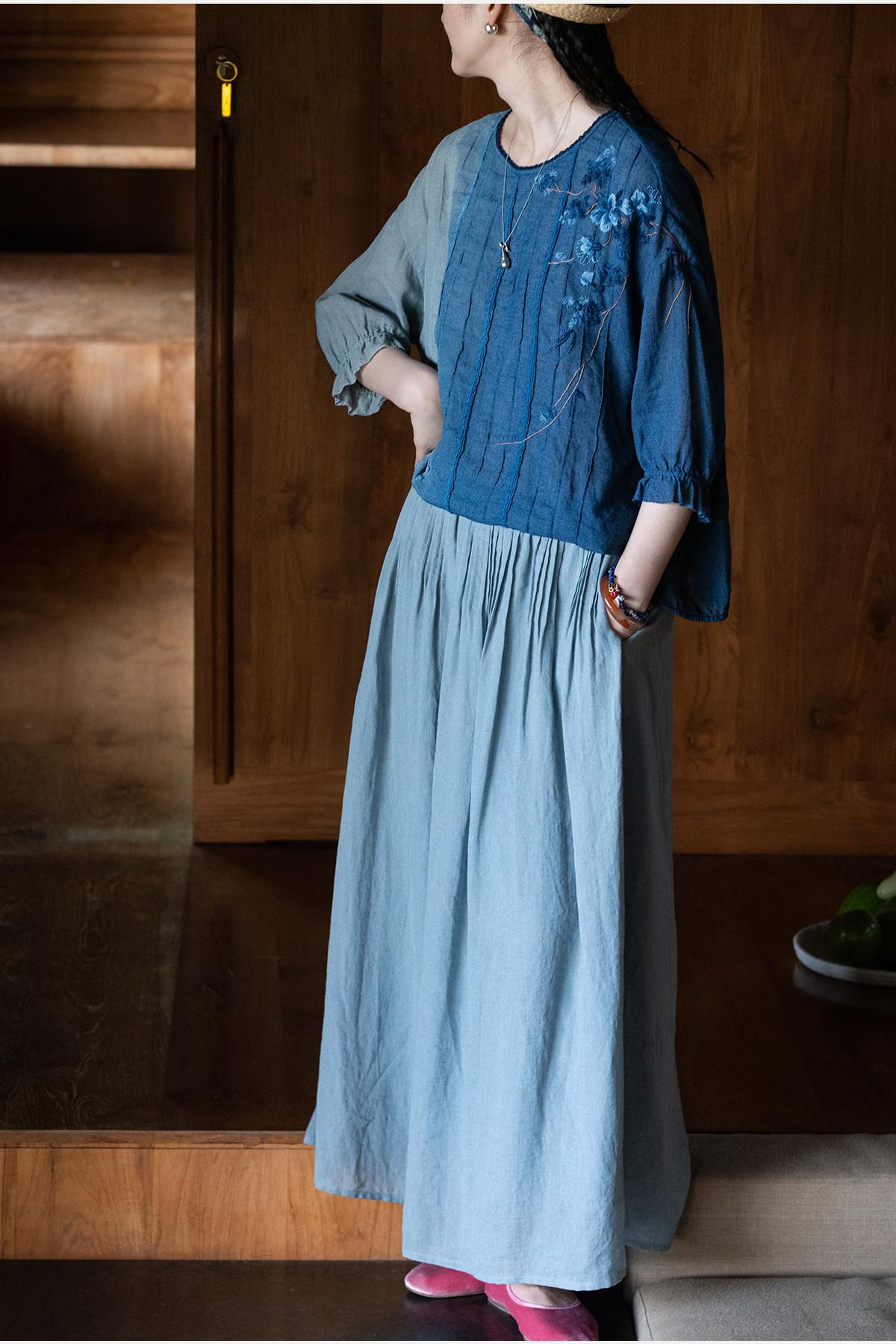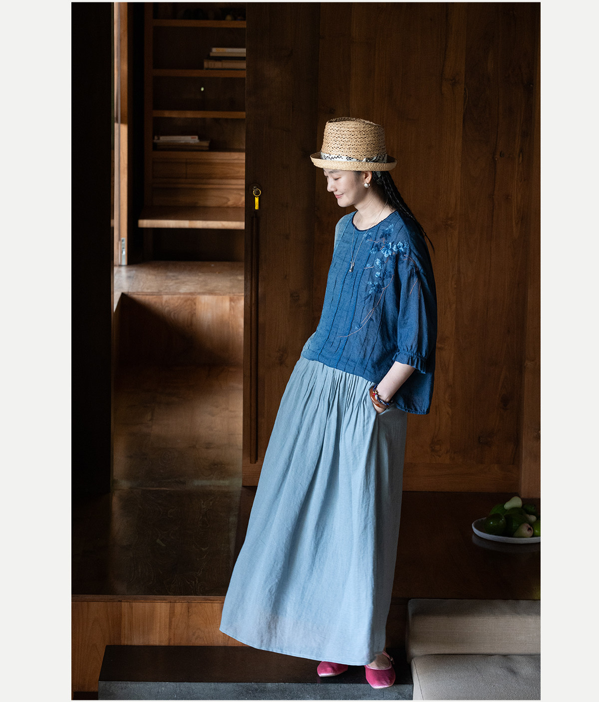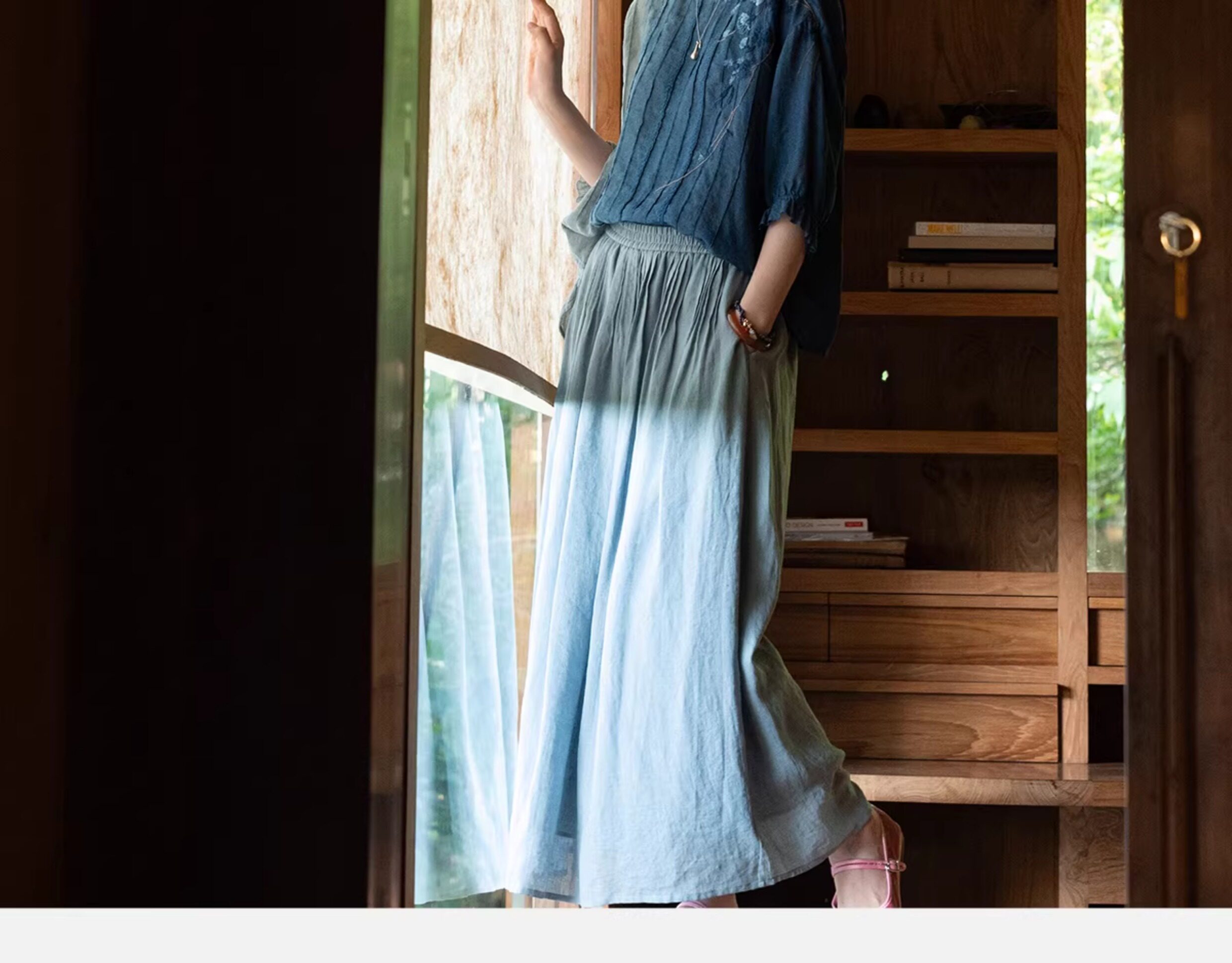 牧衣游原创 亚麻混纺半身裙新款轻薄百搭宽松文艺a字半裙 椿山