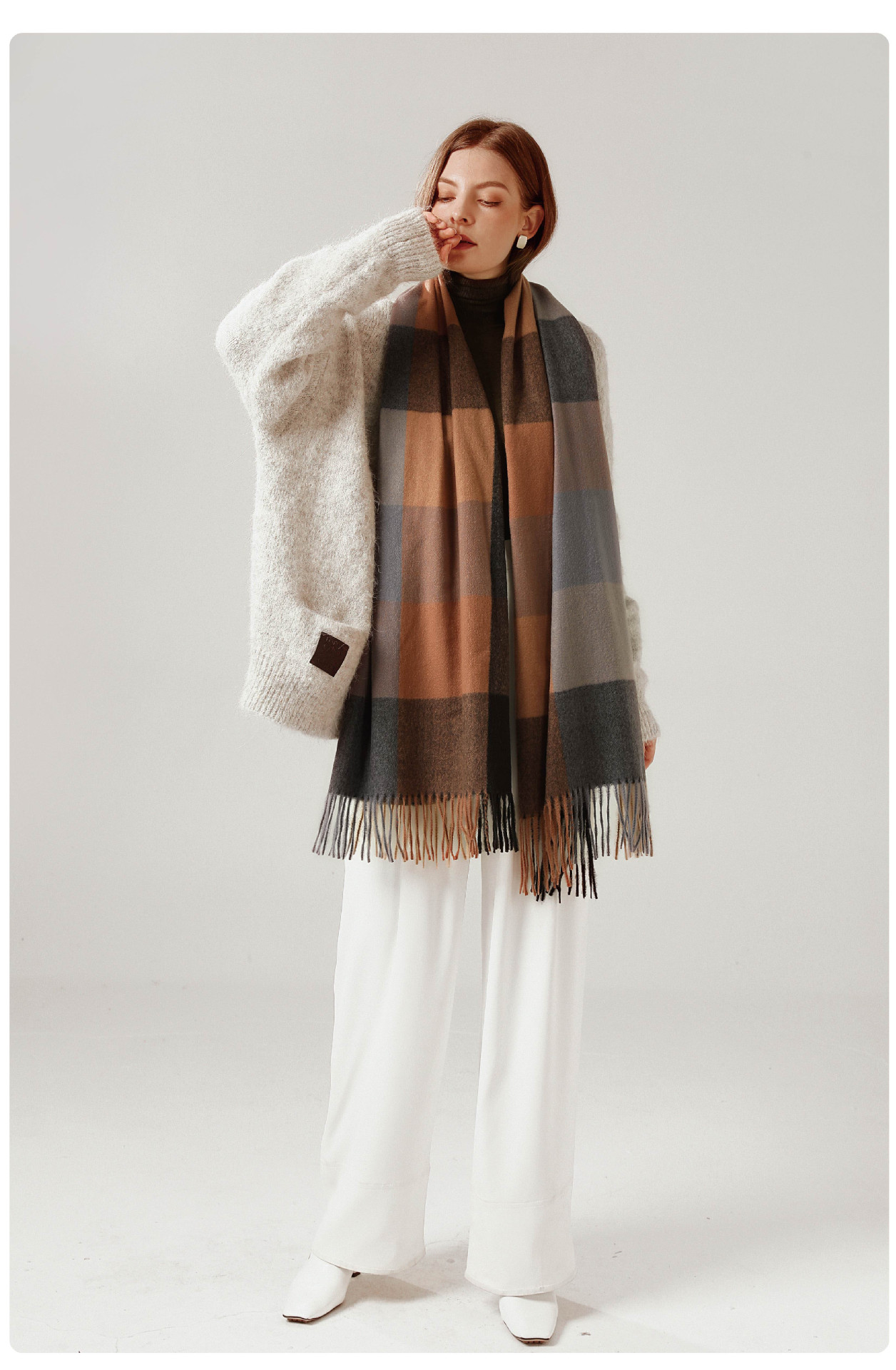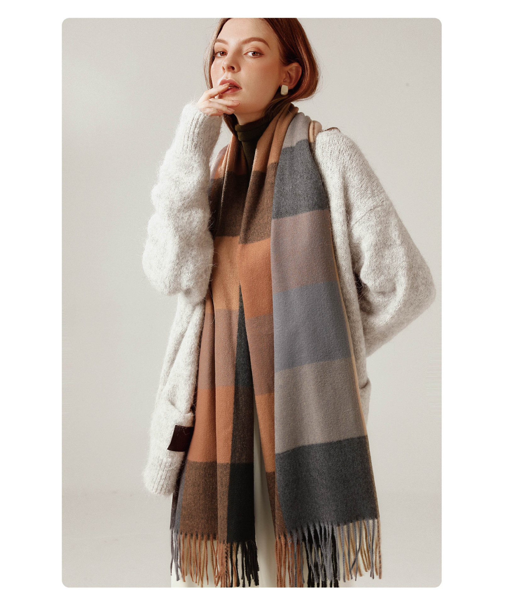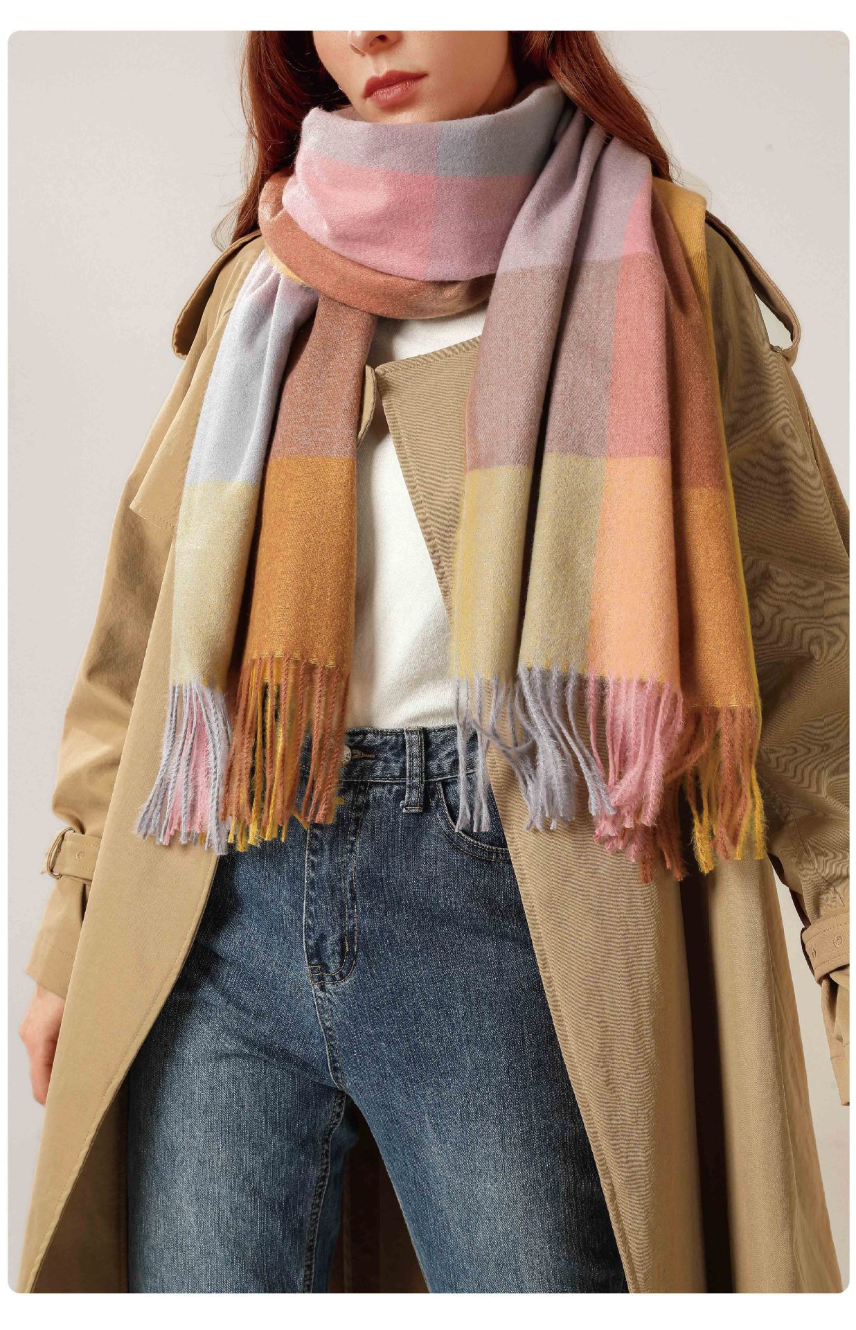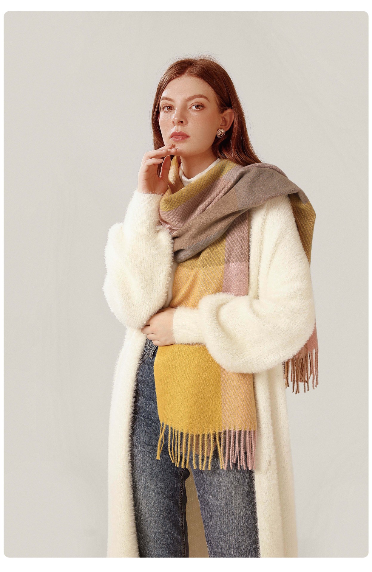 2025时尚女士围巾条纹格子大披肩优雅名媛风秋冬保暖围巾女高级感