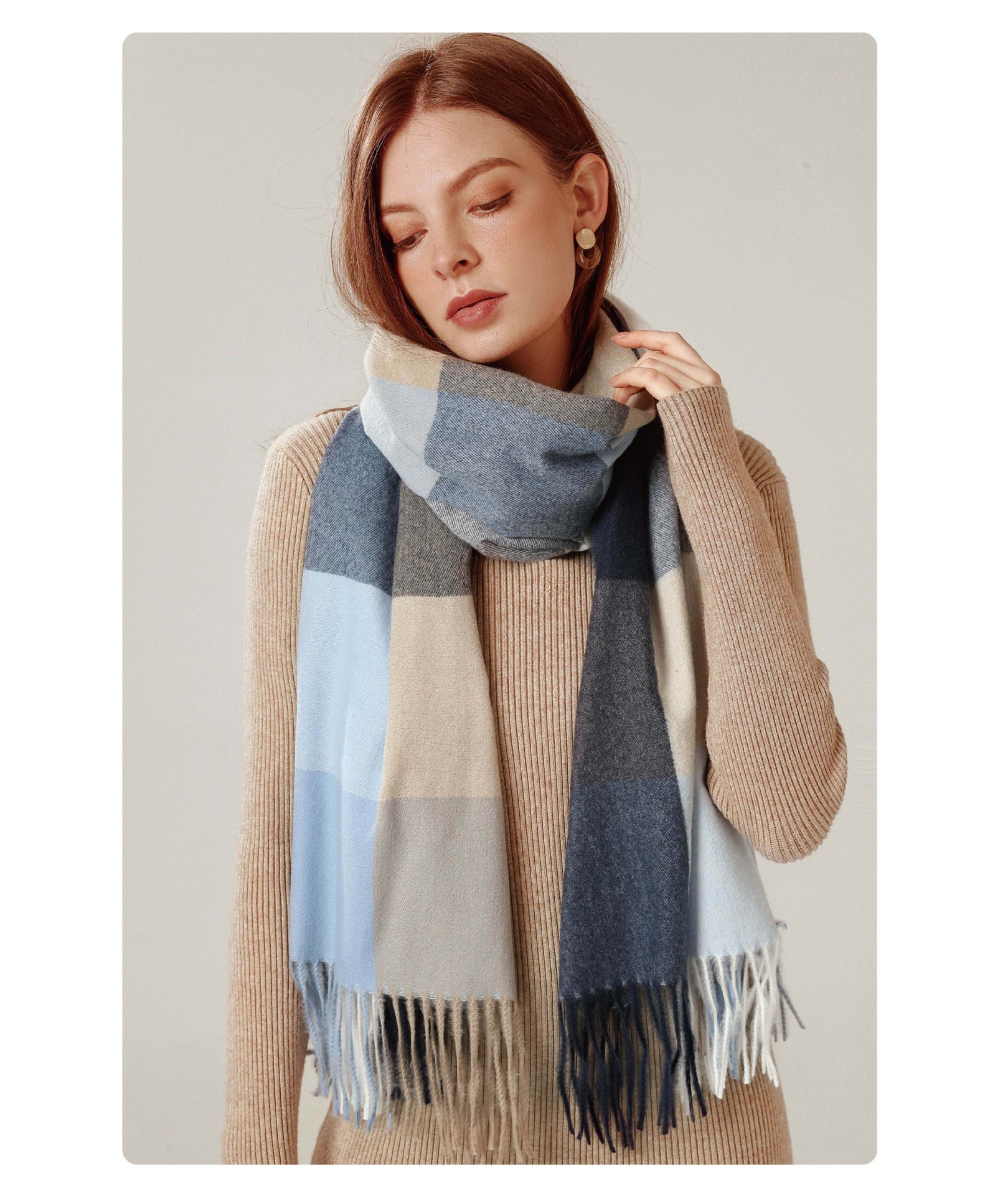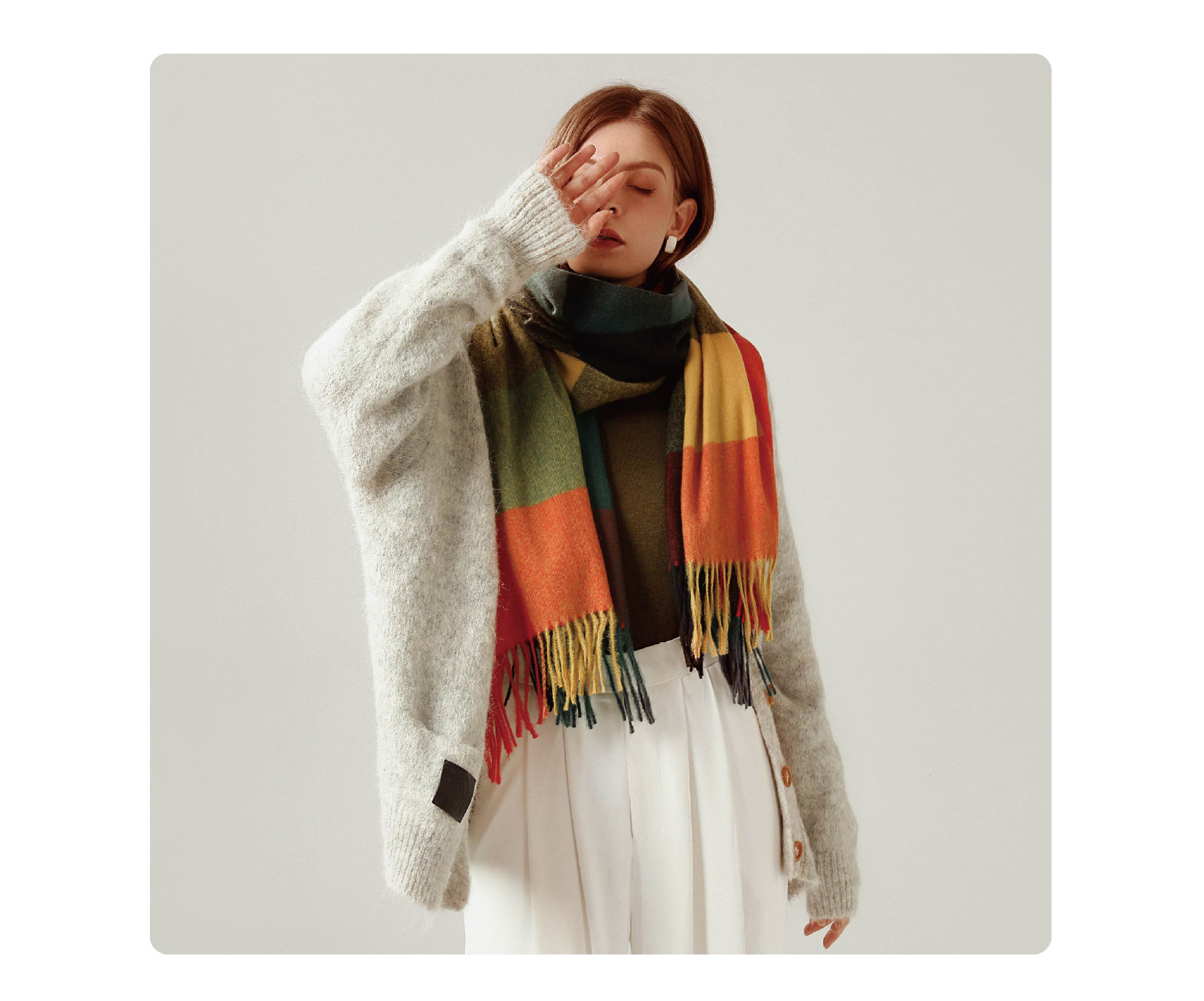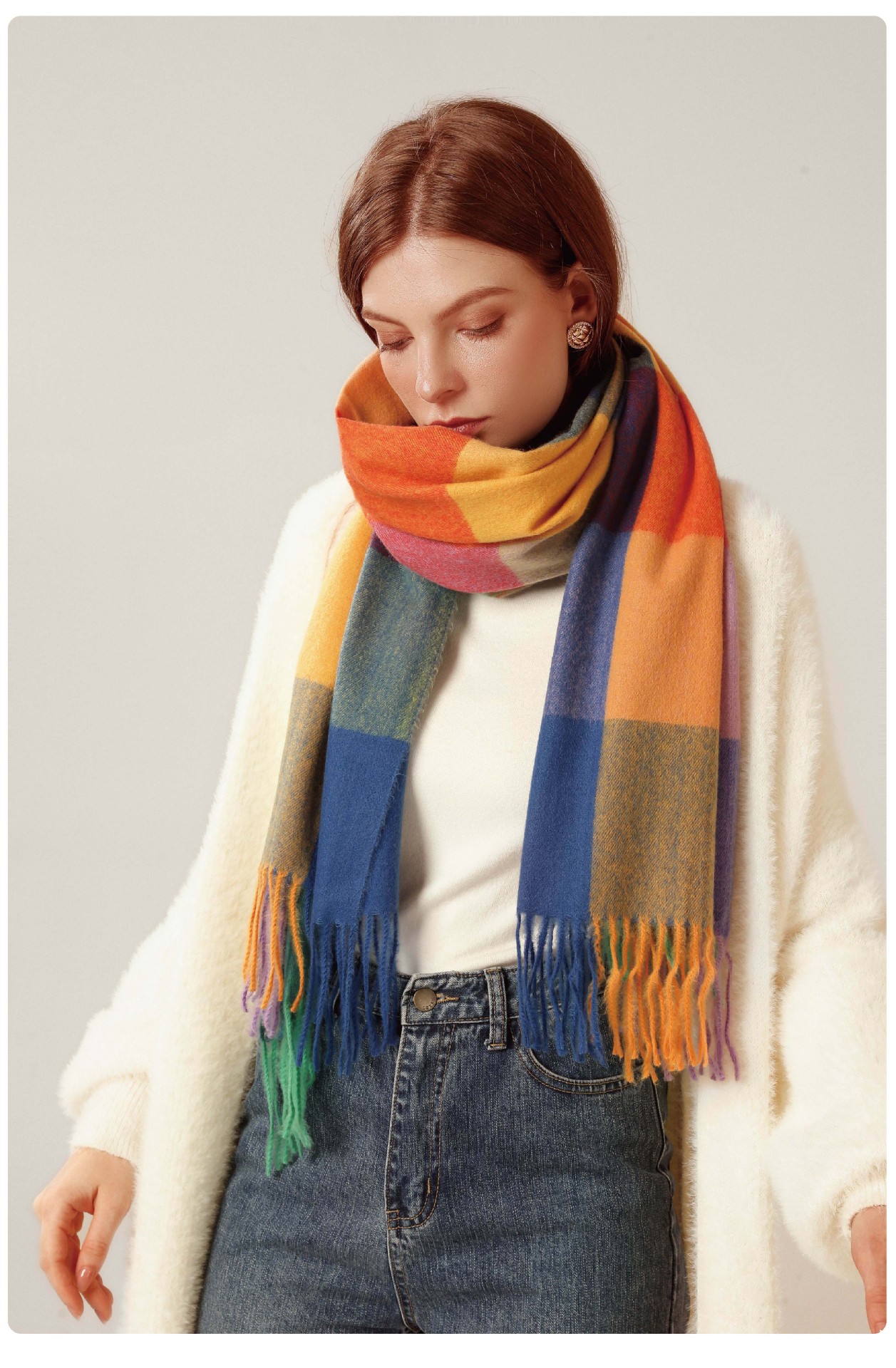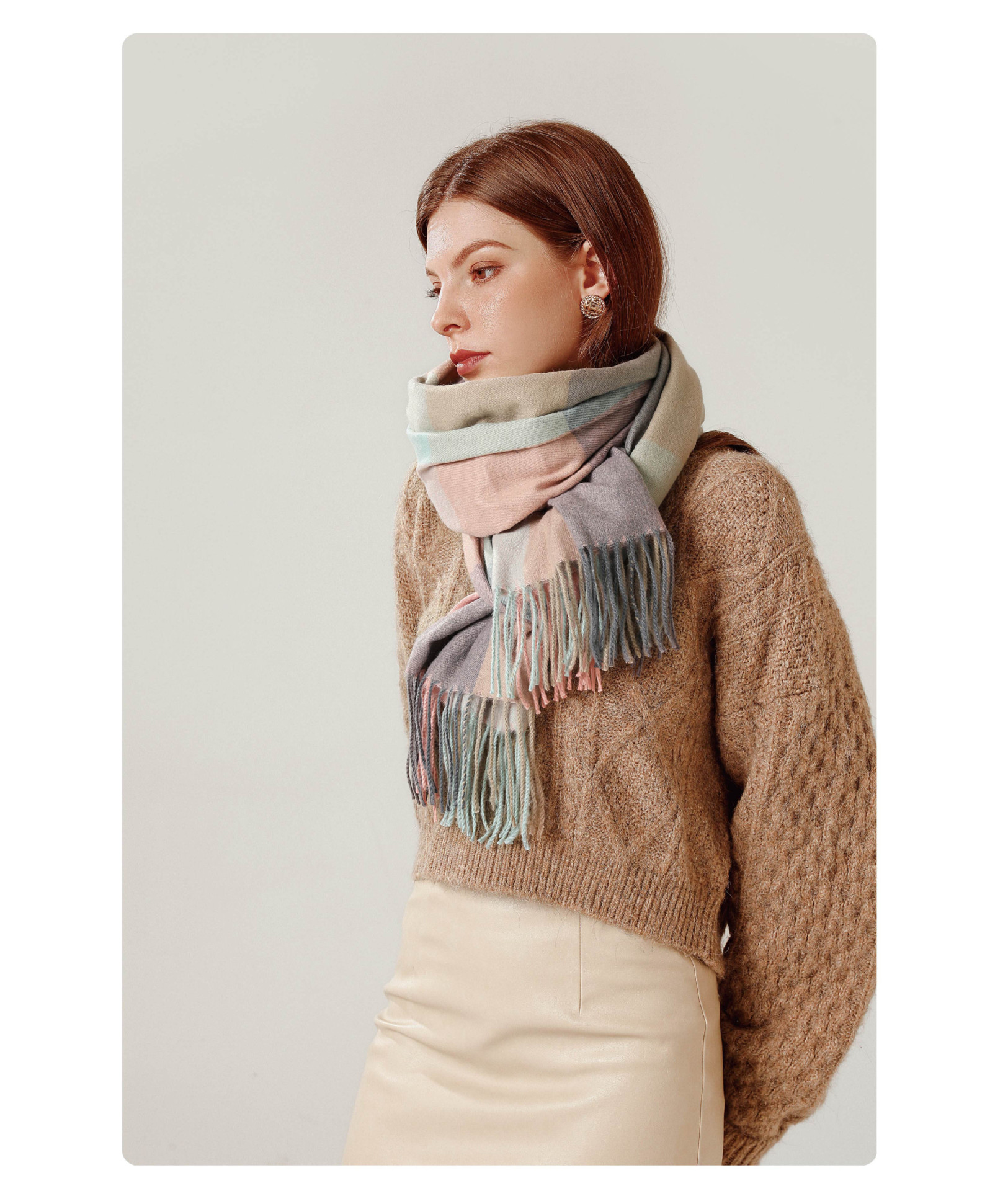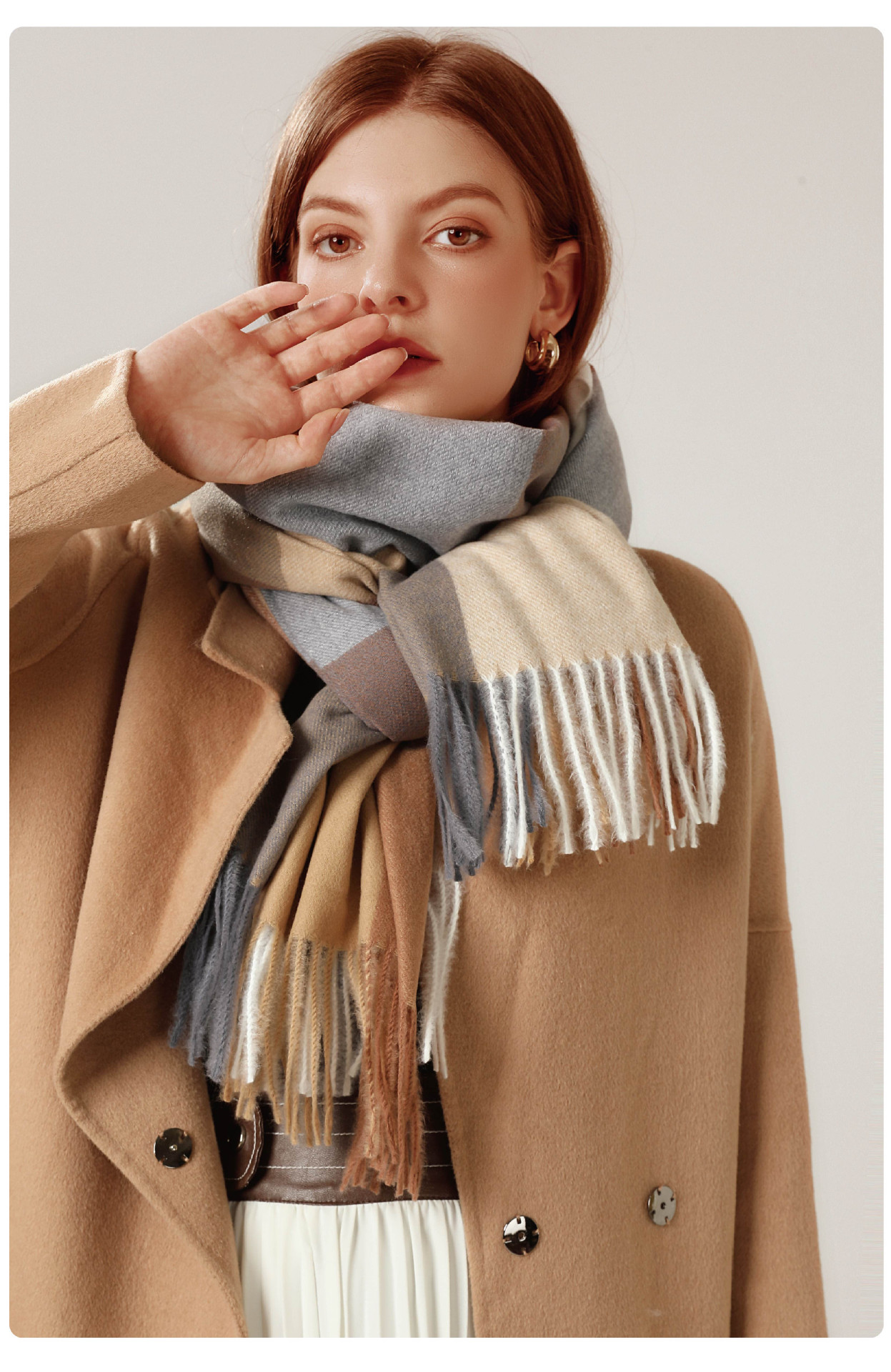 2025时尚女士围巾条纹格子大披肩优雅名媛风秋冬保暖围巾女高级感