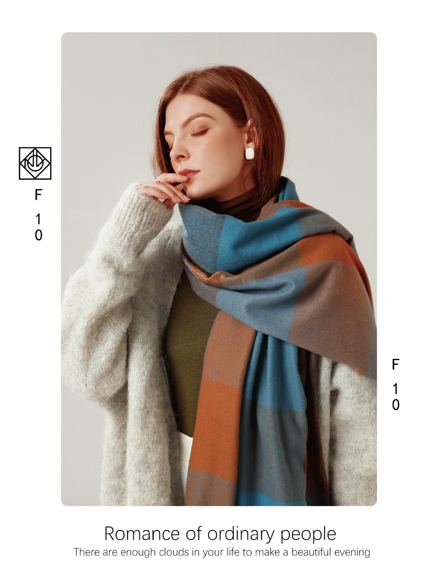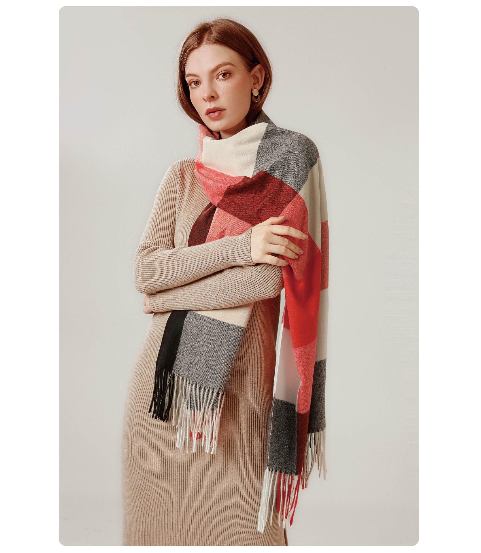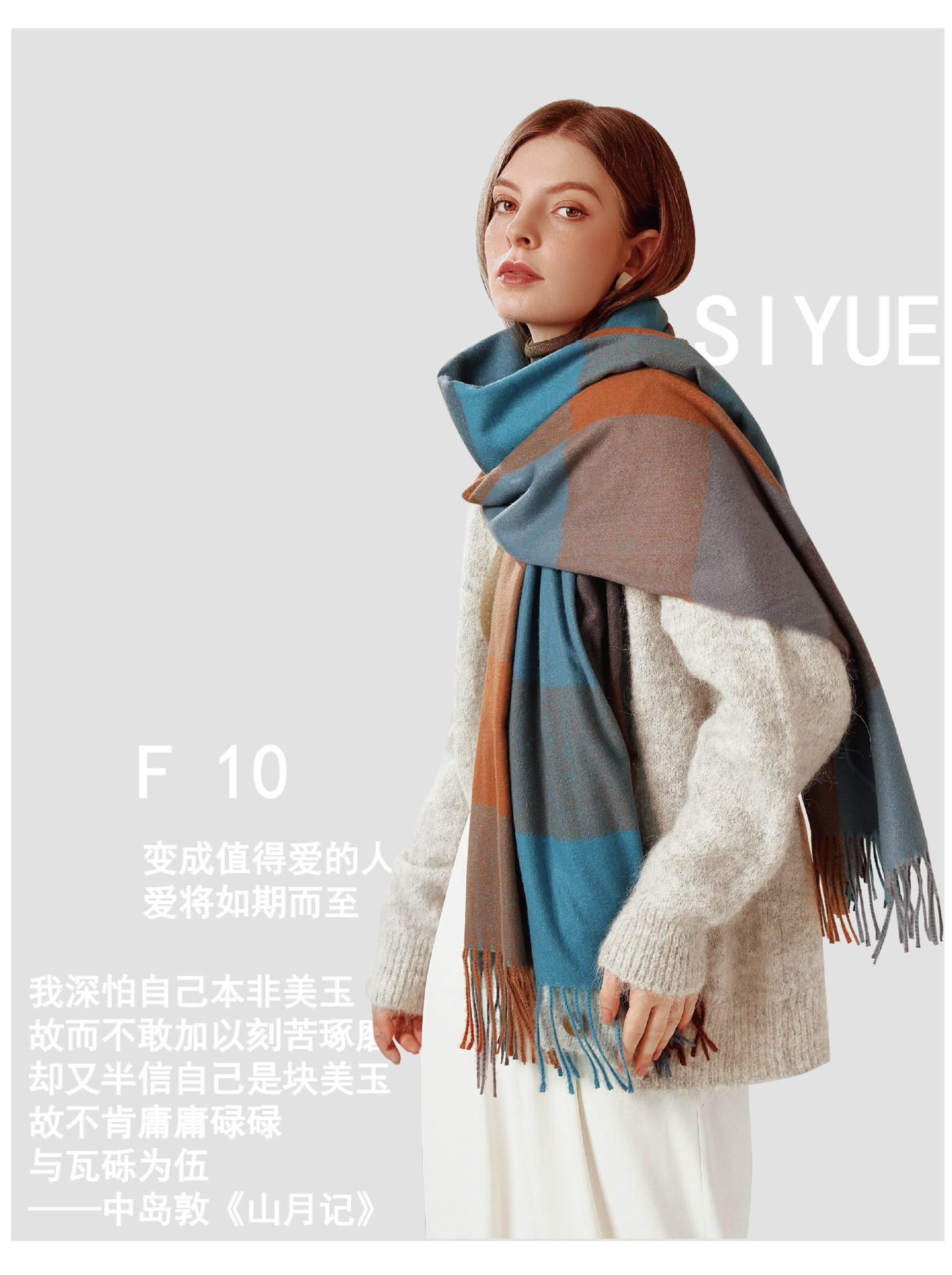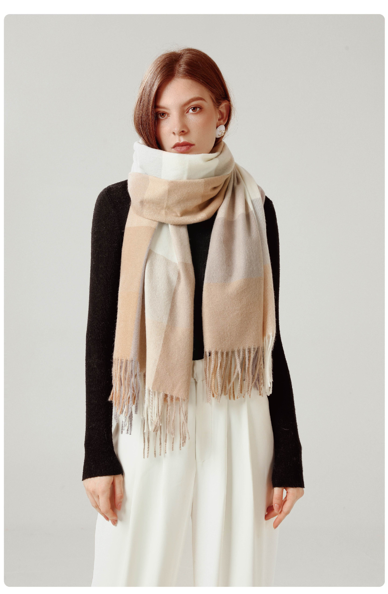 2025时尚女士围巾条纹格子大披肩优雅名媛风秋冬保暖围巾女高级感