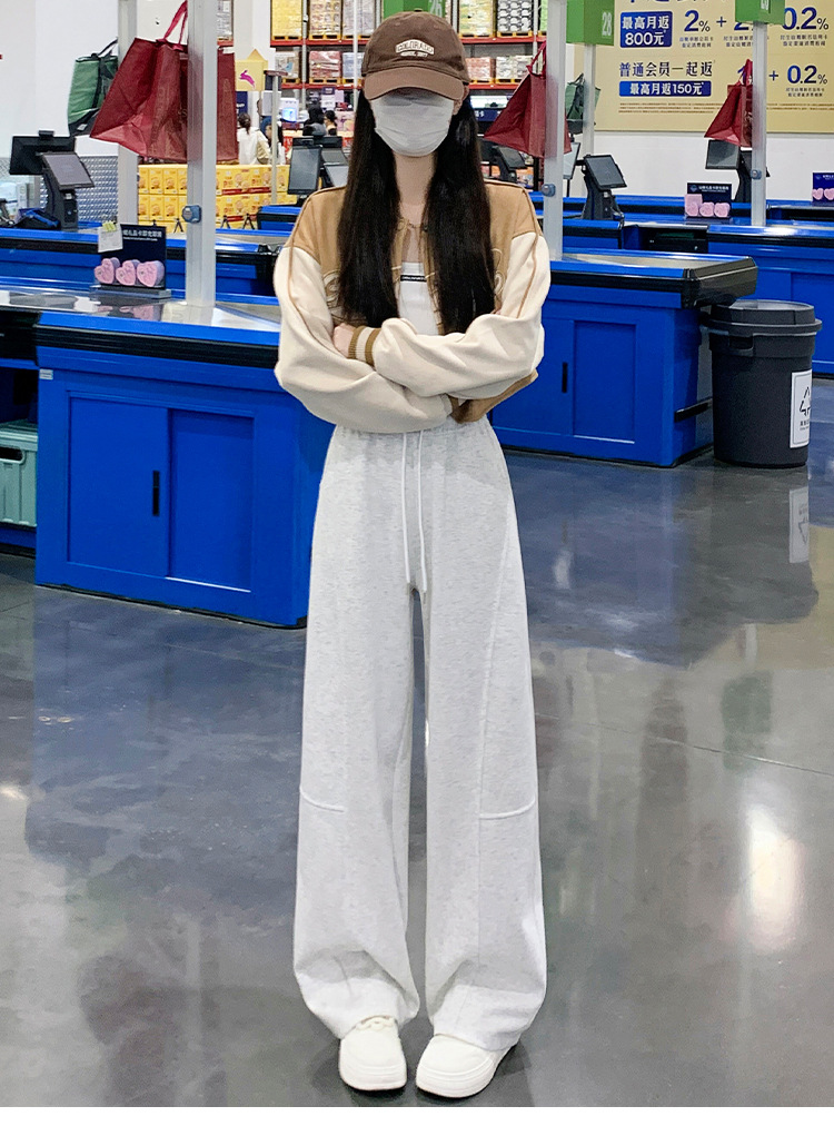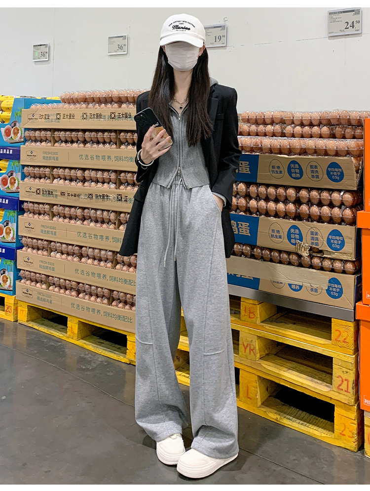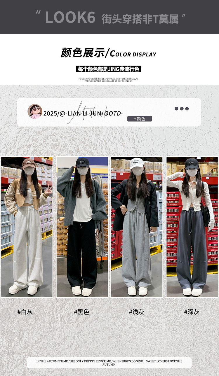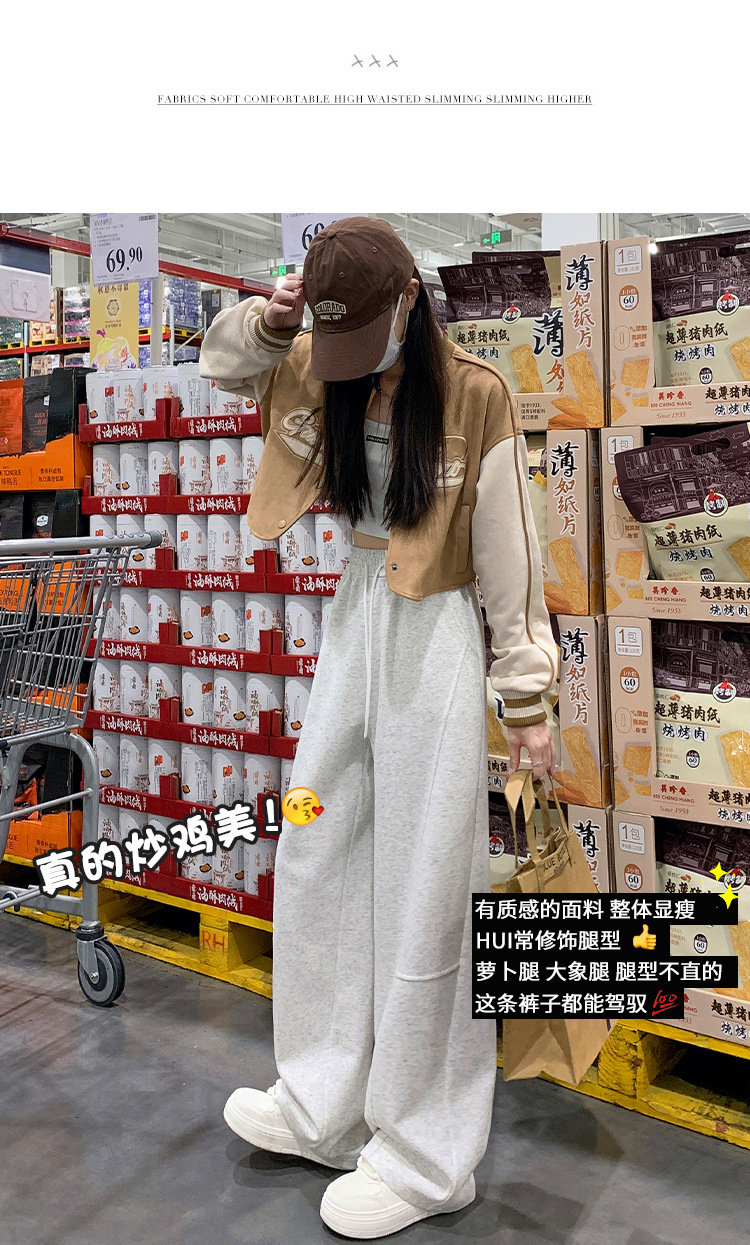 显瘦显高 显腿直深灰色拼接镰刀阔腿裤女秋季高腰显瘦美式卫裤休闲直筒香蕉运动裤