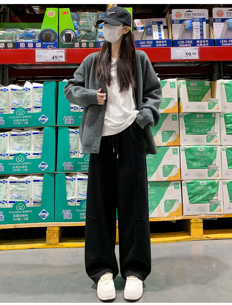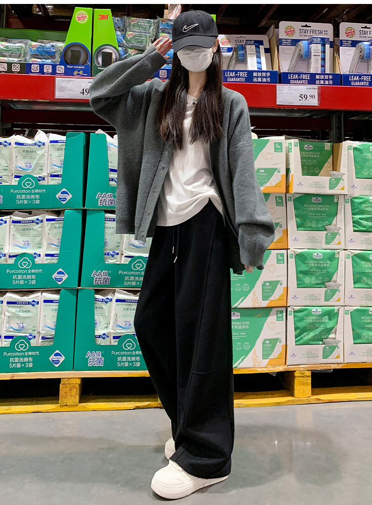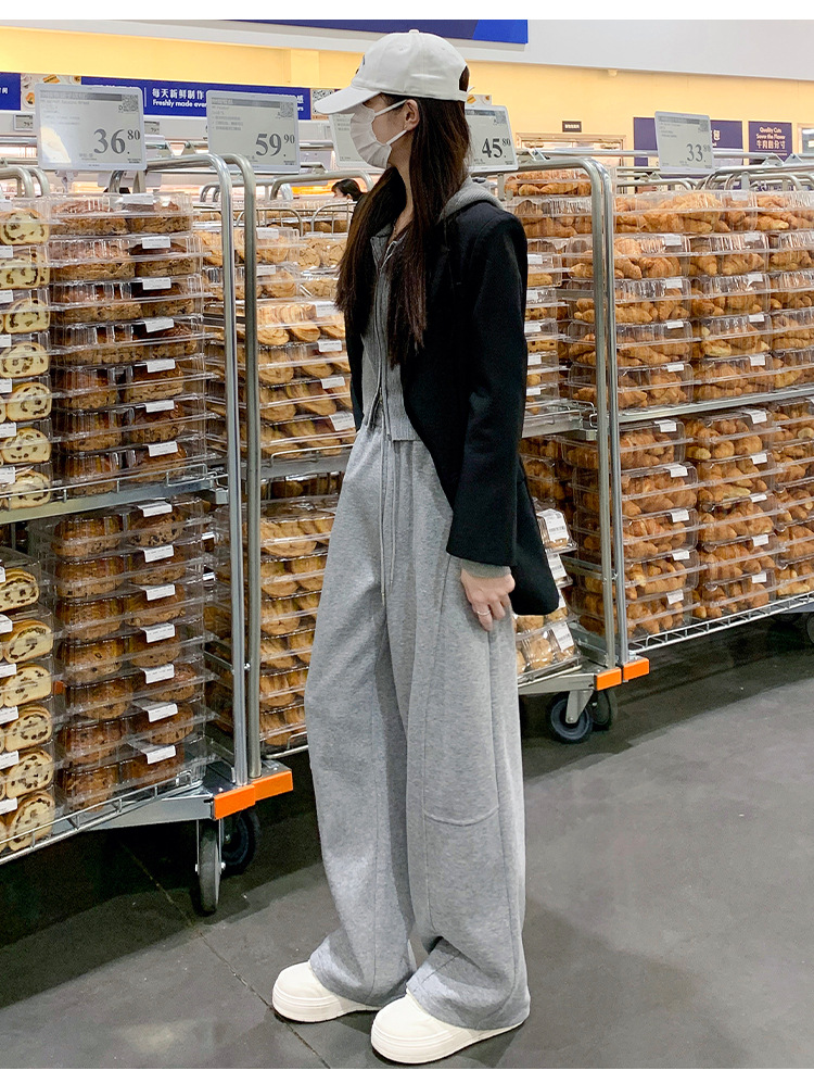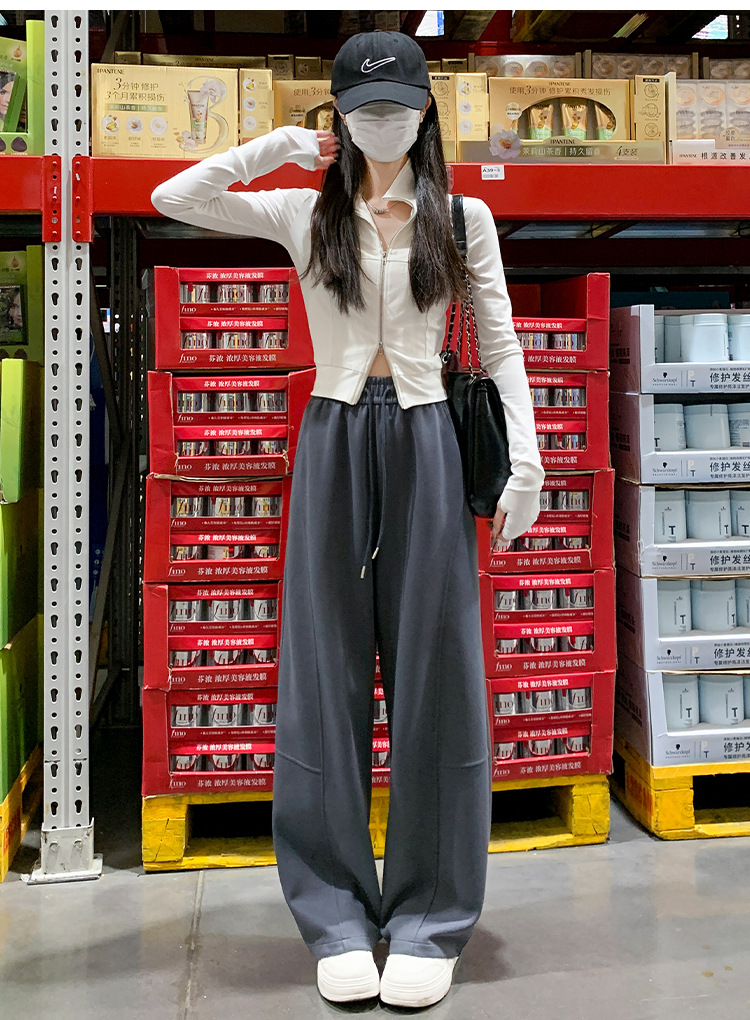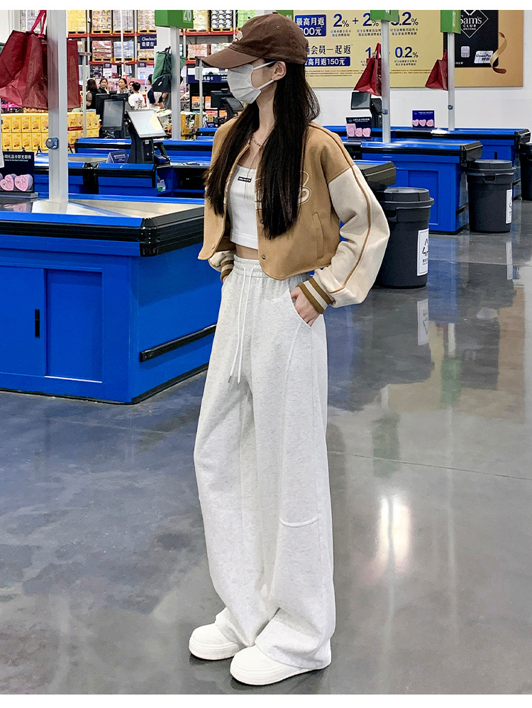 显瘦显高 显腿直深灰色拼接镰刀阔腿裤女秋季高腰显瘦美式卫裤休闲直筒香蕉运动裤