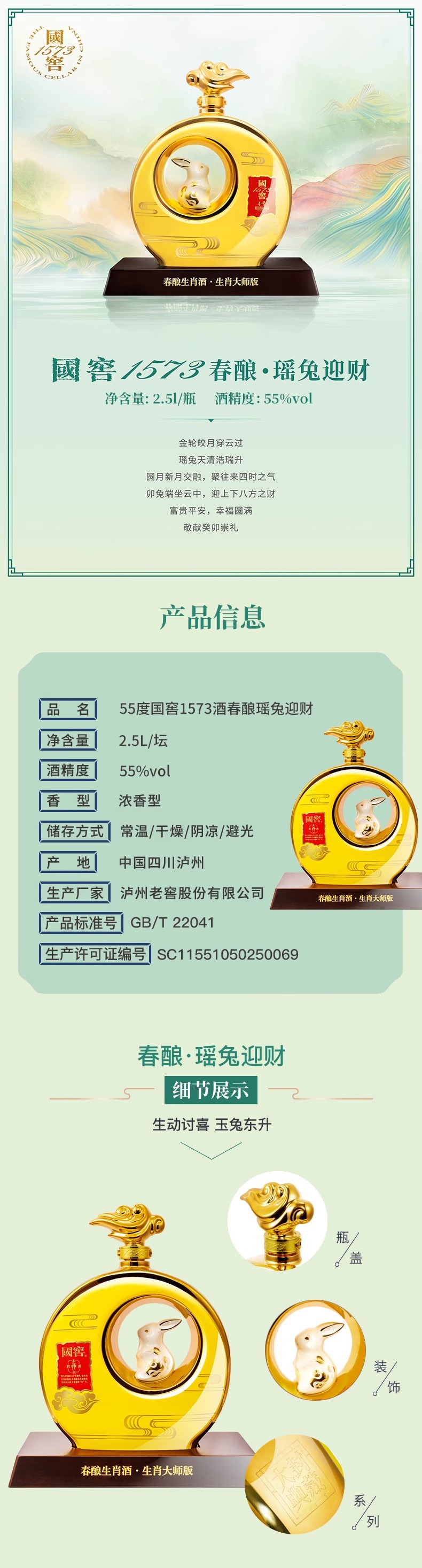 【2023封藏大典】国窖1573 春酿 瑶兔迎财 55度2.5L 泸州老窖官方旗舰店