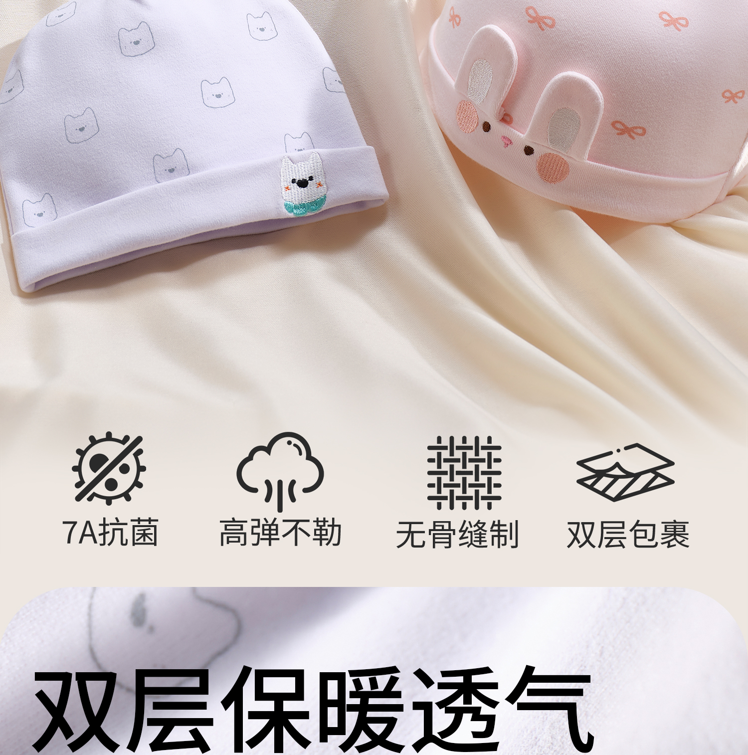 科巢婴儿帽子纯棉刺绣男女宝新生儿秋冬季a类胎帽0到3到6个月保暖