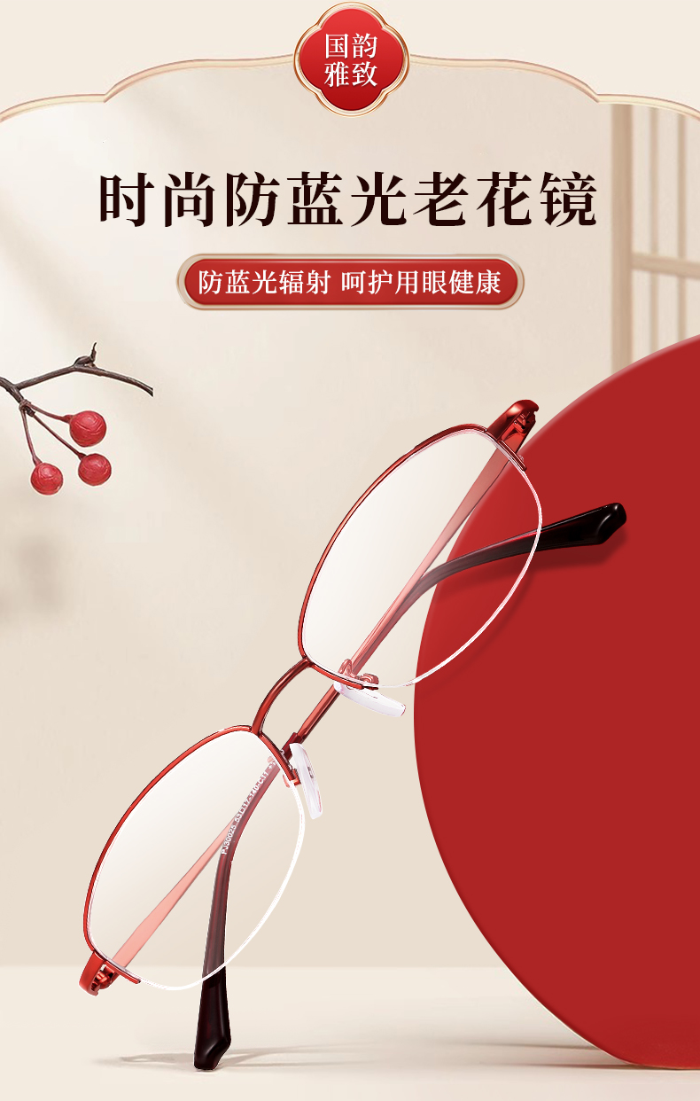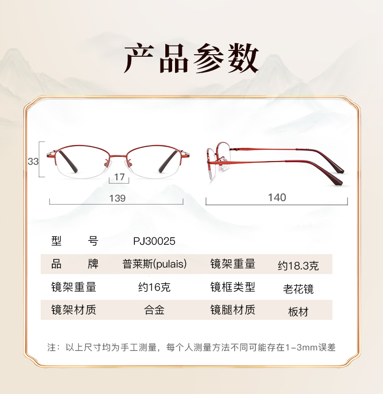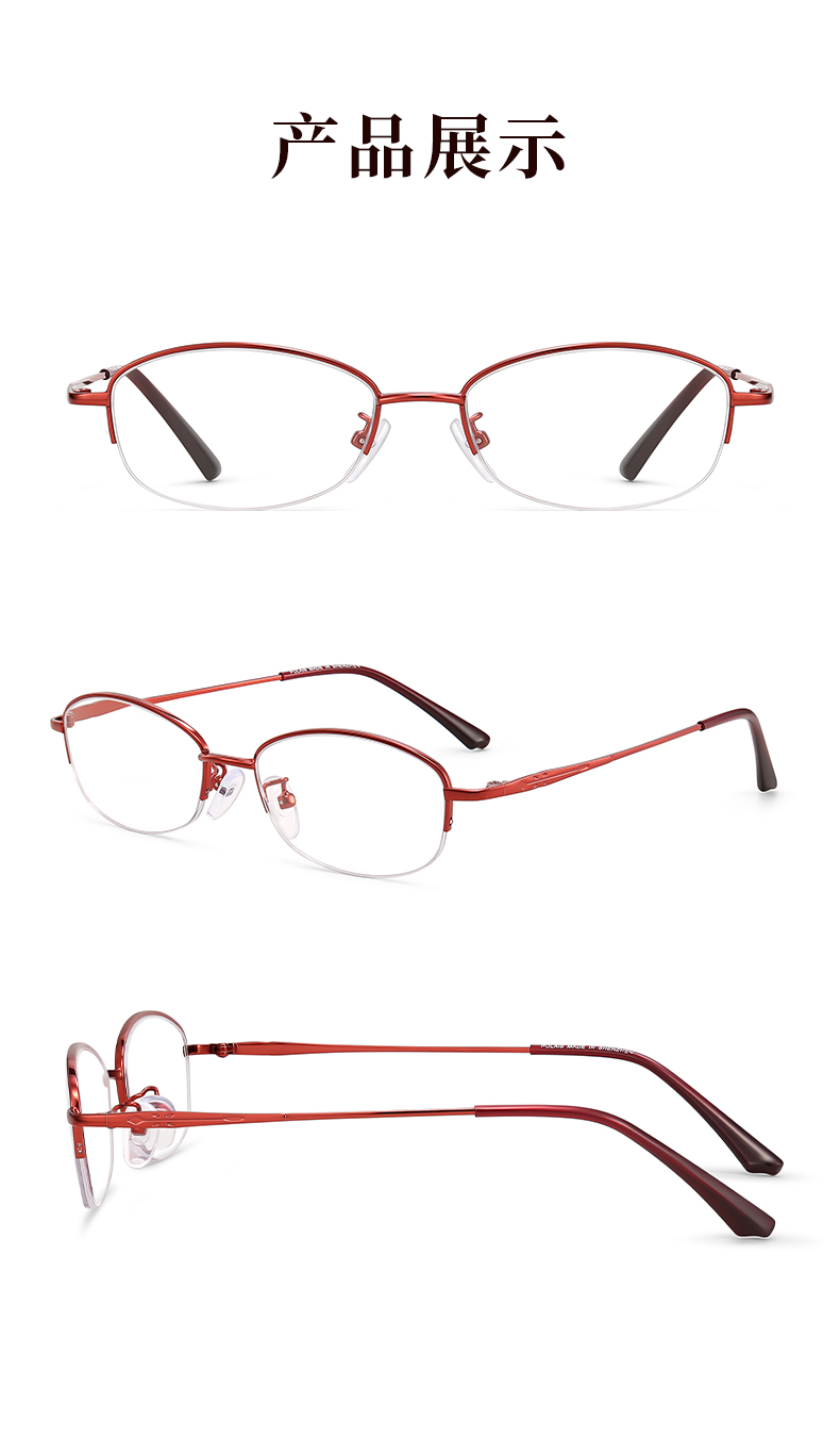 普莱斯2024年新款老花镜PJ30025 时尚半框 优雅女神范 合金材质
