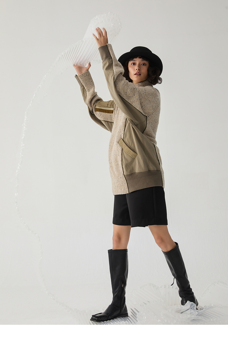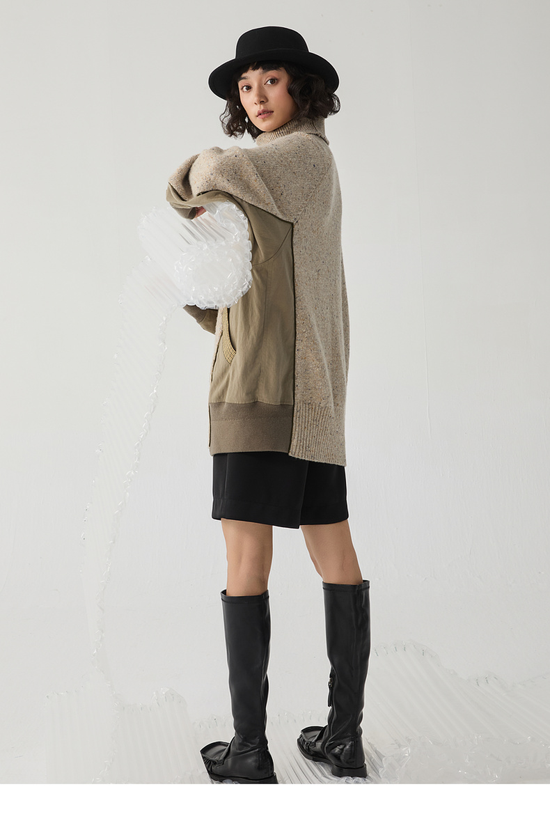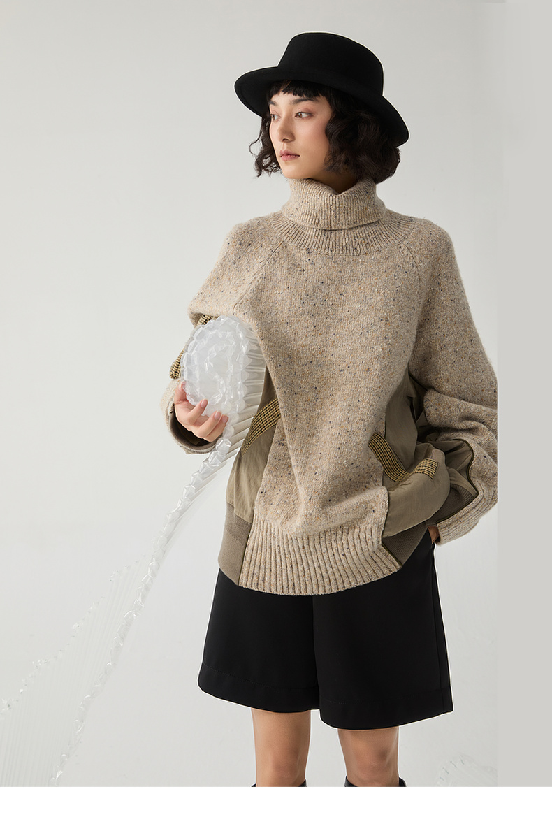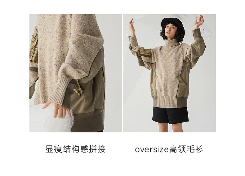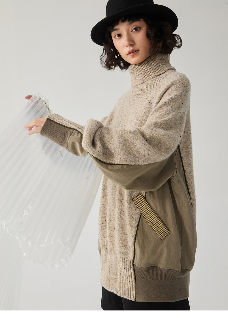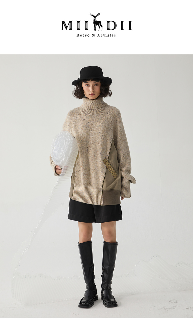 谜底高领套头毛衣女2024冬季新品复古风宽松保暖针织衫244MZ1863