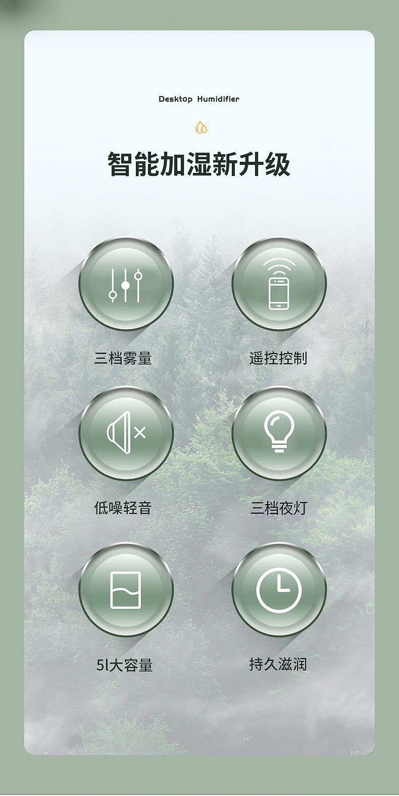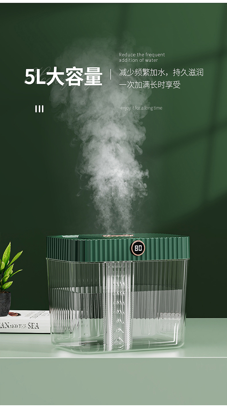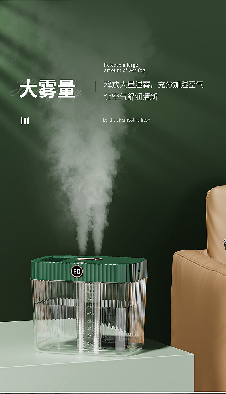 新款T8智能USB遥控加湿器双喷大雾量5升家用办公桌面空气增湿器