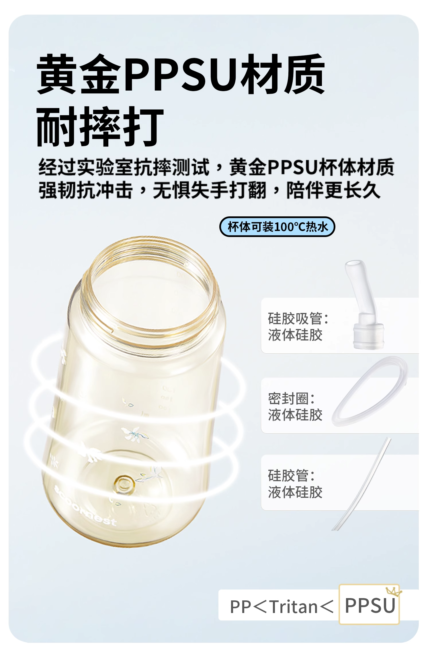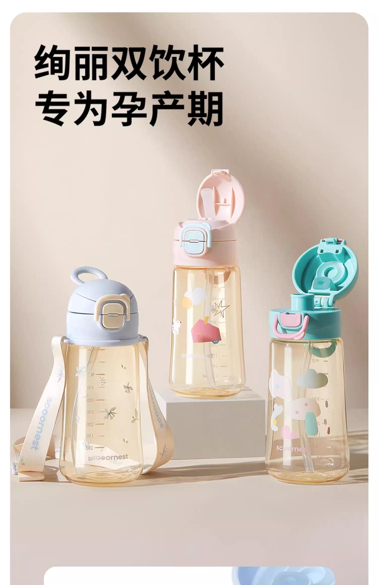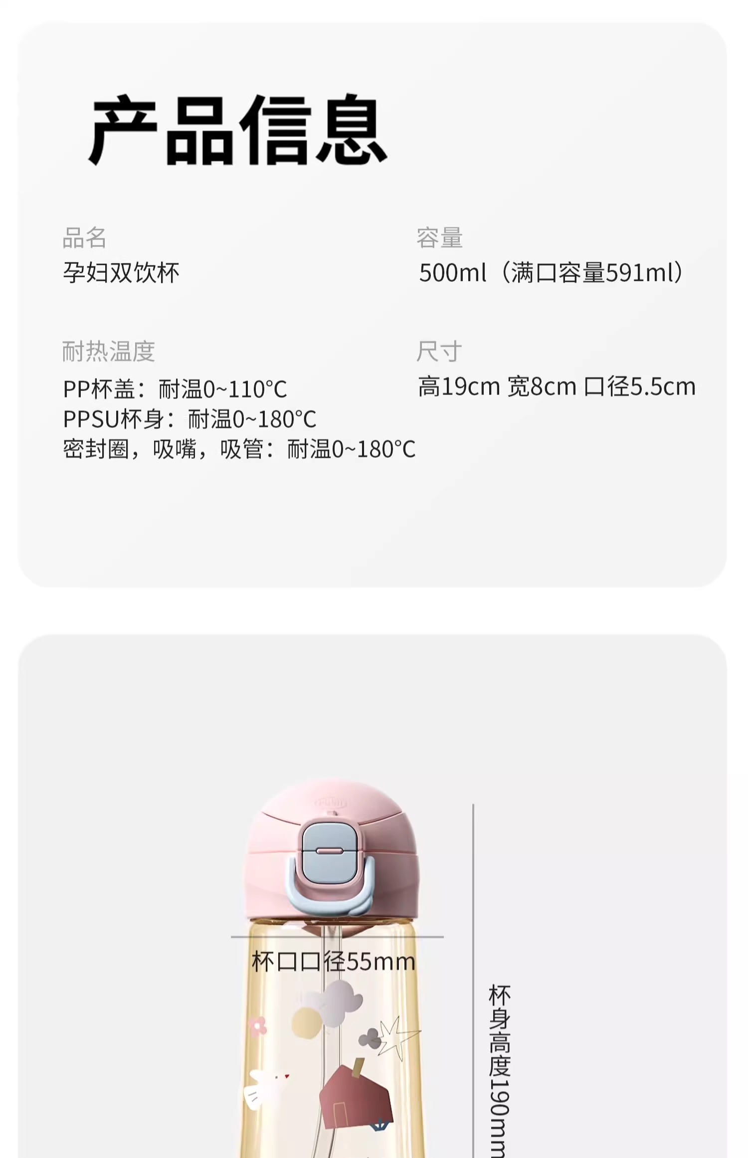 科巢ppsu材质产妇孕妇带吸管杯子大人刻度女水壶直饮上学专用儿童水杯