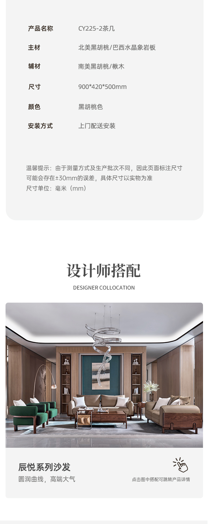 【现代风-CY225茶几】现代风/客厅/北美黑胡桃/实木茶几