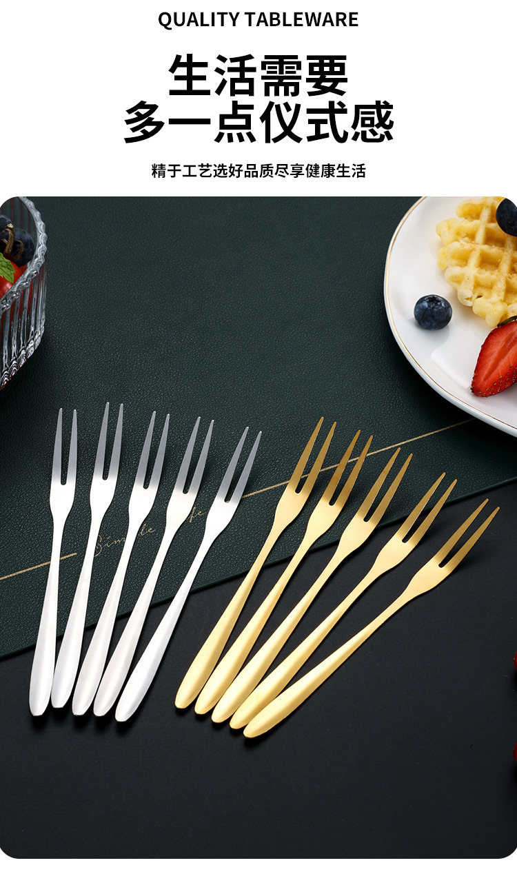 「9.9到手30支!不锈钢水果叉」家用创意二齿水果叉子蛋糕月饼叉酒店西餐甜品叉厨房用品餐饮用具