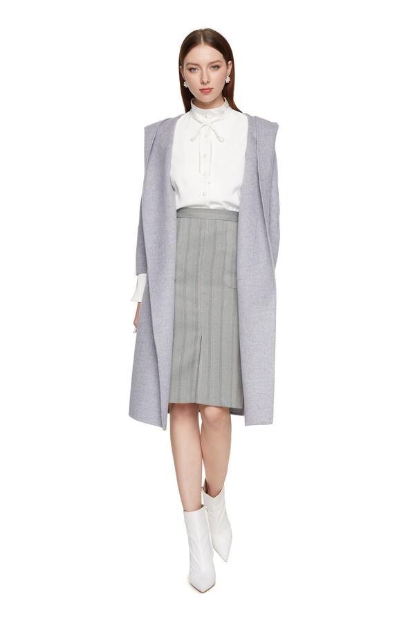 AVA 灰色格纹高腰半身裙 4515