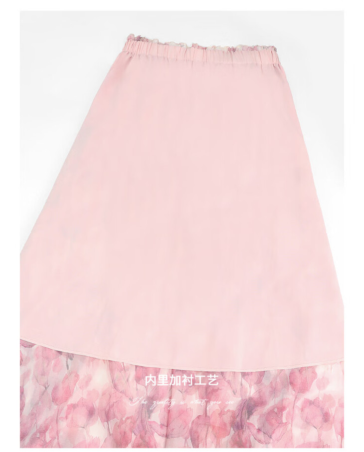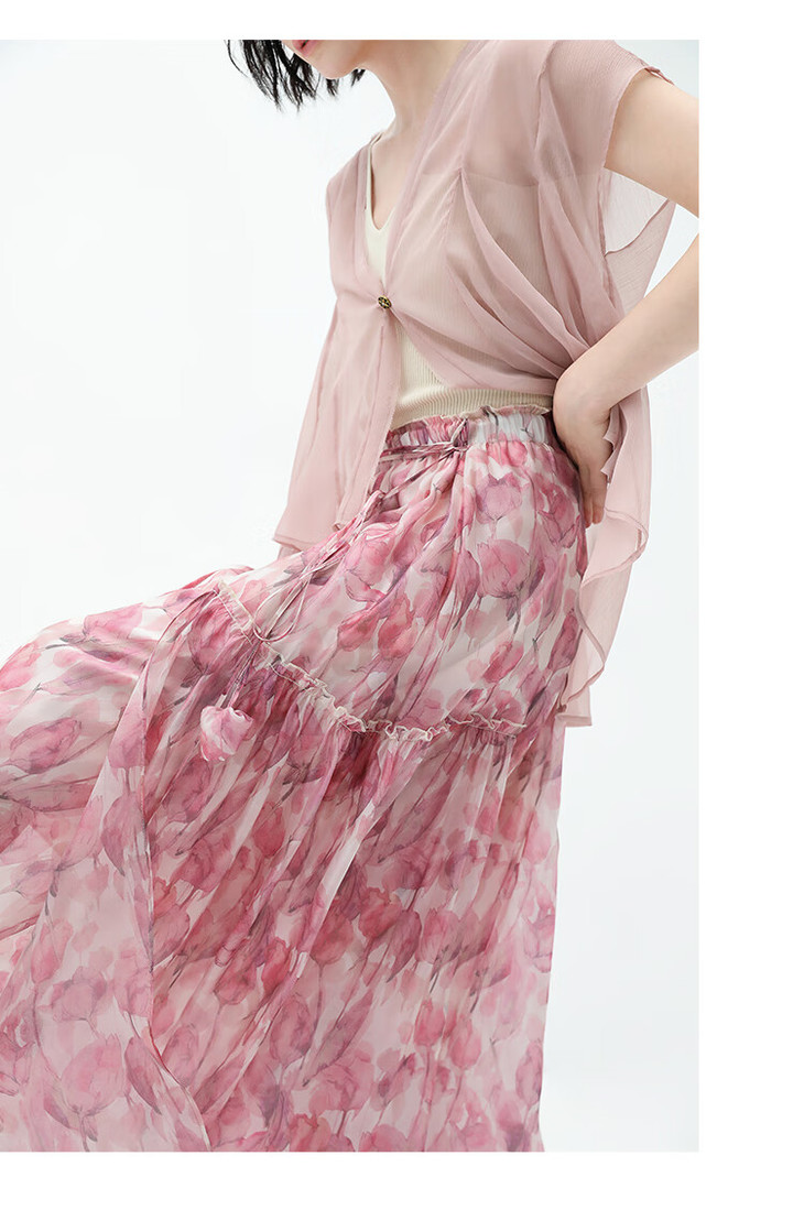 【柔见】COCOBELLA 玫瑰花苞腰绳印花半身裙女夏飘逸大摆雪纺长裙HS125