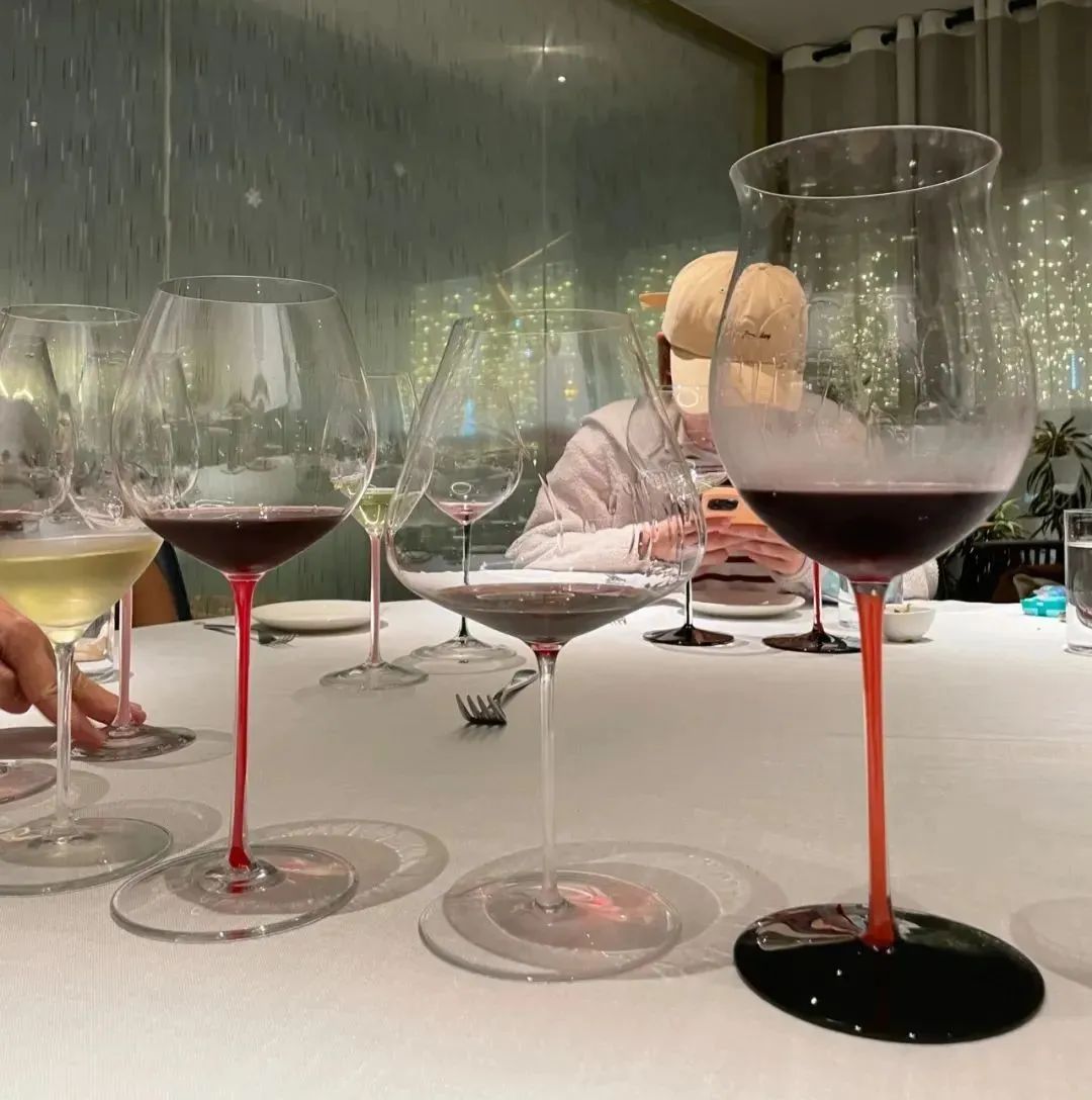 之前,我们做了个PVG的品鉴晚宴。餐厅很用心的给我们准备了Riedel的彩杆,酒友们还自带了红领结和Zalto杯。本来是正儿八经的品酒会,醉后变成了品杯会。