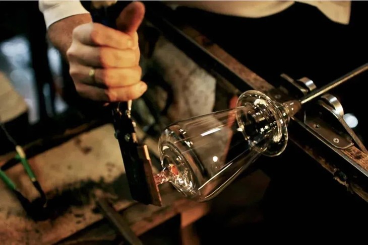 酒杯能做到这种极致,跟工艺肯定脱不了关系。Zalto杯都是纯手工吹制,工匠用一根长管像吹气球一样向融化的水晶玻璃中吹气,力度全靠工匠的技艺和经验,这样吹制的杯壁只有0.4mm。如果不是技艺纯熟、经验老道的工匠是绝不可完成的。