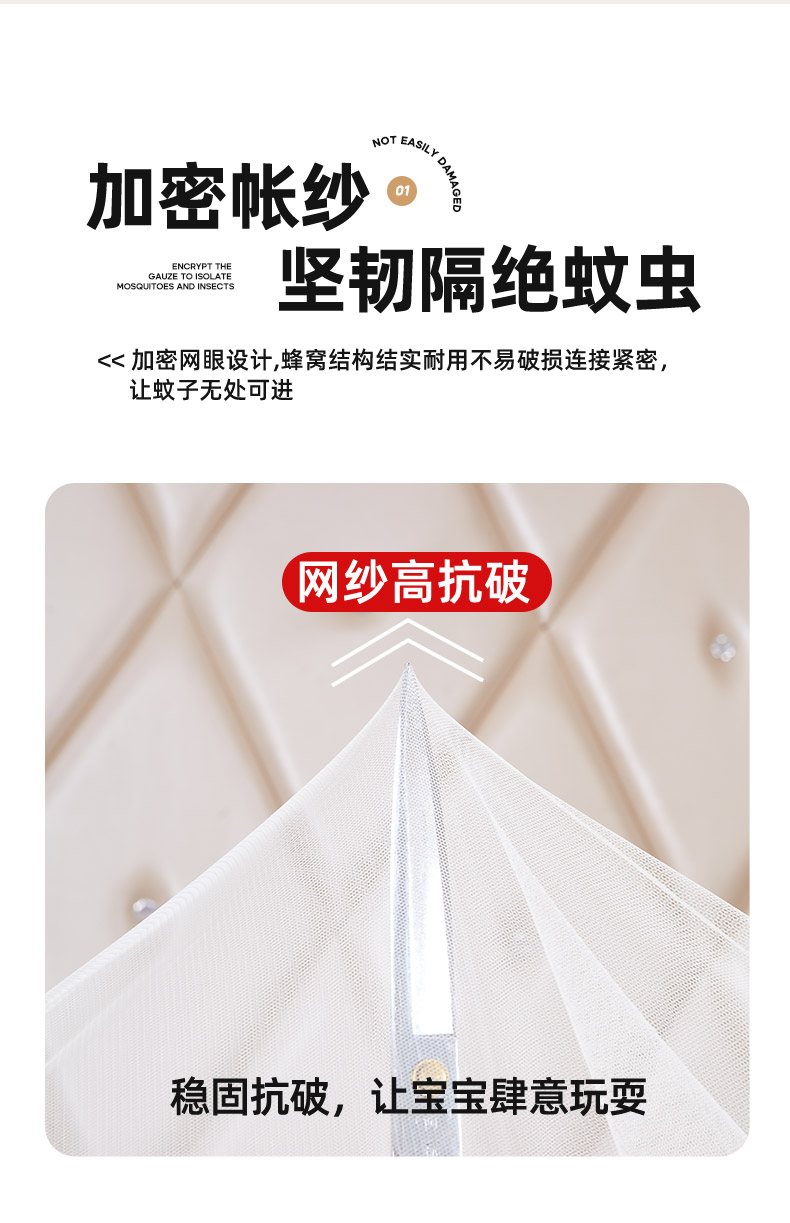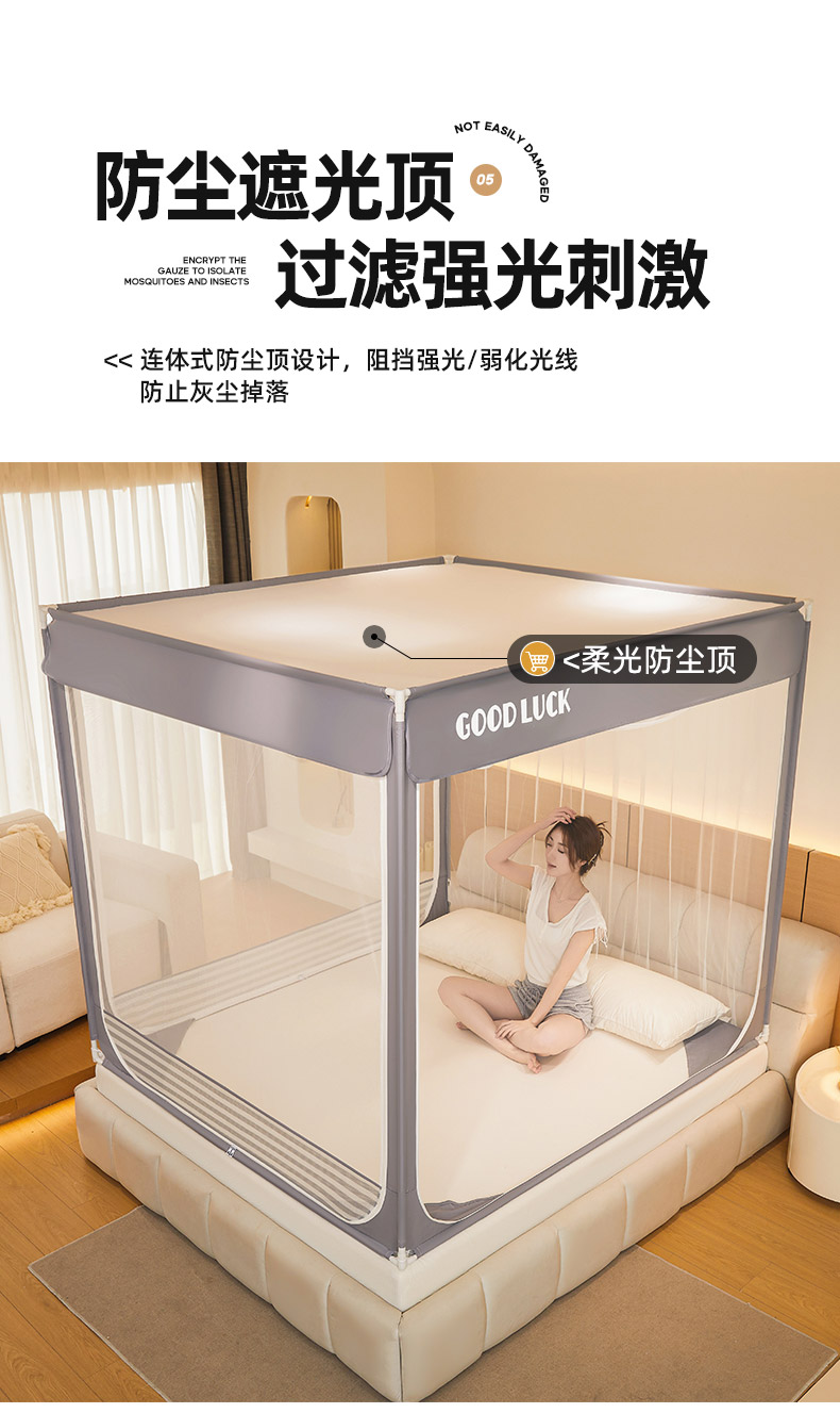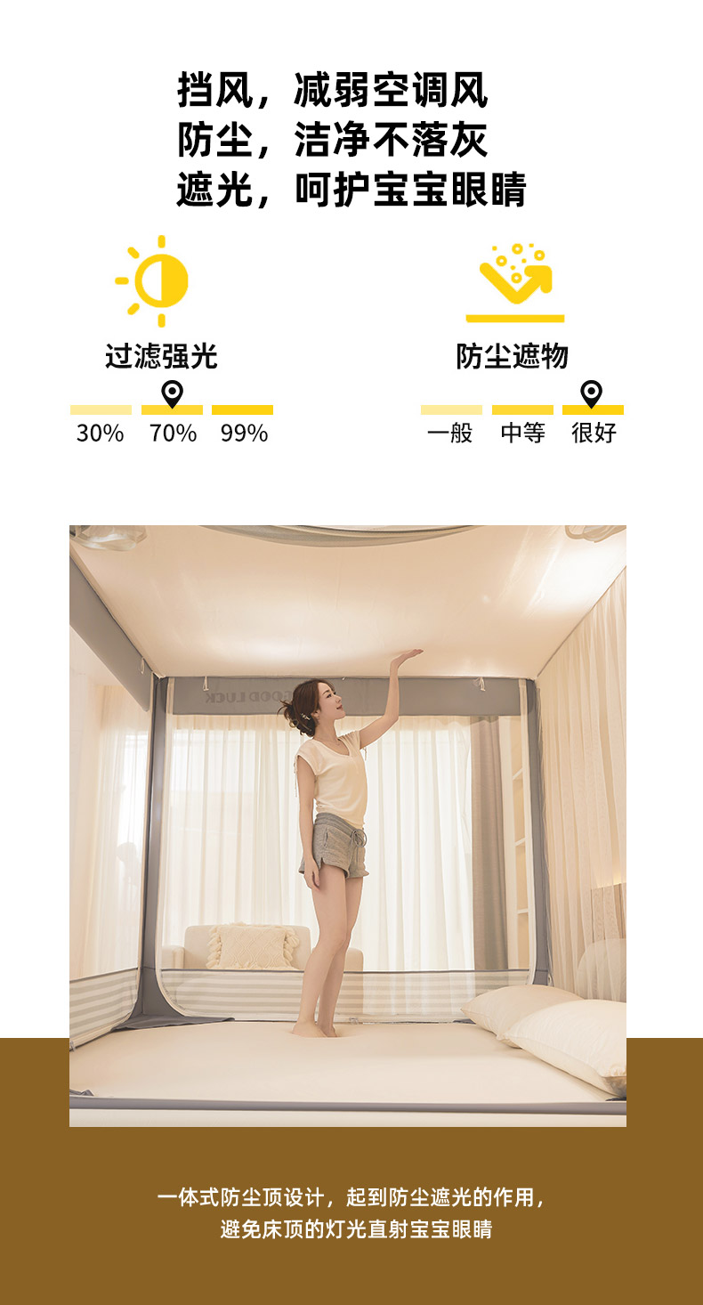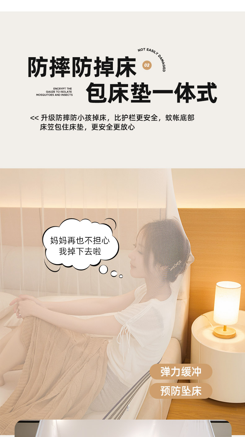自然醒蚊帐家用卧室防摔纹帐婴儿防止掉床免安装儿童围栏蒙古包2501HH