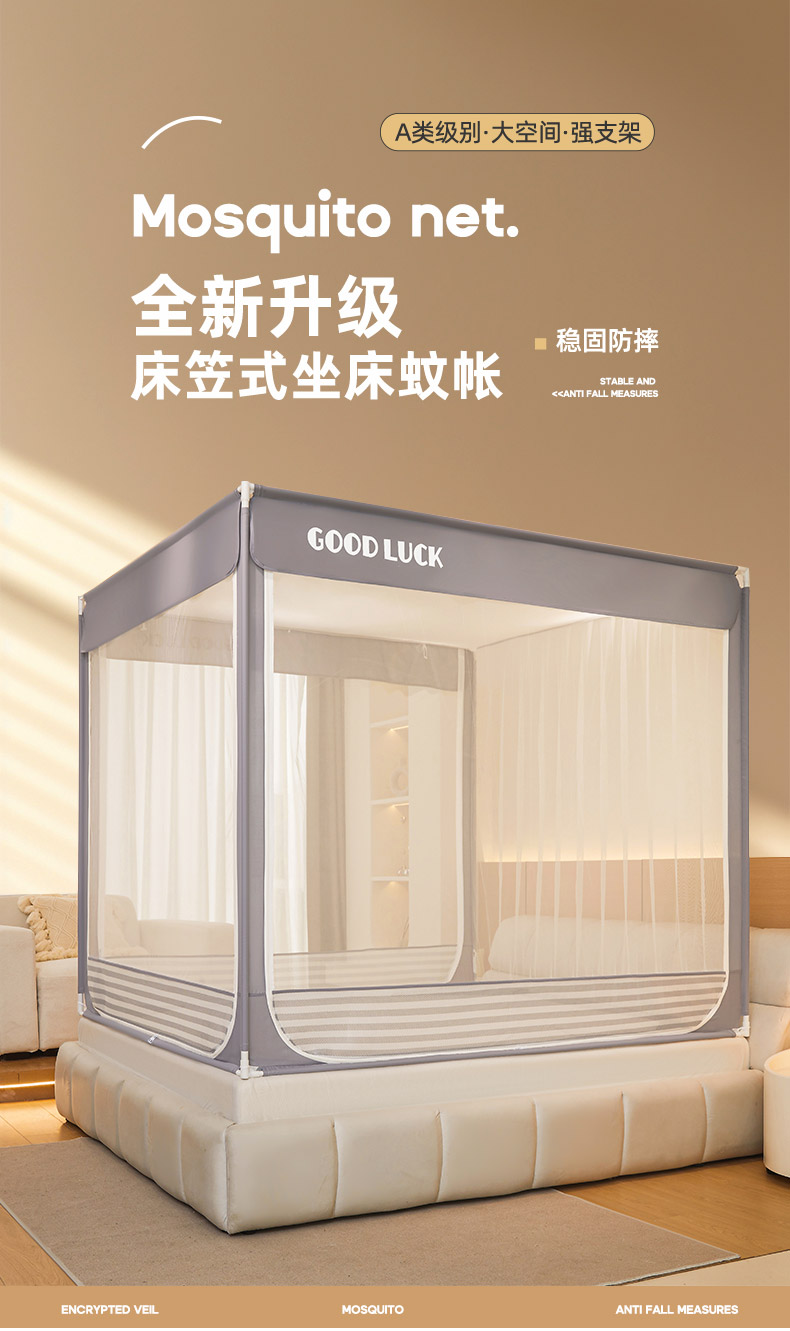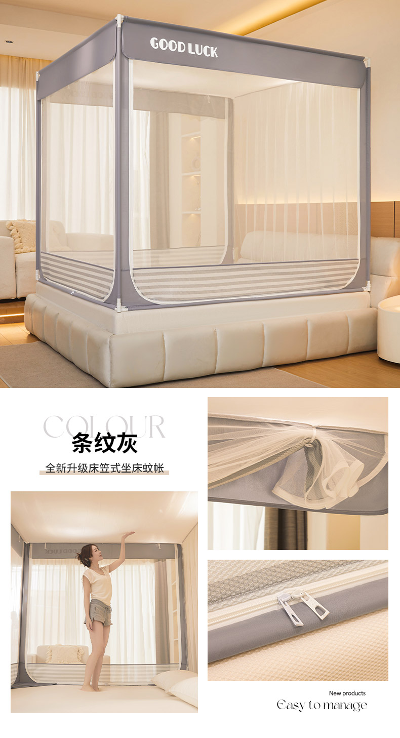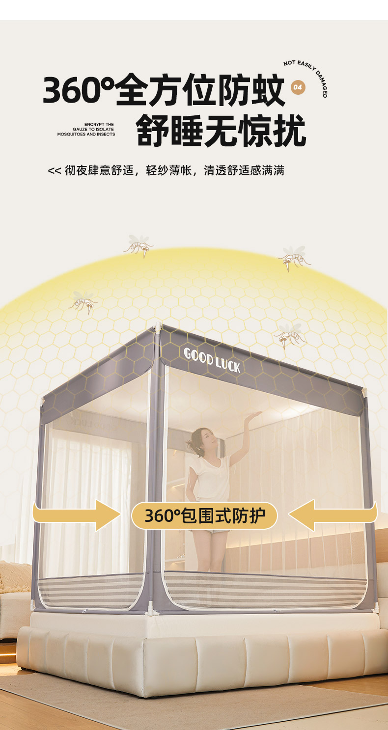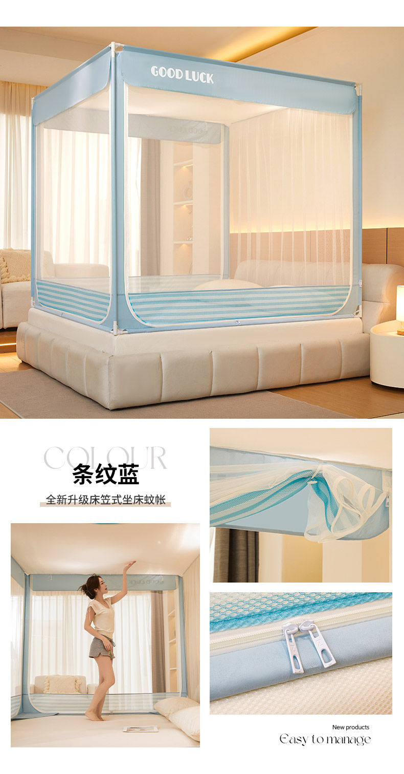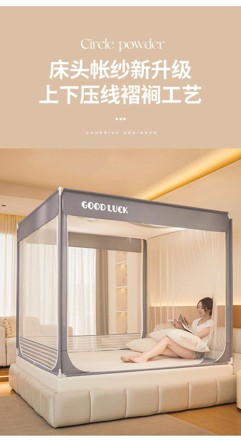 自然醒蚊帐家用卧室防摔纹帐婴儿防止掉床免安装儿童围栏蒙古包2501HH