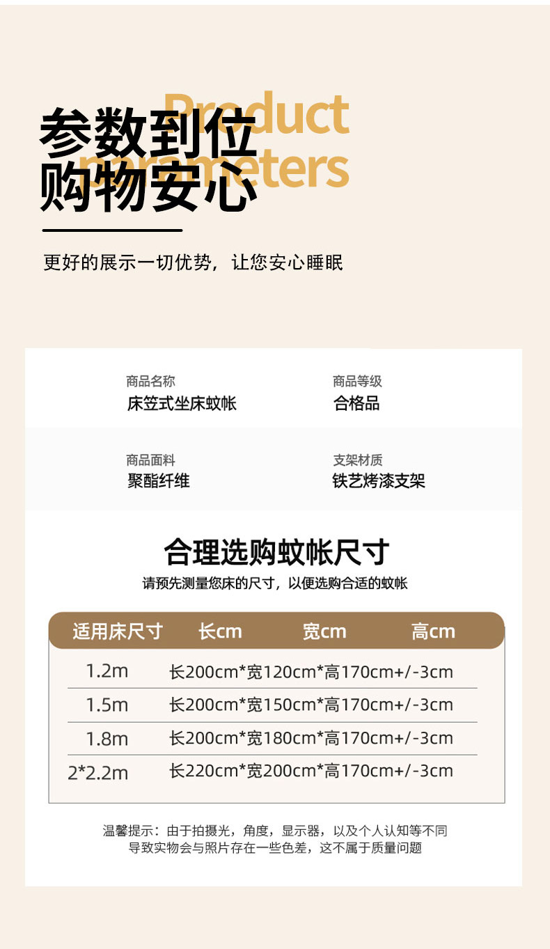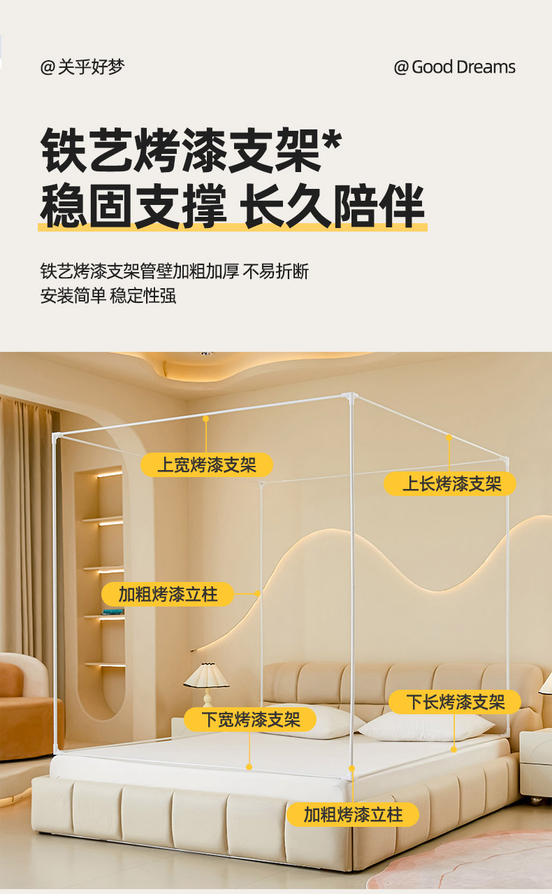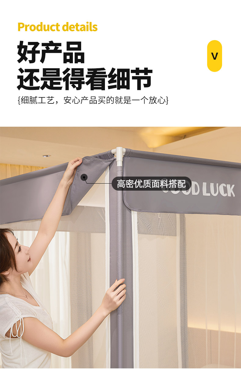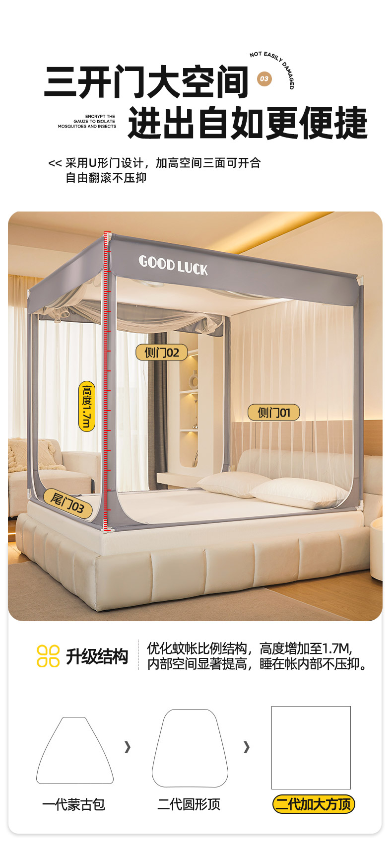 自然醒蚊帐家用卧室防摔纹帐婴儿防止掉床免安装儿童围栏蒙古包2501HH