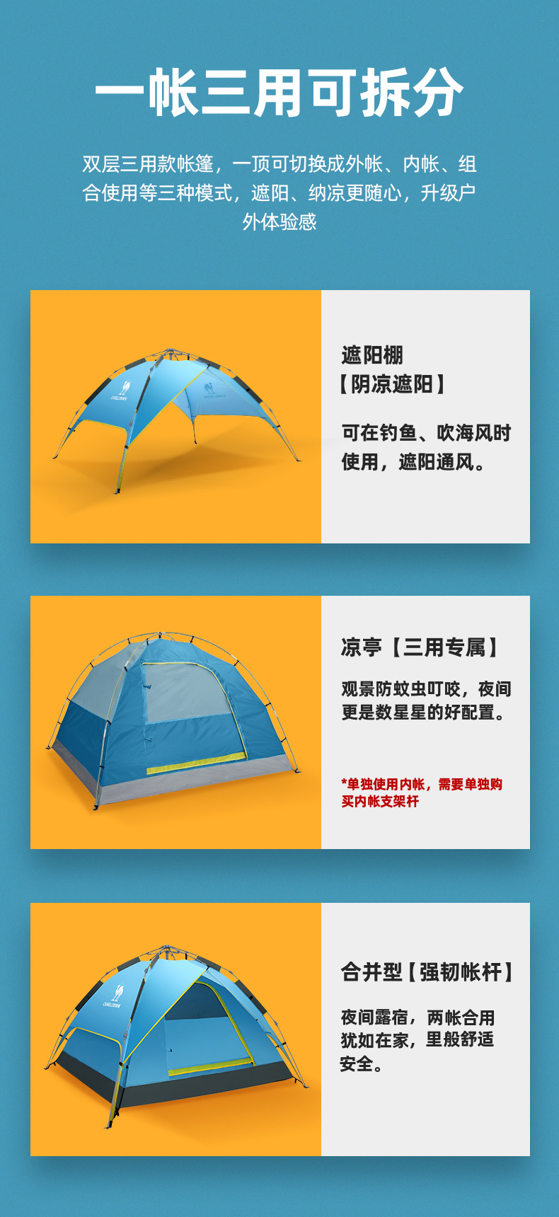骆驼户外帐篷便携式折叠加厚全自动防雨儿童公园遮阳防护露营装备 A1S3NA111-1_A1S3NA111_A1S3NA108-1