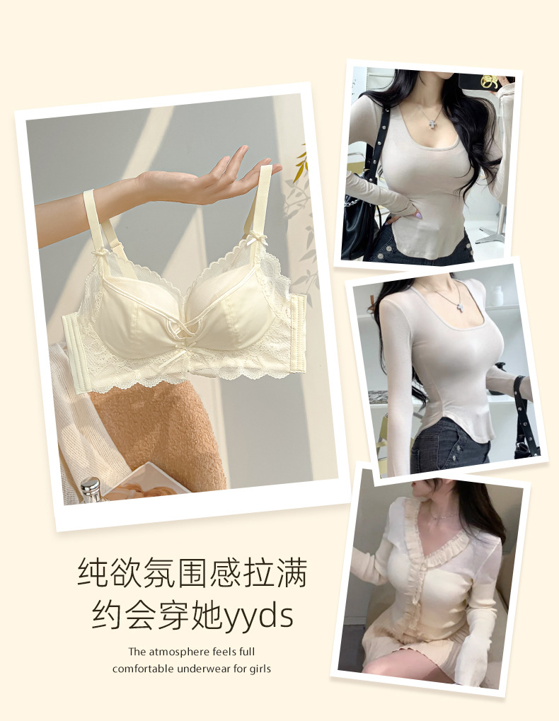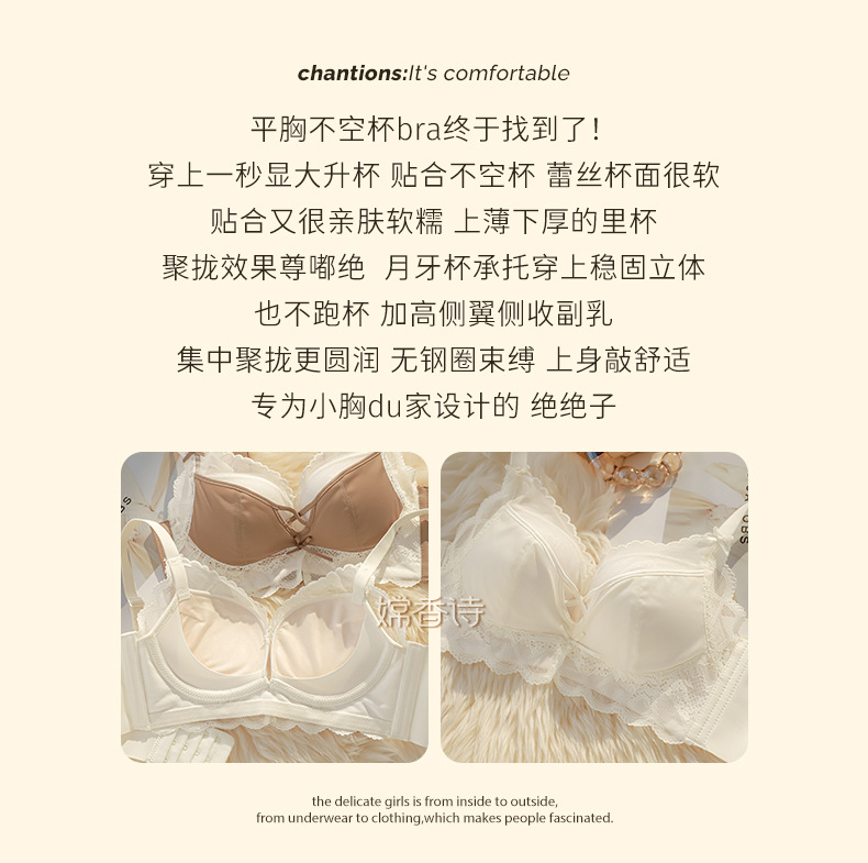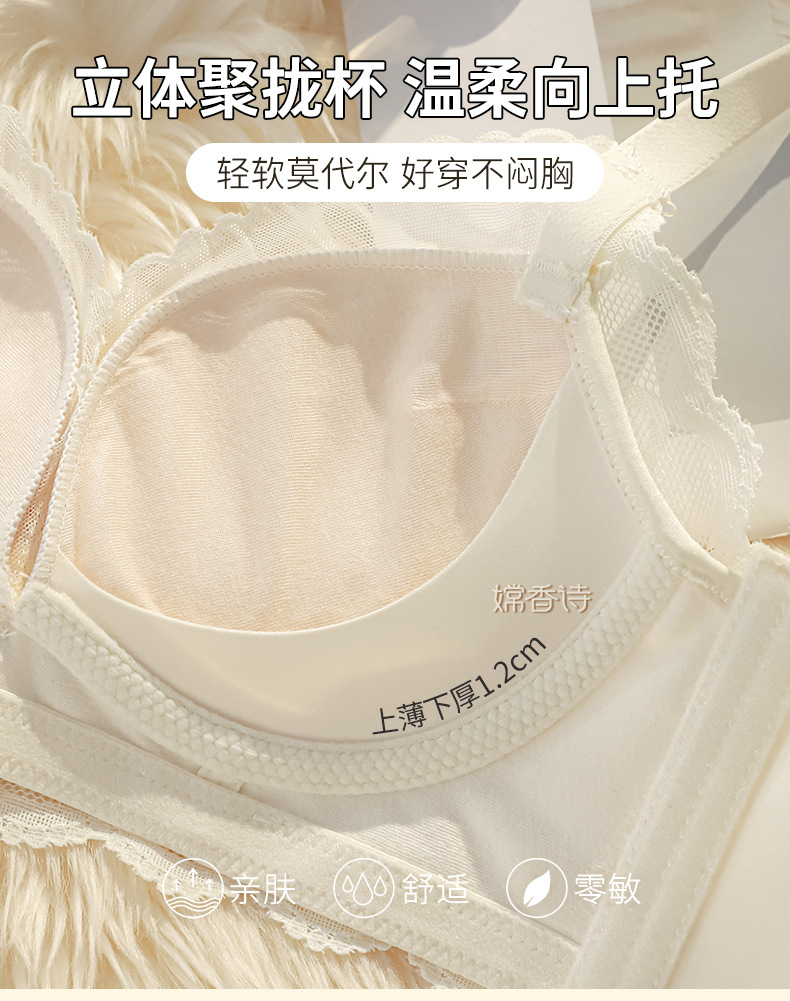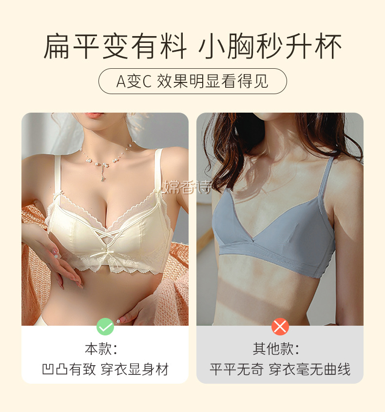 聚拢软软杯 专为小胸设计 纯欲内衣女士 聚拢小胸显大 调整型收副乳防下垂夏文胸罩套装