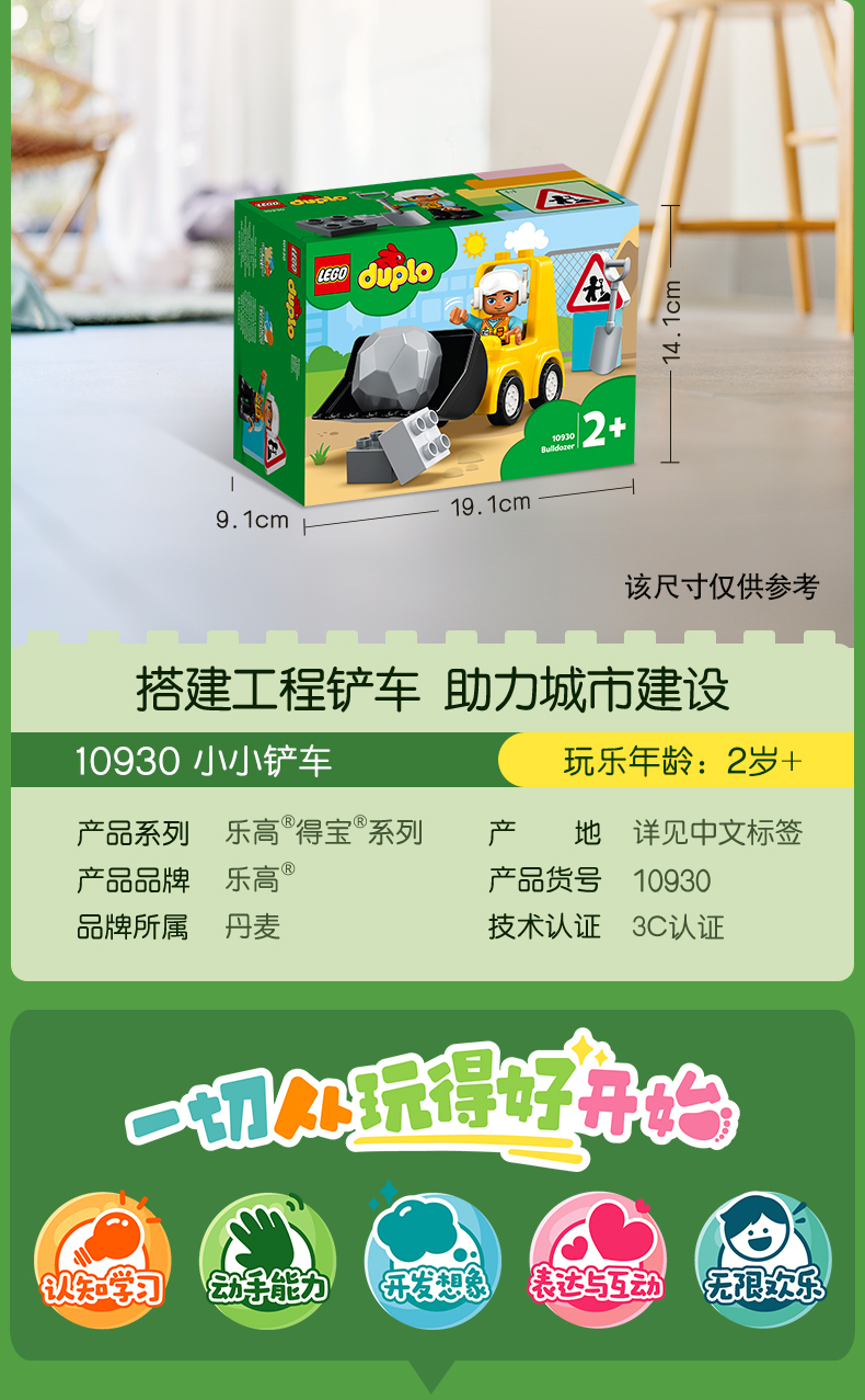 乐高&得宝系列 搭建工程铲车 助力城市建设 10930小小铲车 积木玩具