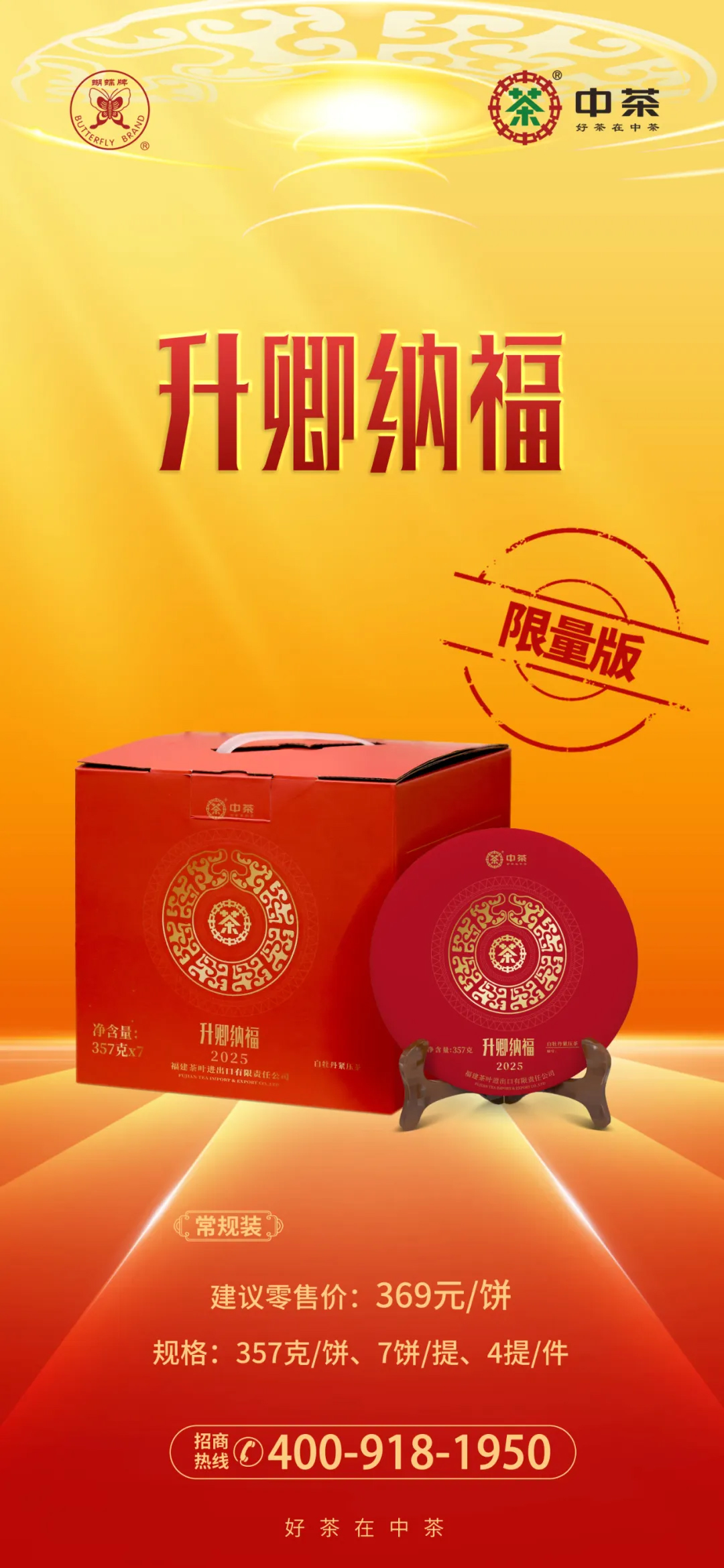 中粮-中茶蝴蝶“升卿纳福”(5815)蛇年白茶白牡丹生肖饼357克/饼