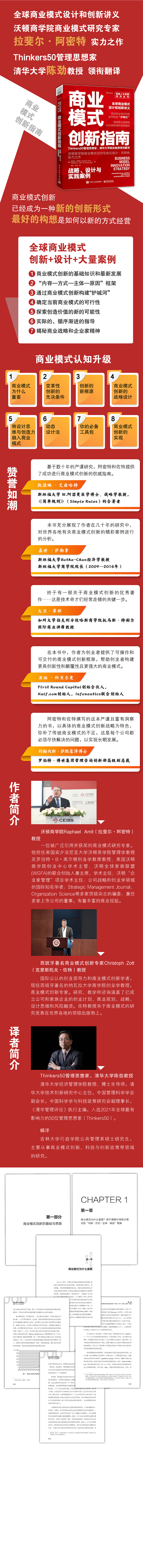 Raphael Amit(拉斐尔·阿密特)是一位被广泛引用并获奖的商业模式研究专家。他担任美国宾夕法尼亚大学沃顿商学院管理学教授及罗伯特·B·高尔根创业学教席教授;美国沃顿商学院创业中心学术主管;沃顿全球家族联盟(WGFA)的联合创始人兼主席、学术主任;沃顿“企业家管理”项目学术主任;公司战略和创业学领域的国际知名学者;Strategic Management Journal、Organization Science等多家**杂志的编委;兼任多家上市公司的董事,有着丰富的商业经验。Christoph Zott(克里斯托夫·佐特),国际公认的创业领导力和商业模式创新学者,现任西班牙著名的纳瓦拉大学商学院创业学教授,商业模式创新专家。研究、教学和咨询涵盖了已成立公司和家族企业的创业计划、商业规划、战略、设计思维和风险融资。佐特教授关于商业模式的研究发表在世界各地的**出版物上。