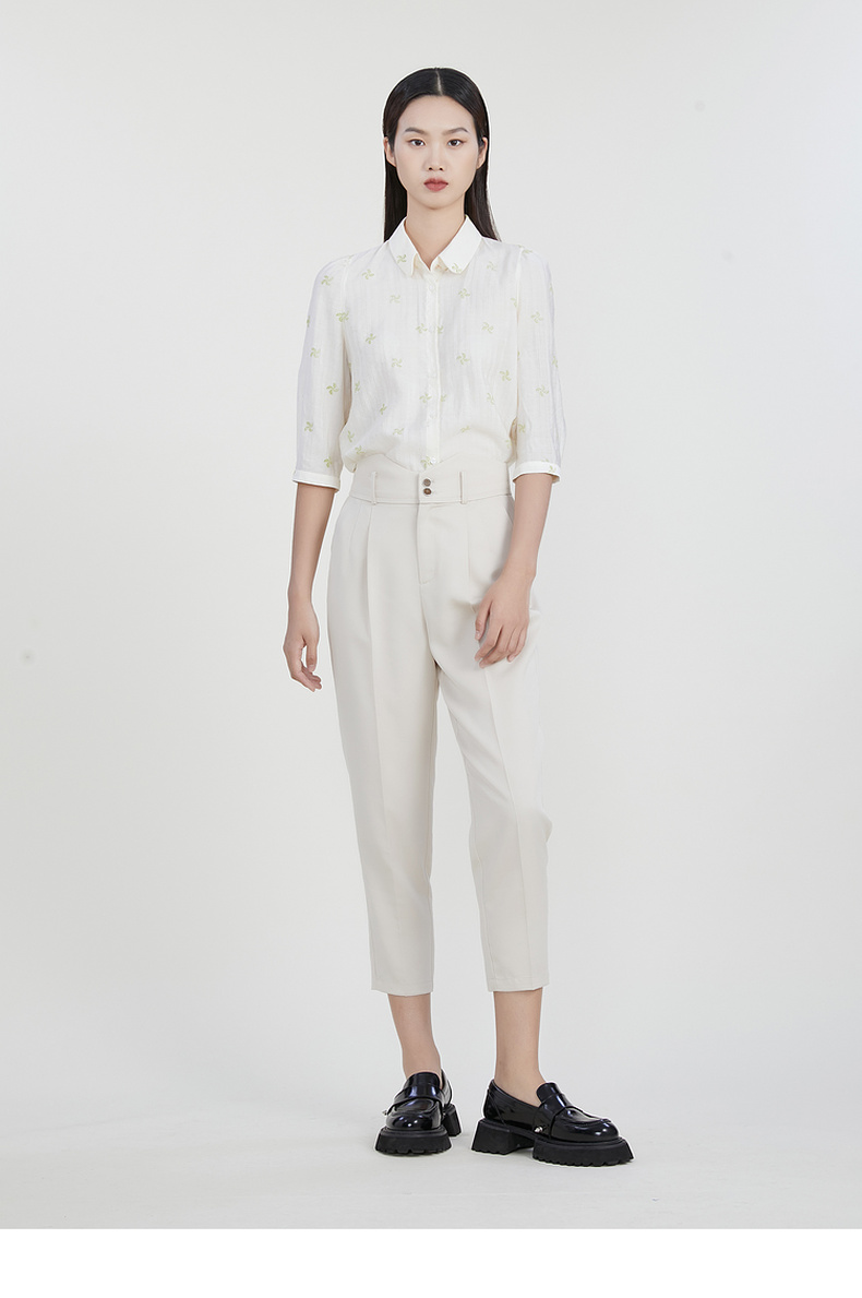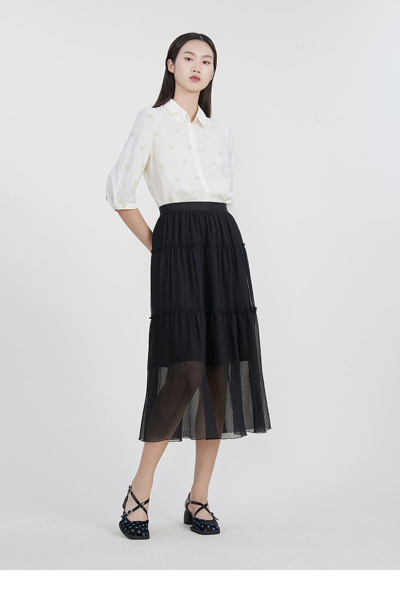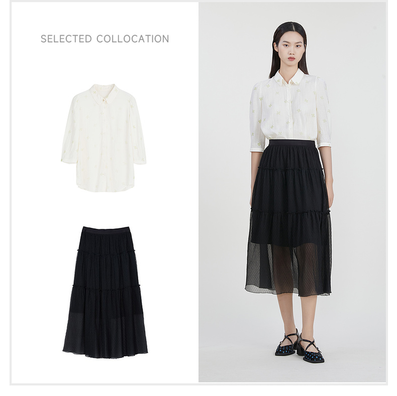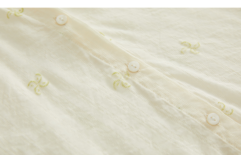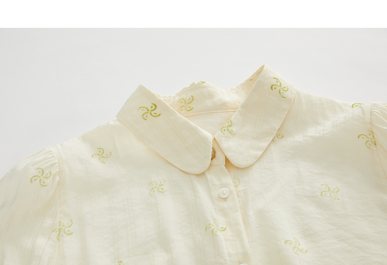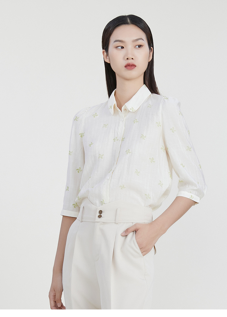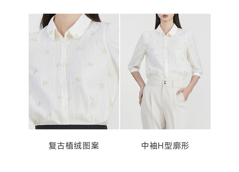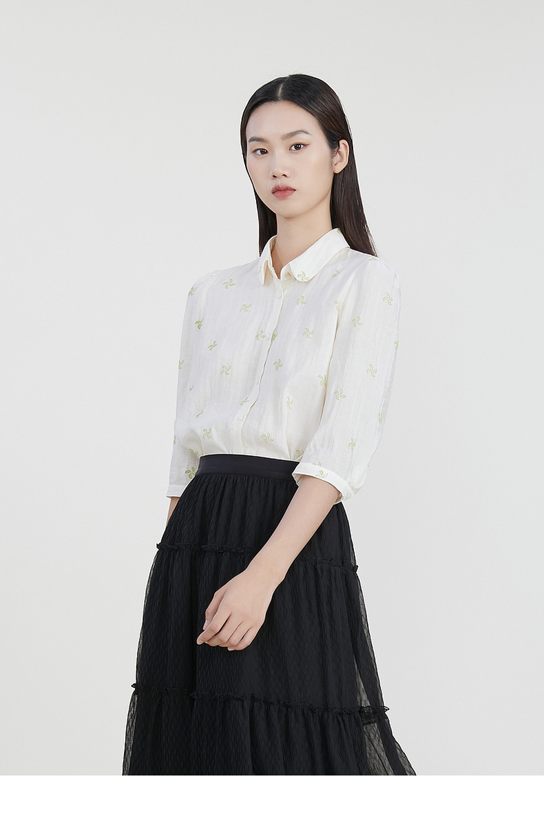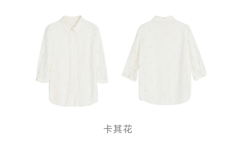 谜底宽松提花衬衫女2023春季新款小清新翻领衬衣七分袖231MC0086