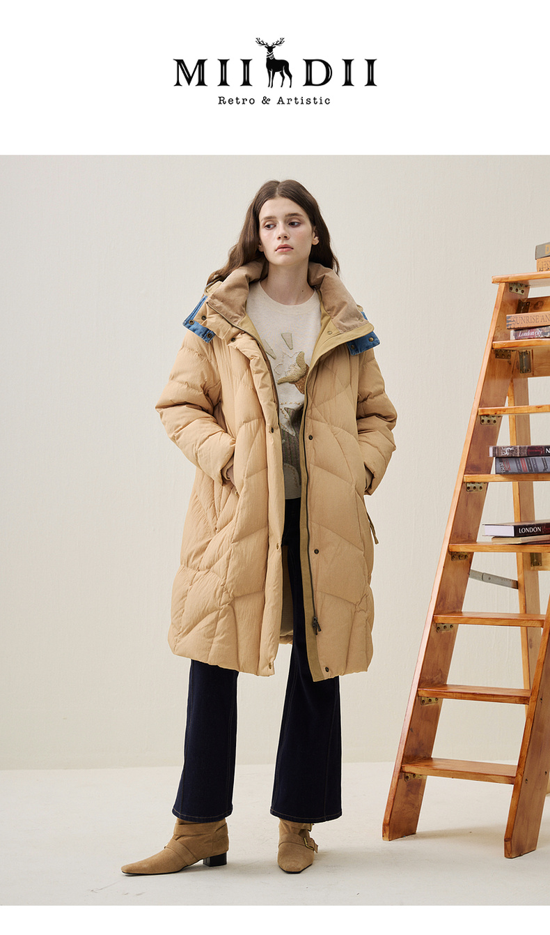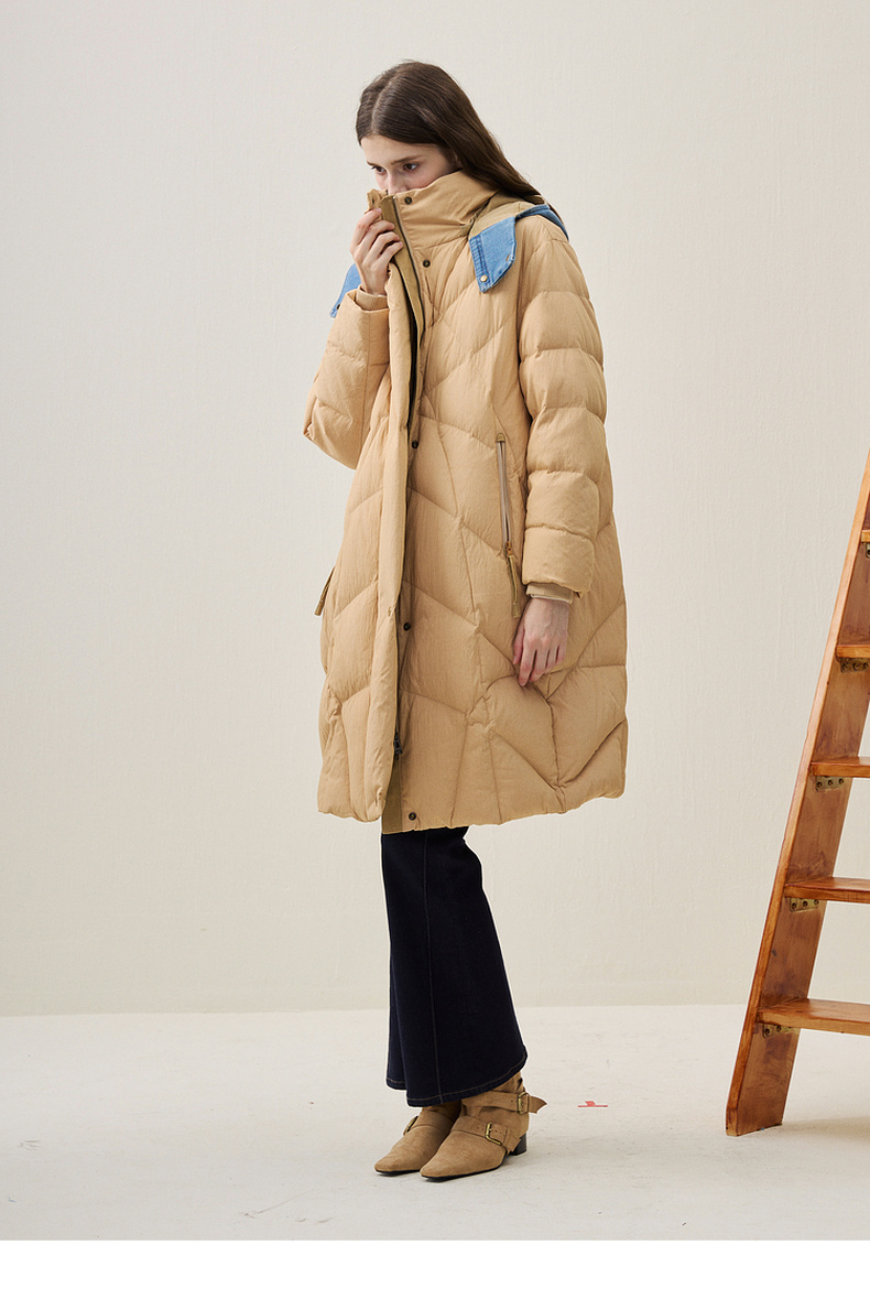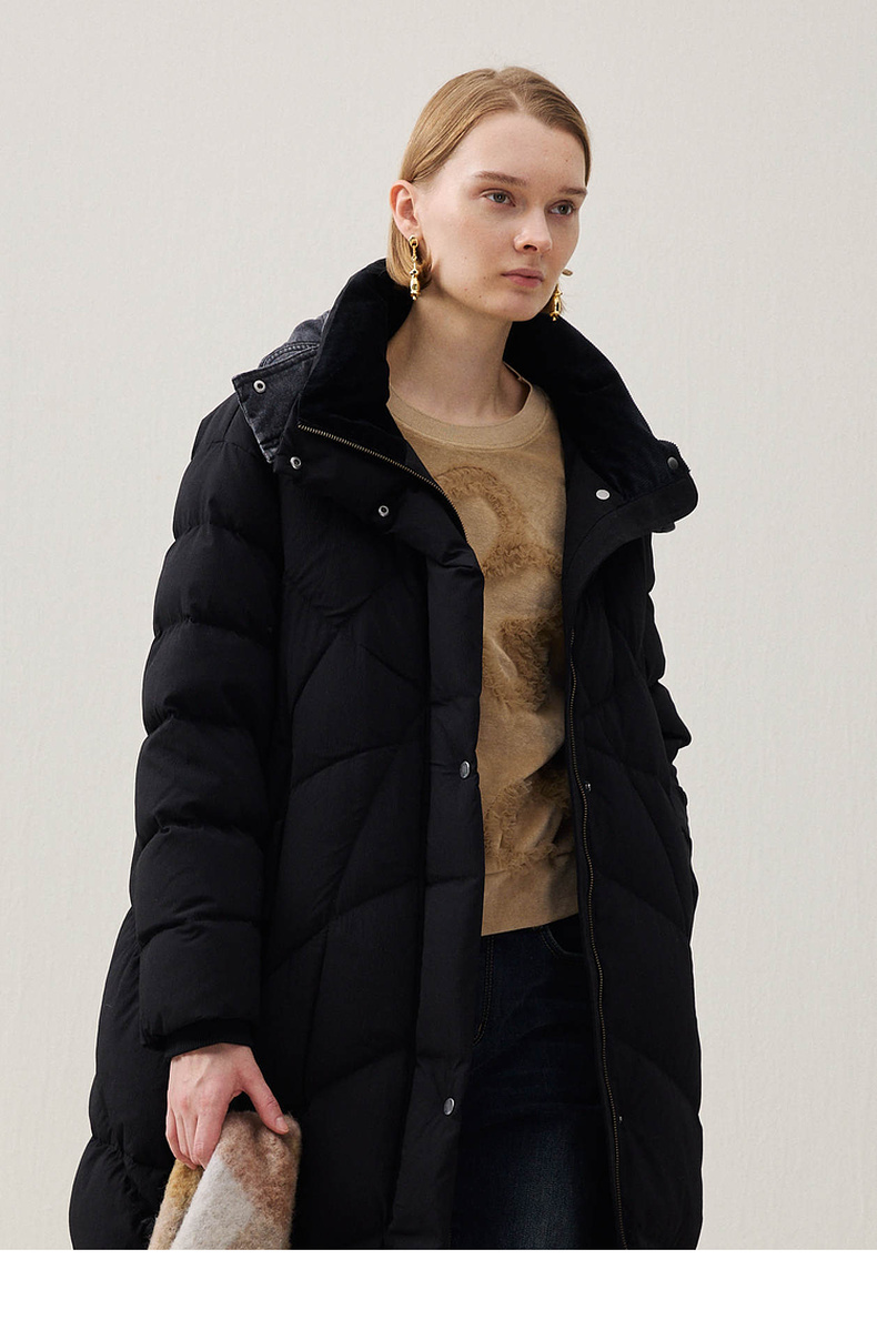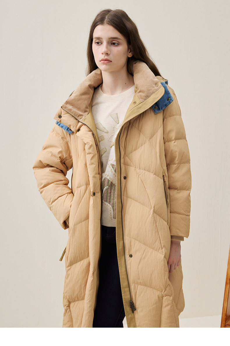 谜底连帽加厚羽绒服女2025冬季新品茧型长款可拆卸帽女254MY1725