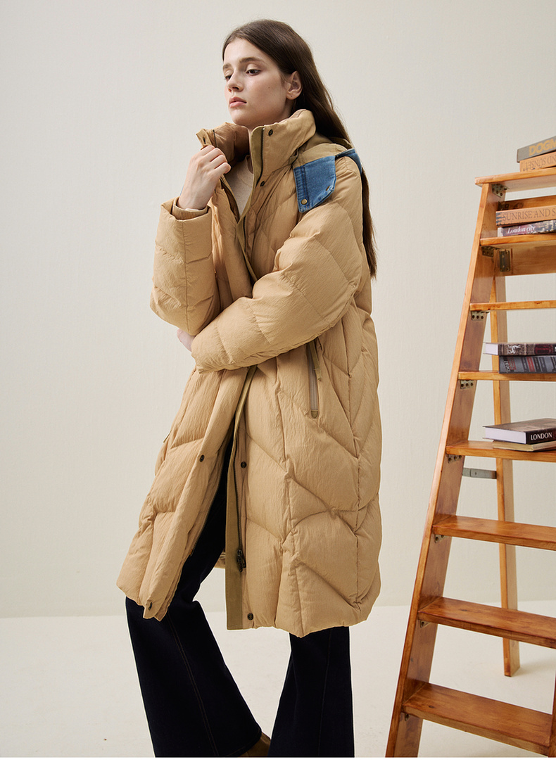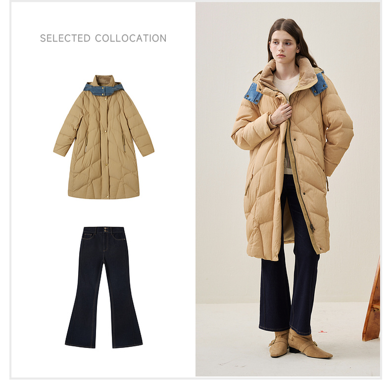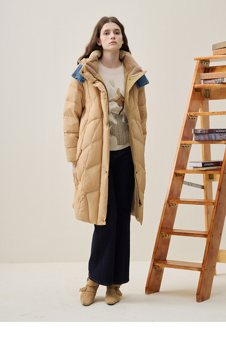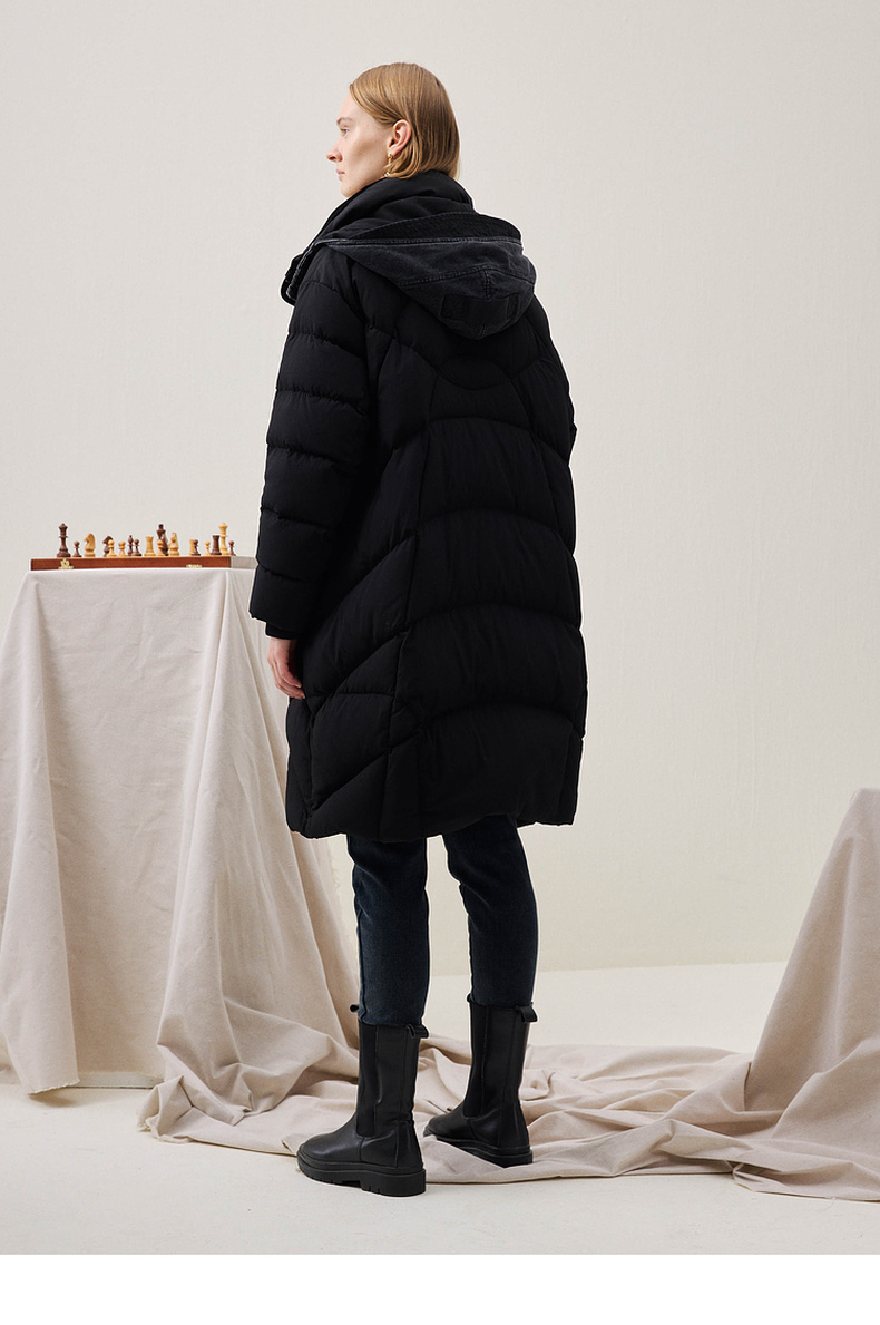 谜底连帽加厚羽绒服女2025冬季新品茧型长款可拆卸帽女254MY1725