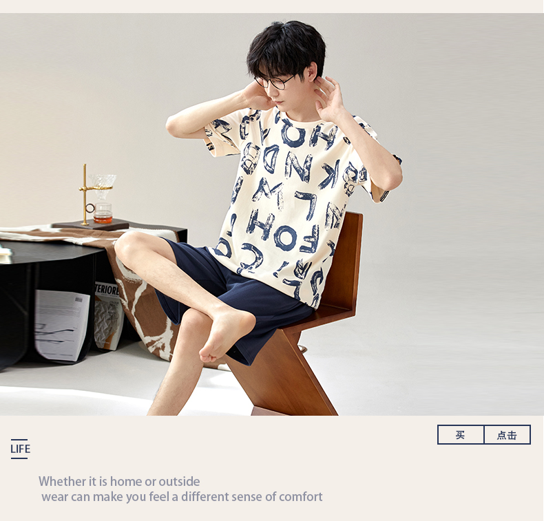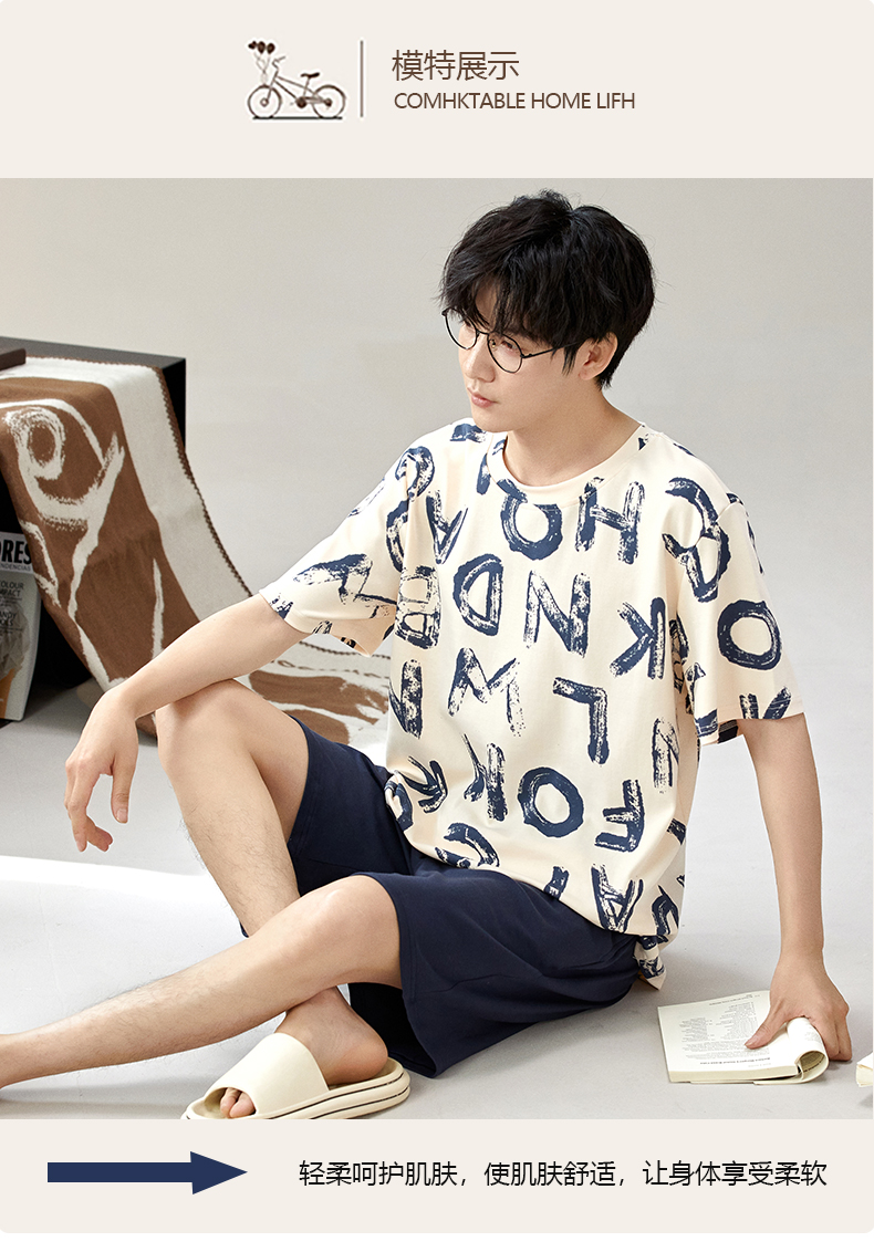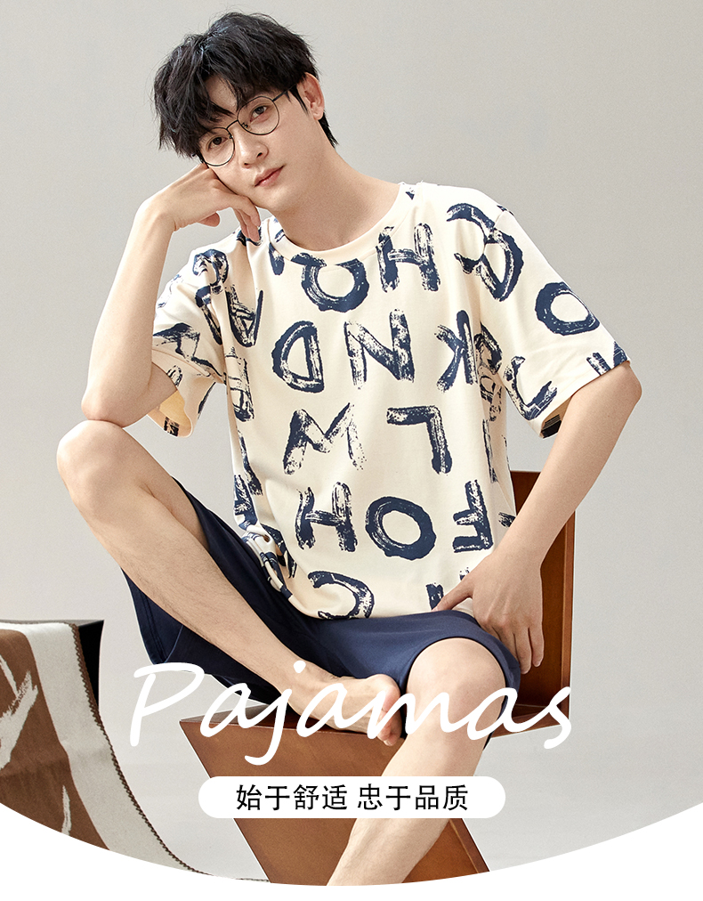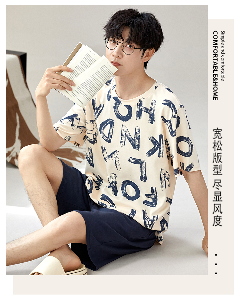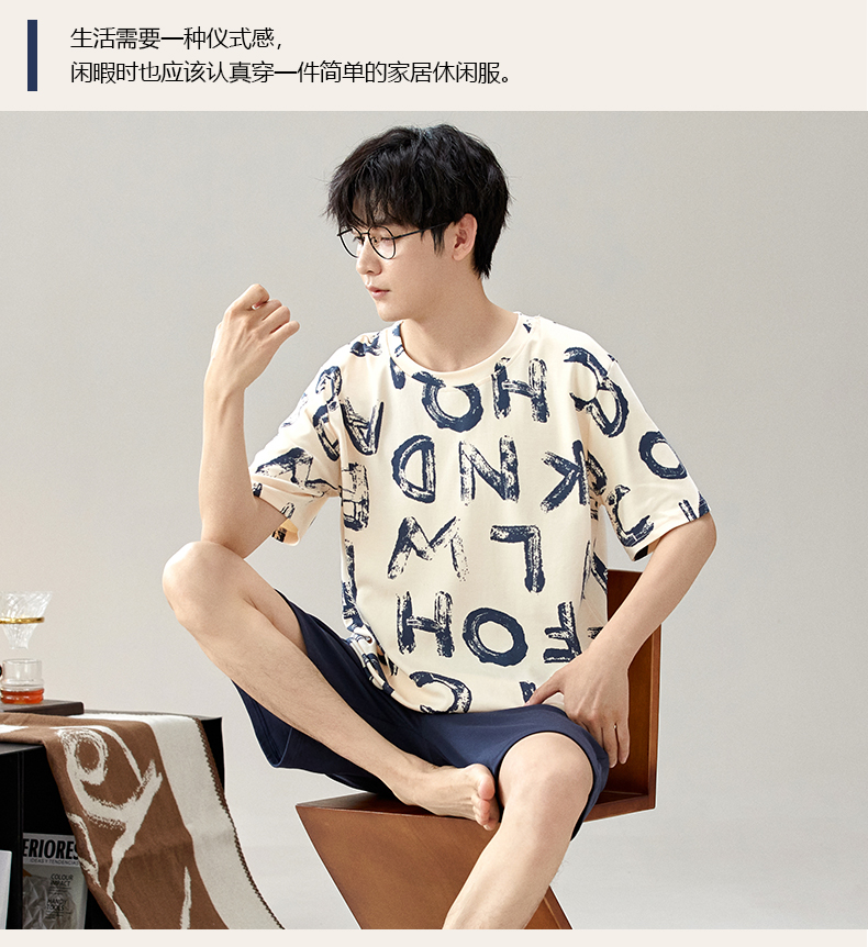 慢醒印花休闲男款家居服-短款