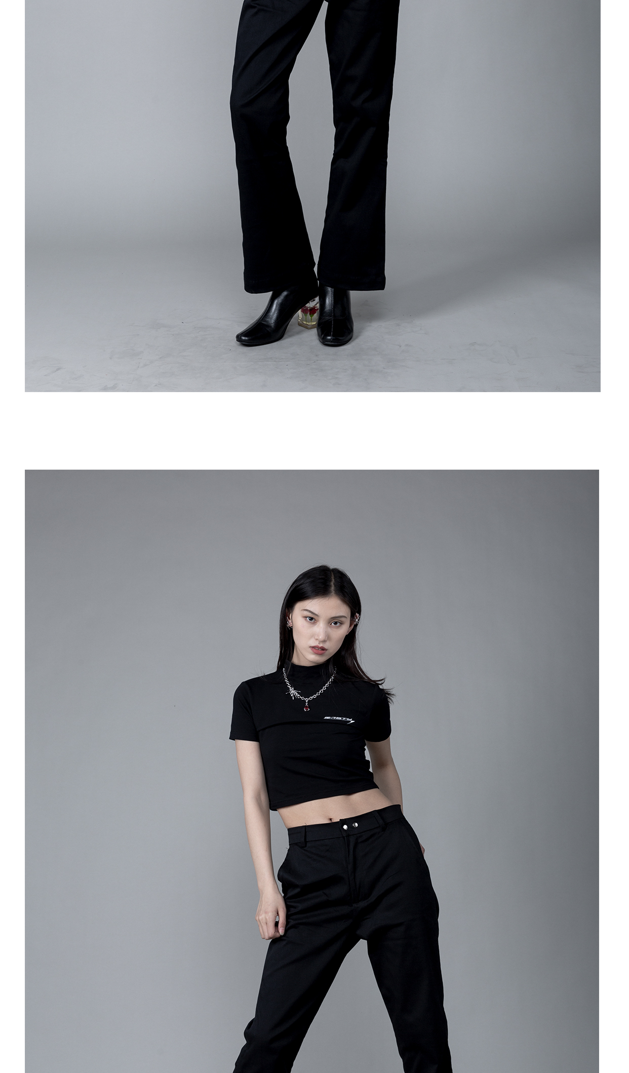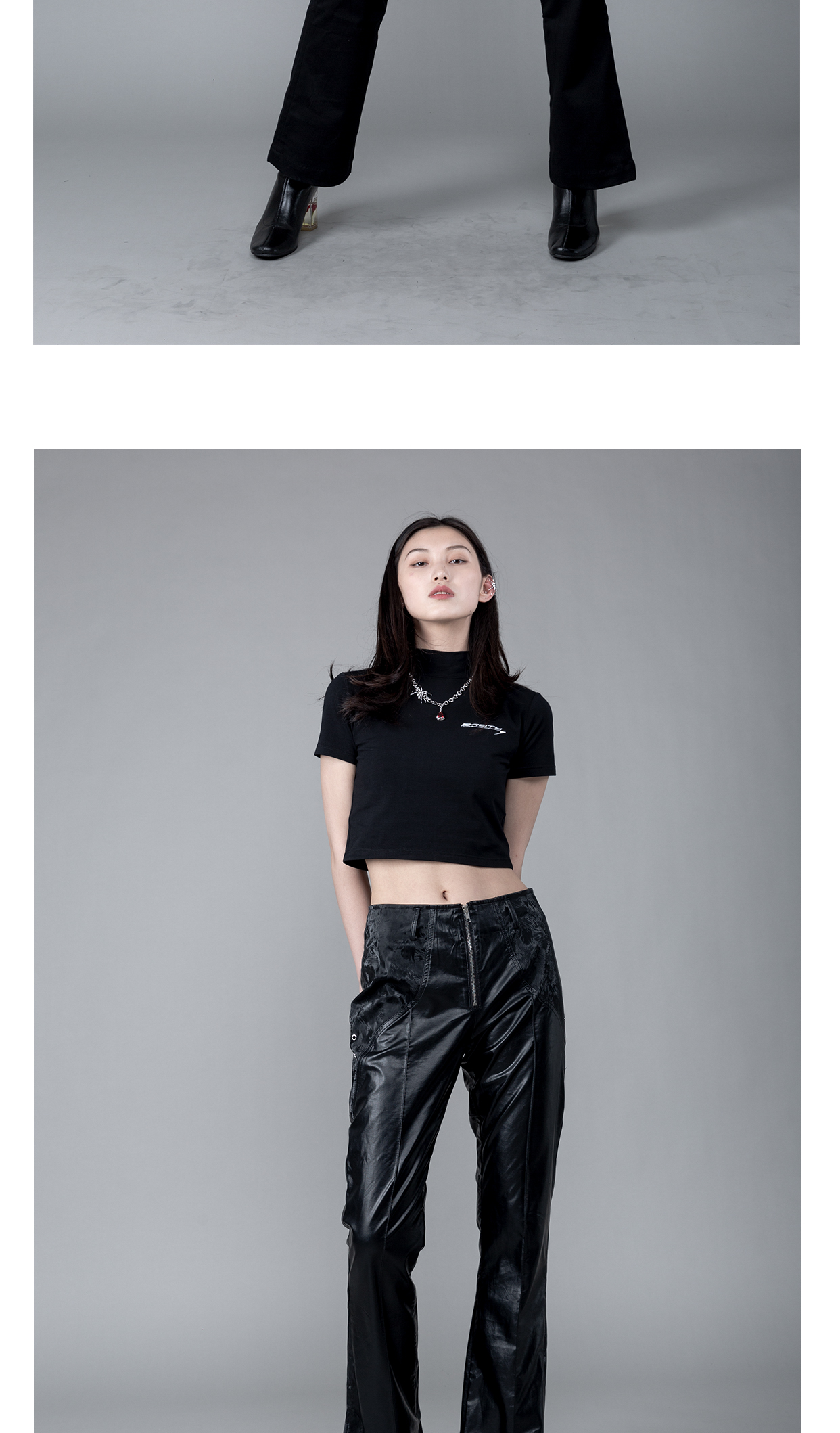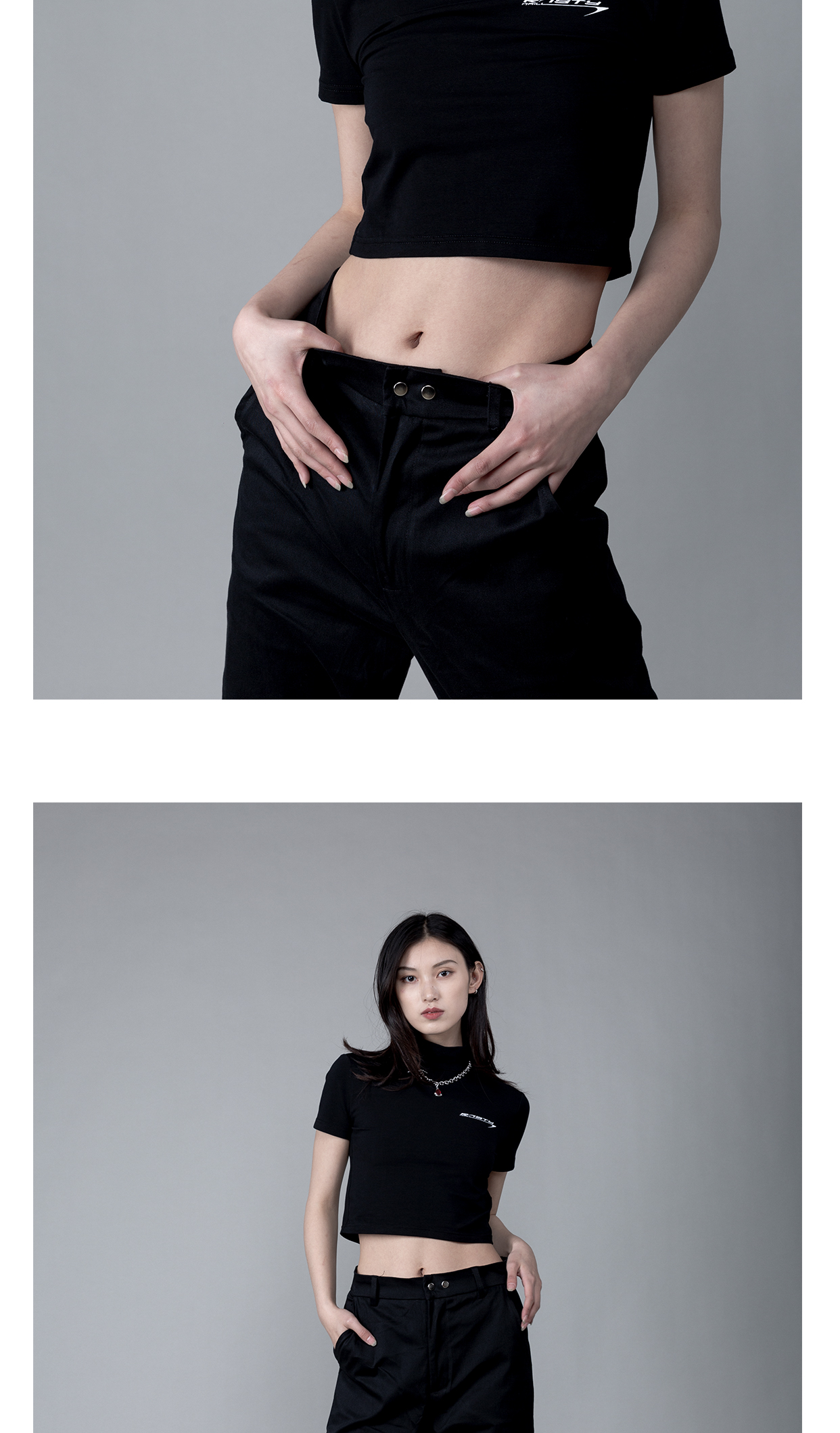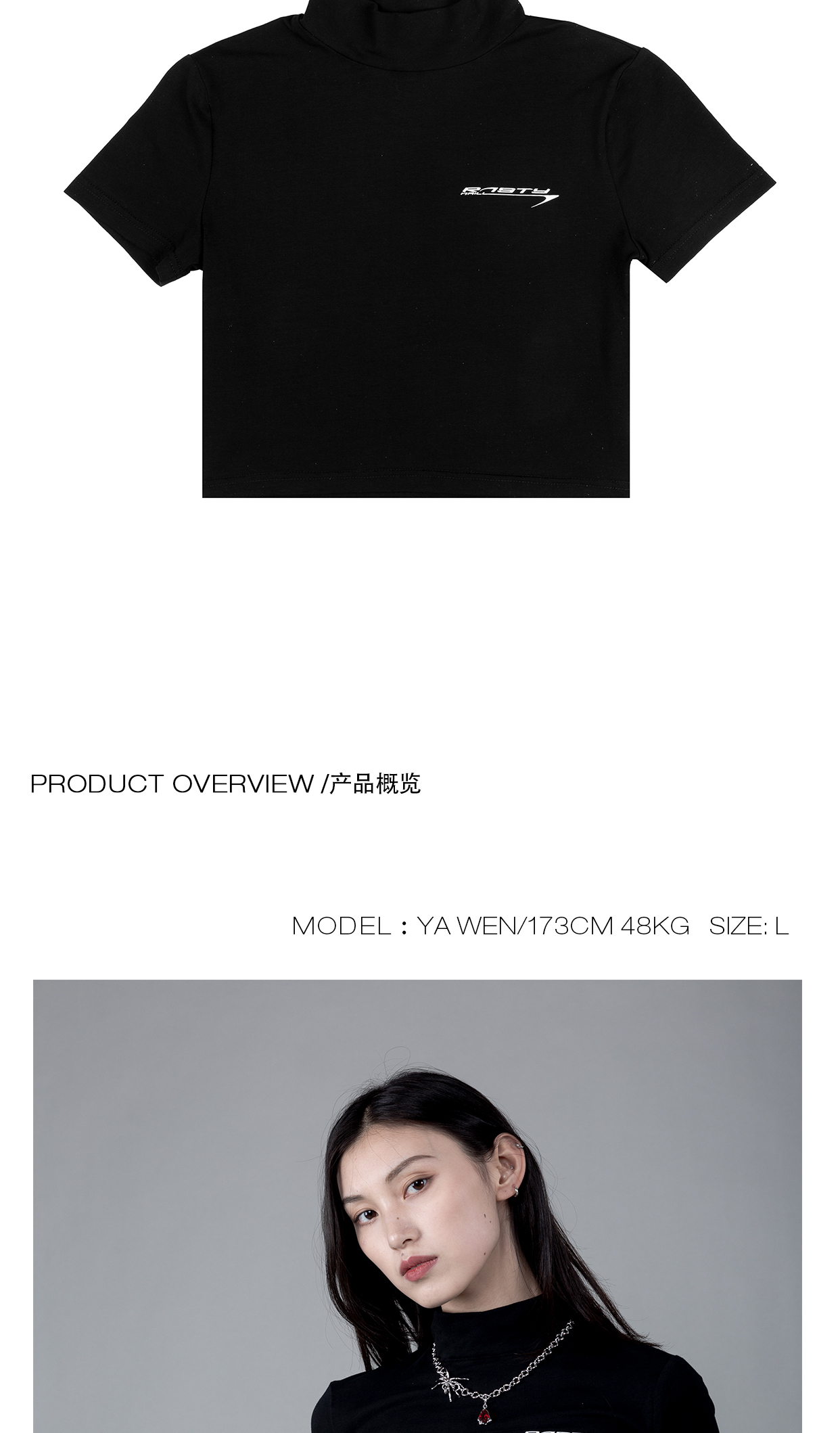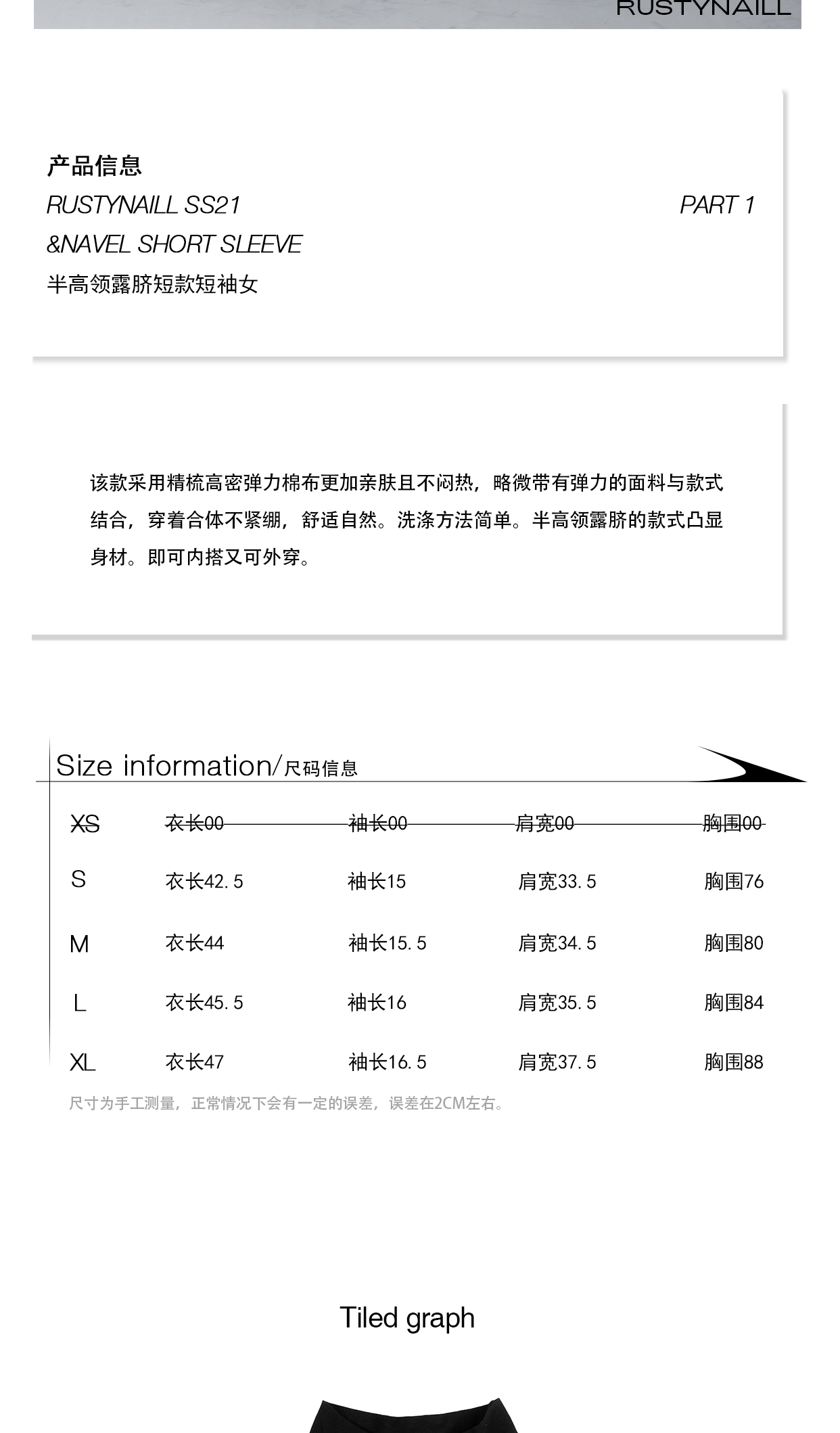 RUSTYNAILL春夏基础款紧身弹力半高领修身百搭辣妹露脐短款短袖女