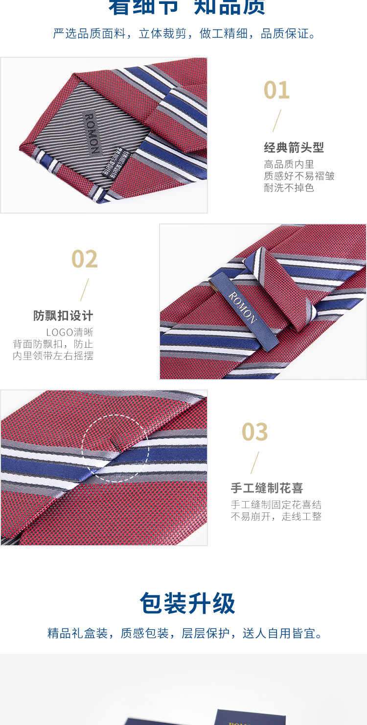 【精品礼盒装】罗蒙领带男时尚条纹职业正装商务休闲通勤结婚男士领带