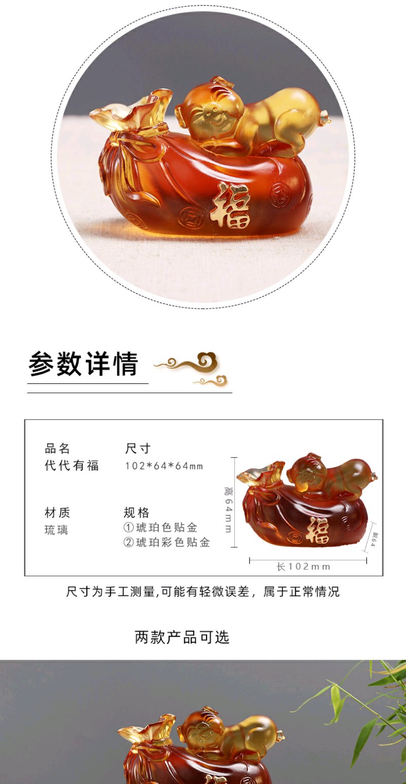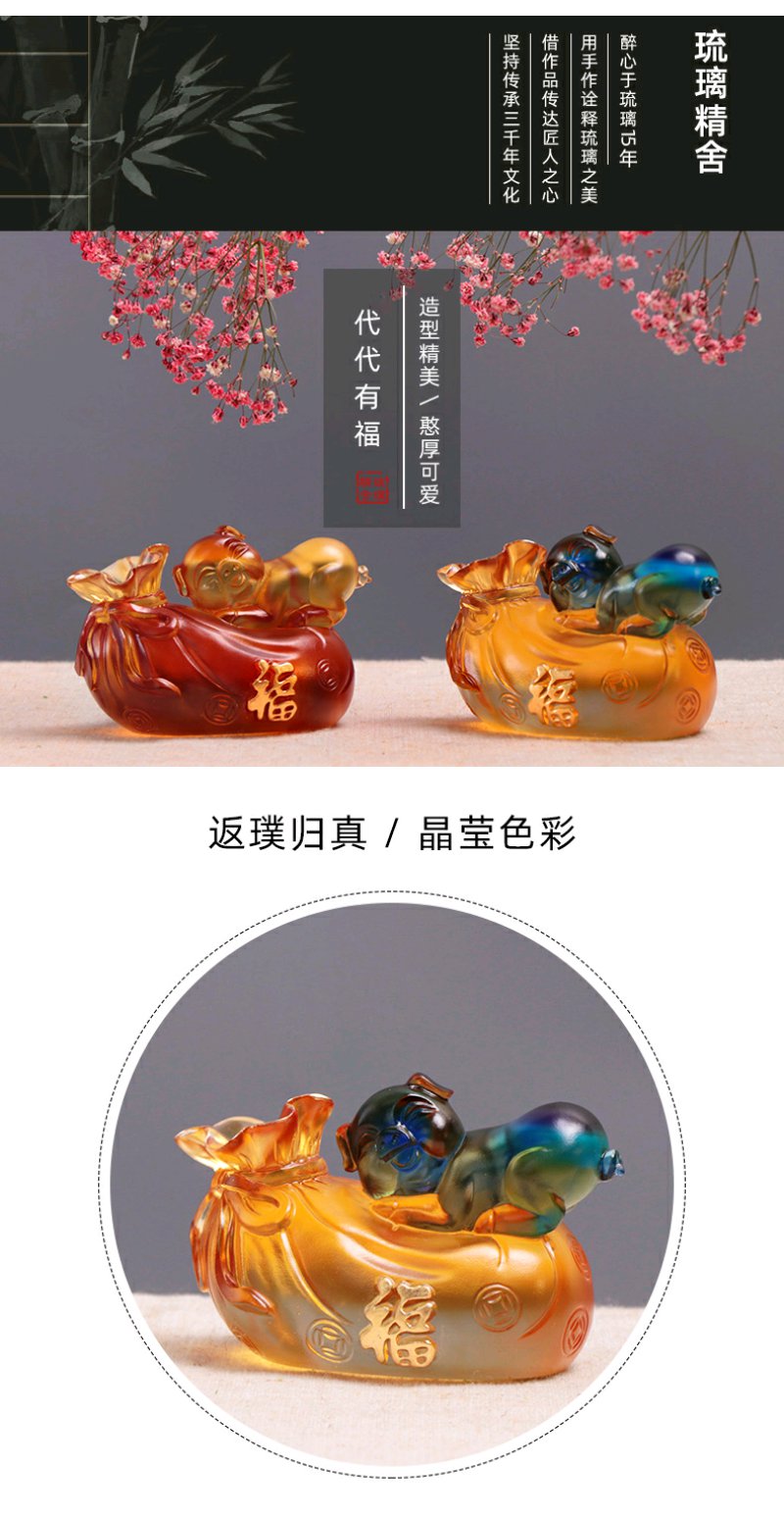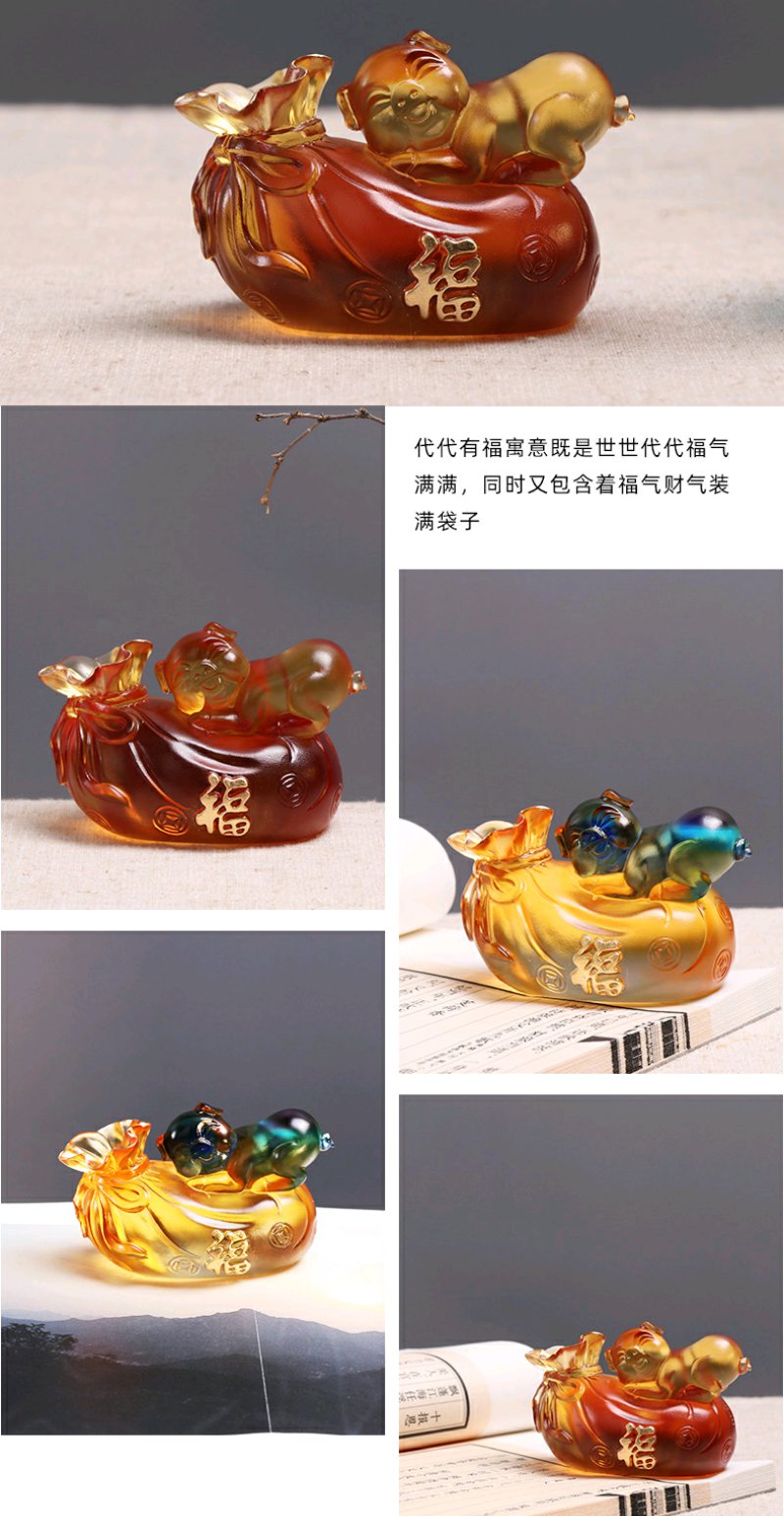 心缘堂 琉璃 代代有福猪可爱琉璃小猪生肖猪礼盒茶宠茶道配件