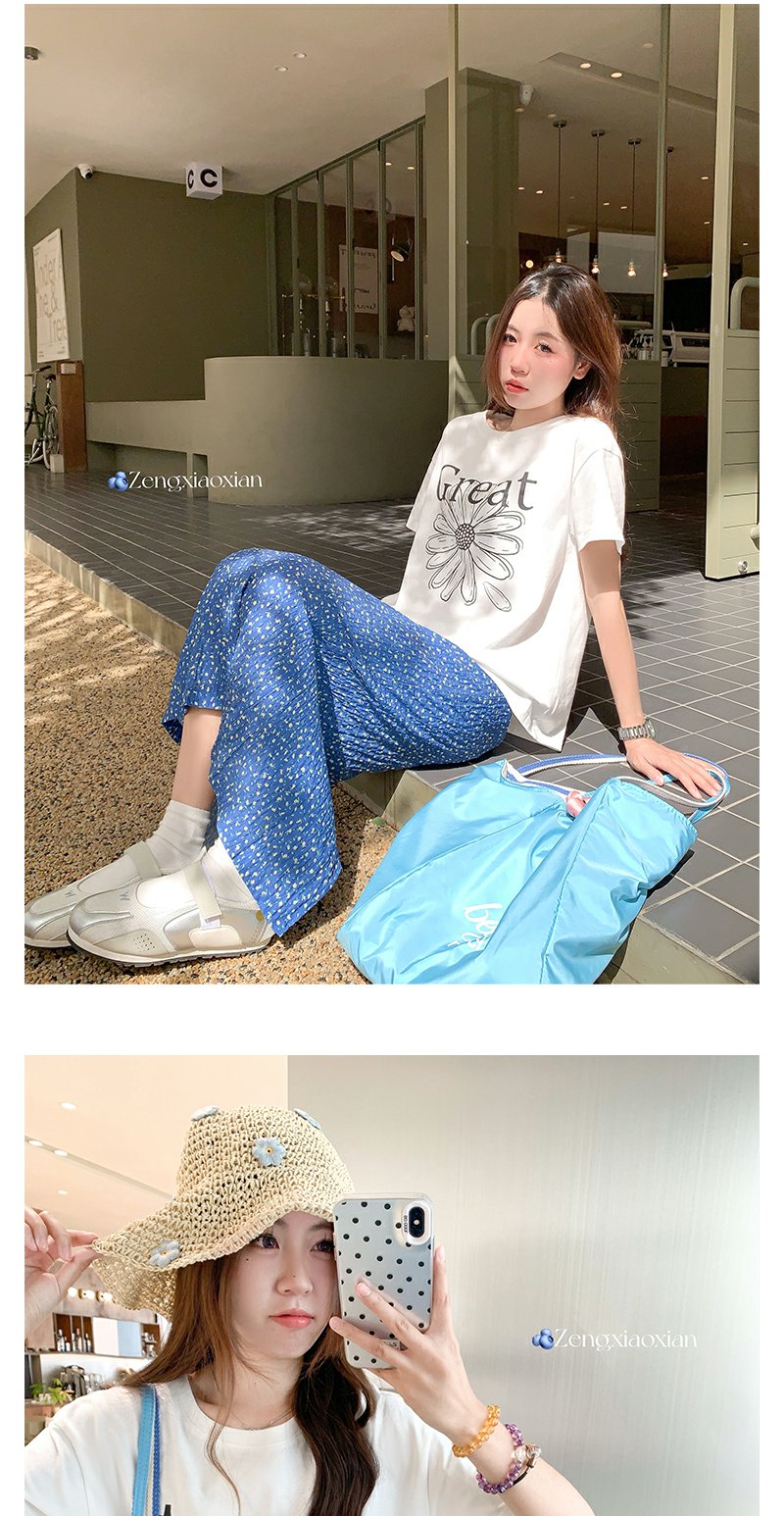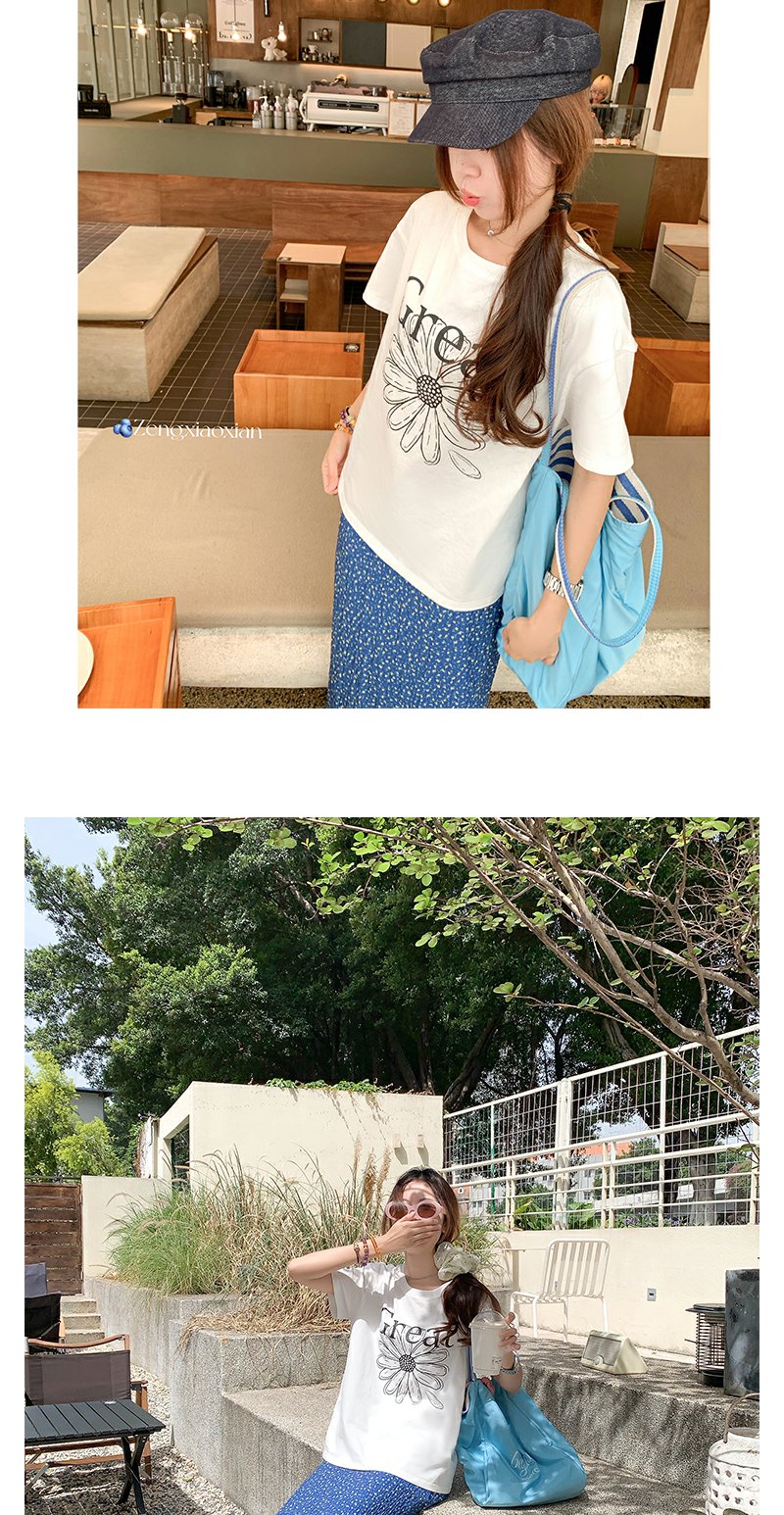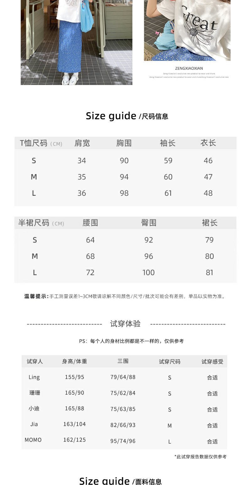<曾小咸推荐>韩版小邹菊短袖印花T恤蓝色碎花半身裙