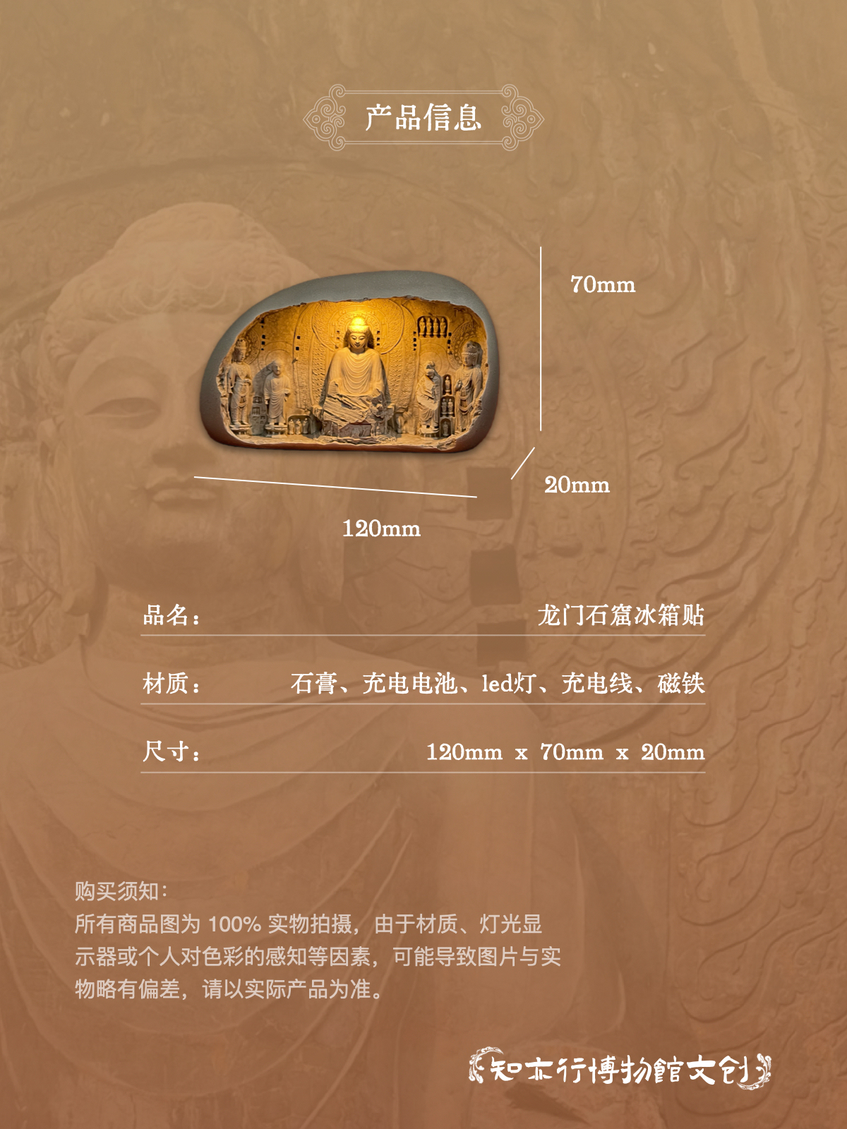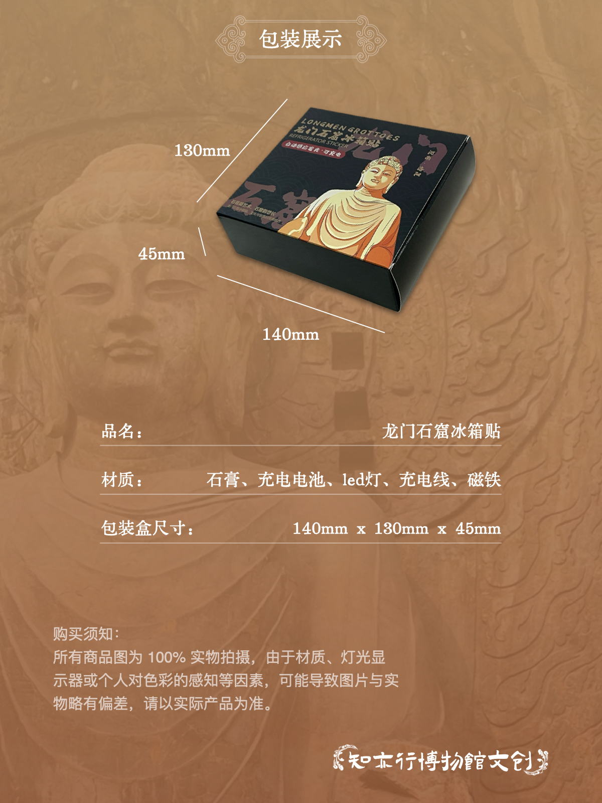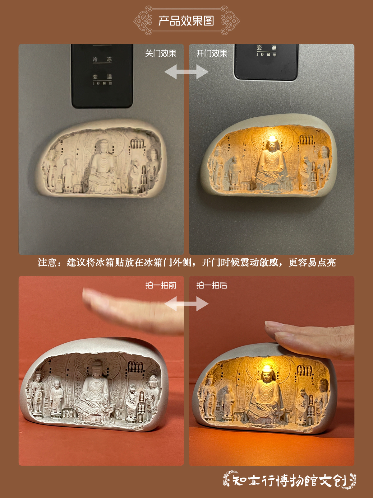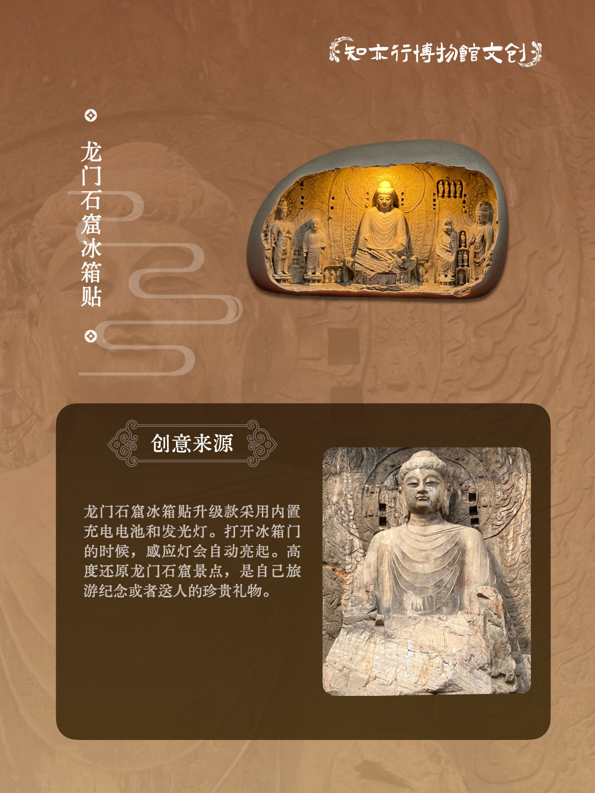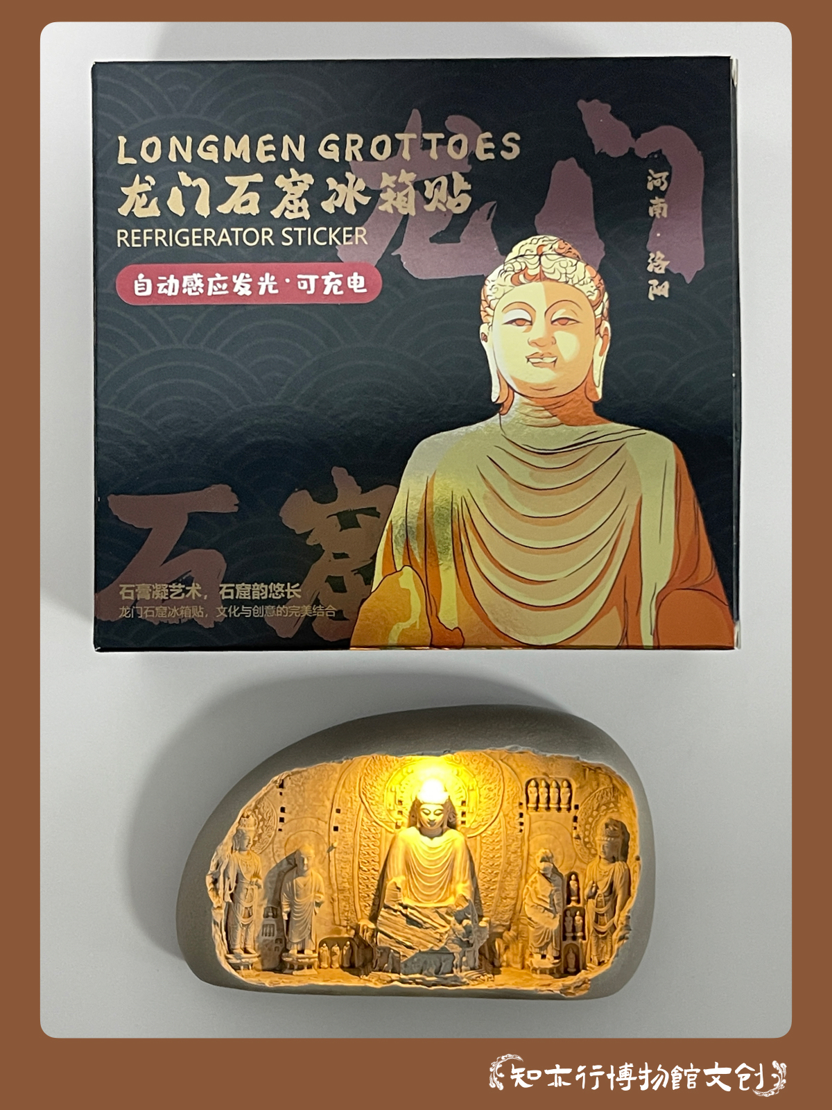 龙门石窟冰箱贴自动感应发光可充电河南洛阳文创礼品旅游纪念品