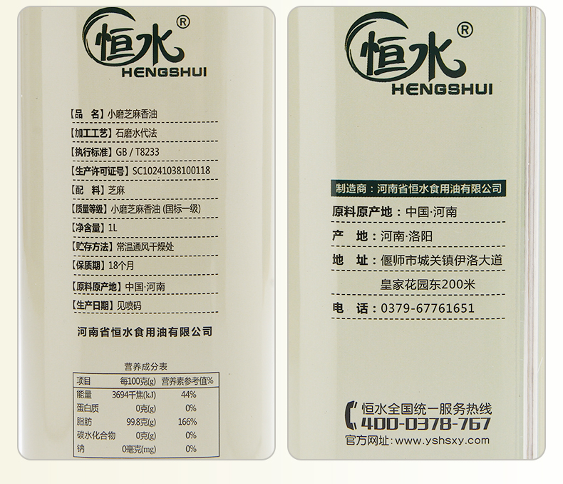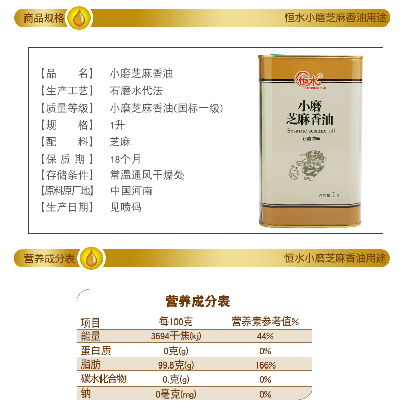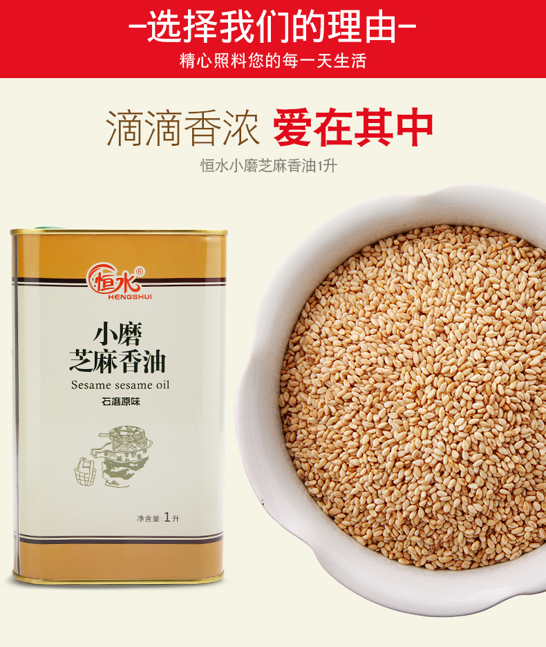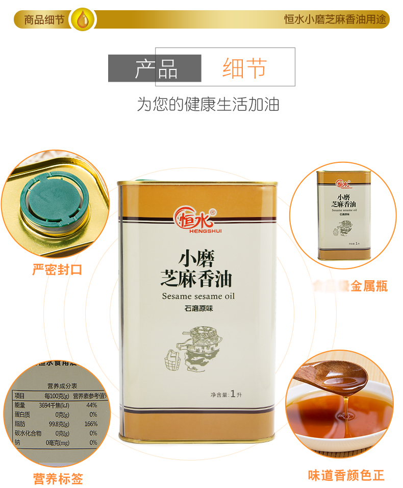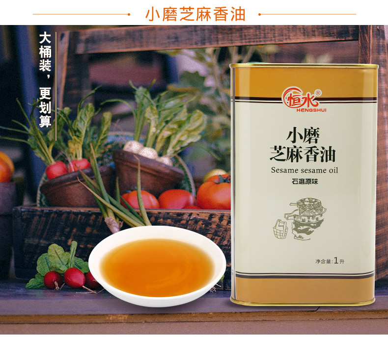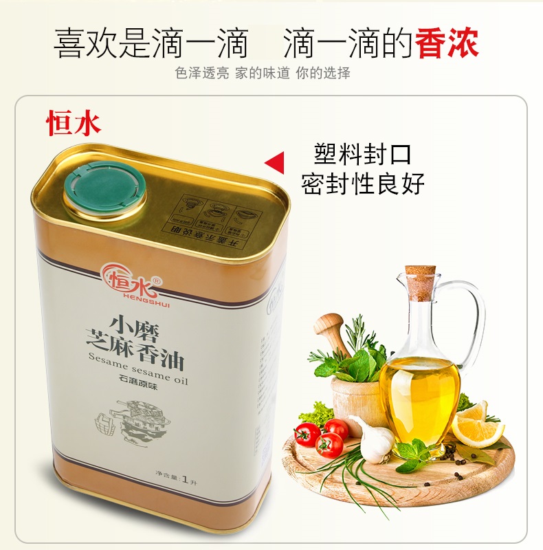 【自营】恒水纯小磨芝麻香油1L*罐(铁罐)