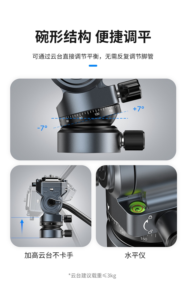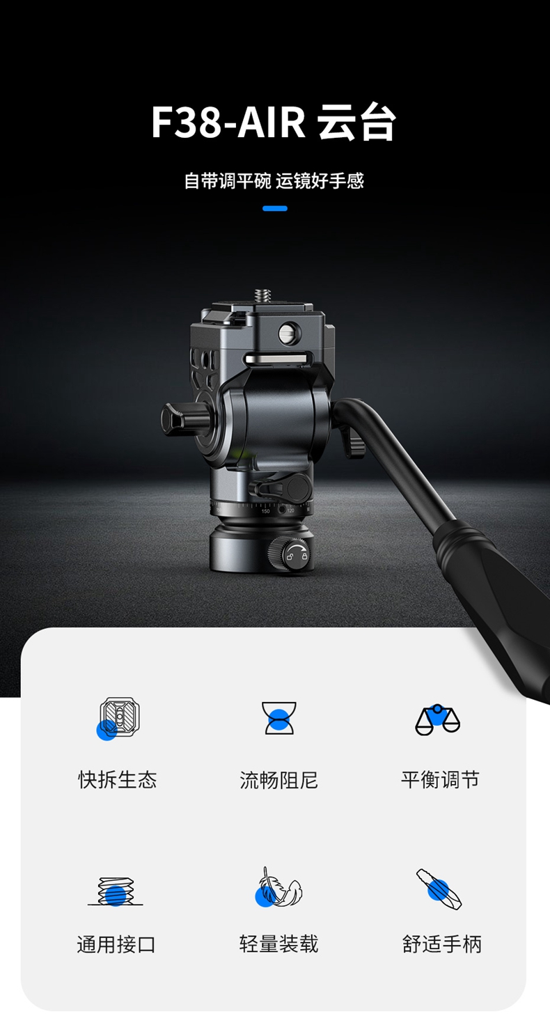 Ulanzi优篮子F38 AIR全景液压阻尼云台微单反相三脚架轨道滑轨通用碗式云台摄影摄像直播拍摄视频配件