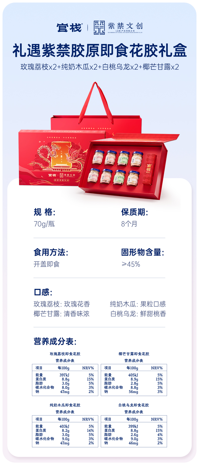 【限时特惠】官栈x紫禁文创-礼遇紫禁即食花胶礼盒 四口味孕妇滋补(70g*8瓶礼盒装)