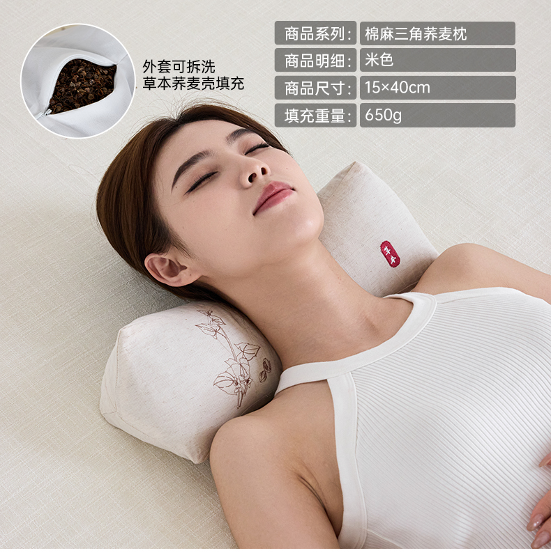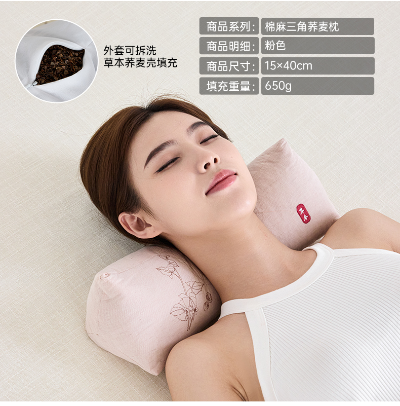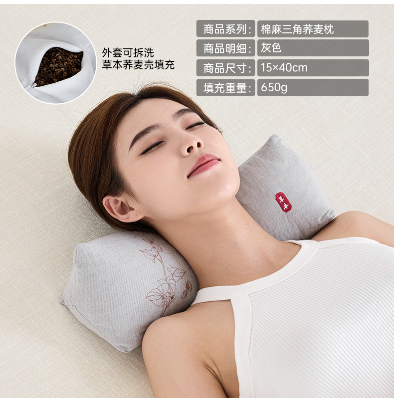 自然醒棉麻三角荞麦枕家用荞麦壳护颈椎牵引枕成人可拆卸枕芯睡眠专用XK