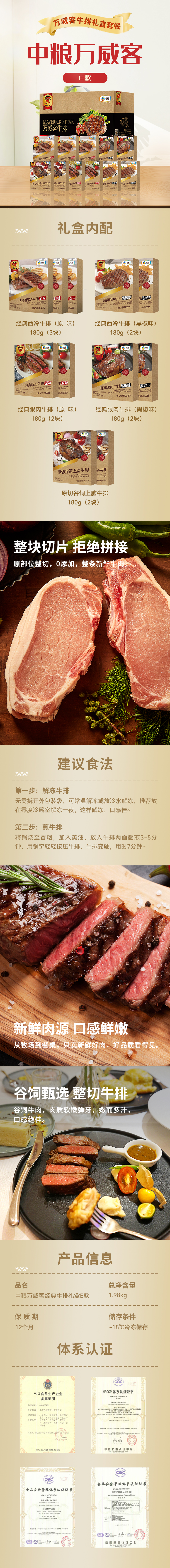 【自营】中粮万威客经典牛排礼盒E款1980g