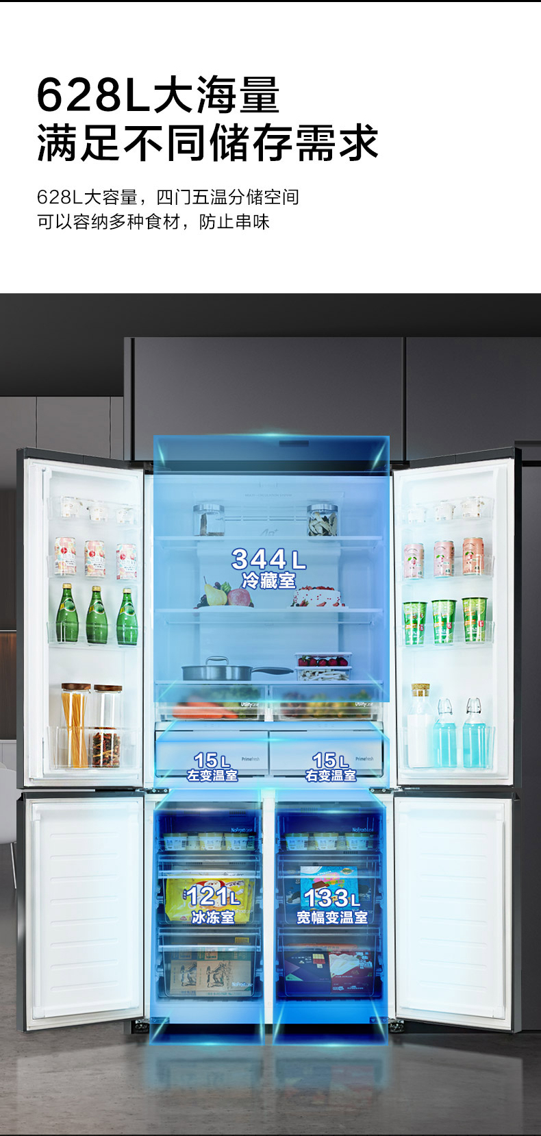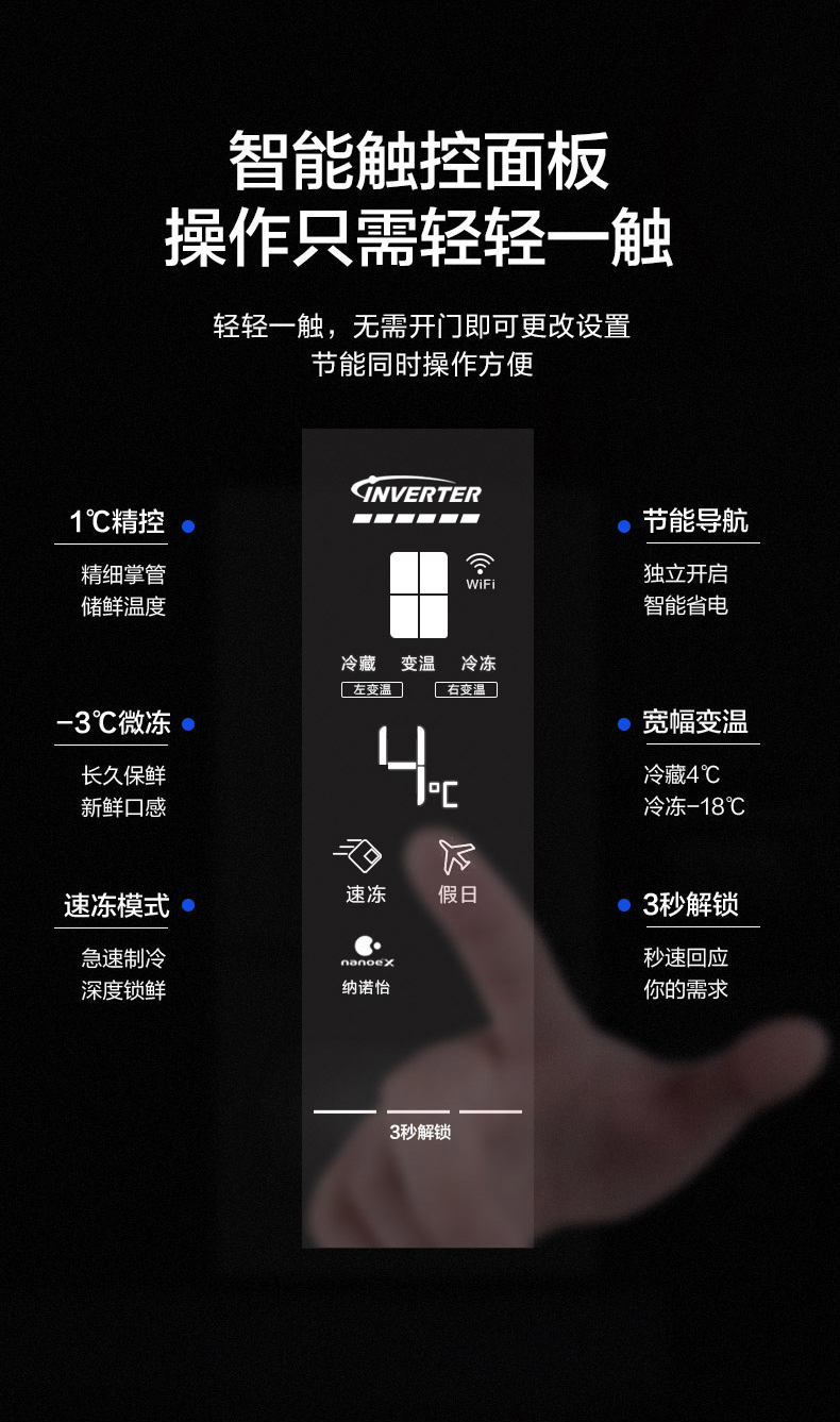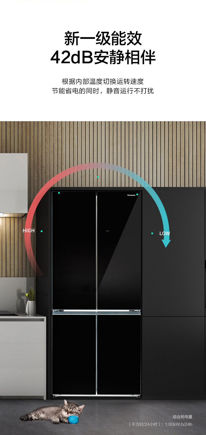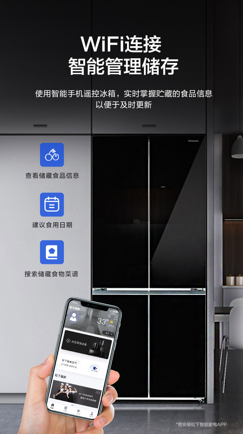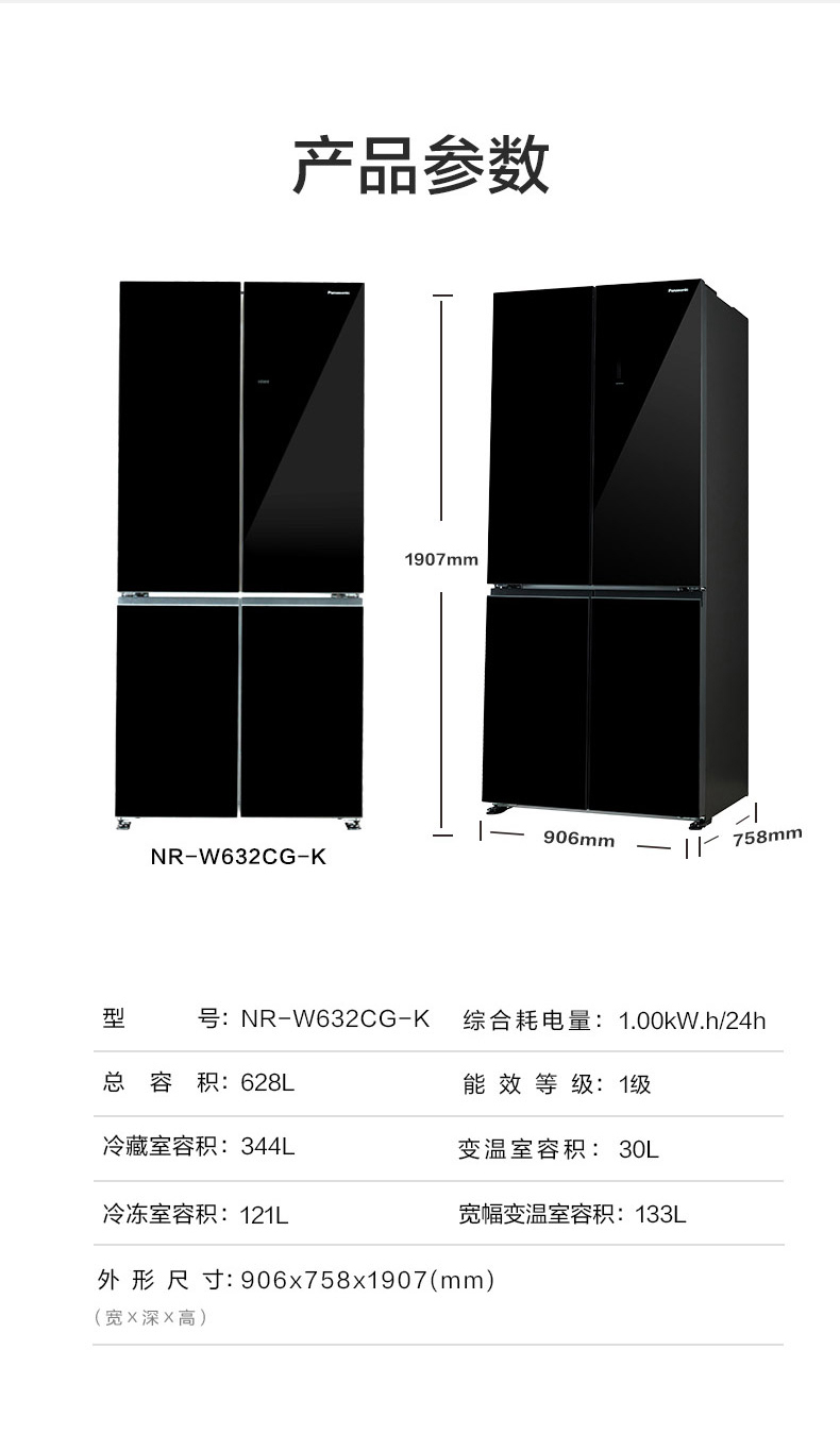 松下(Panasonic)628升十字对开门冰箱 智能变频风冷无霜电冰箱 一级能效微冻保鲜 熔岩黑 NR-W632CG-K