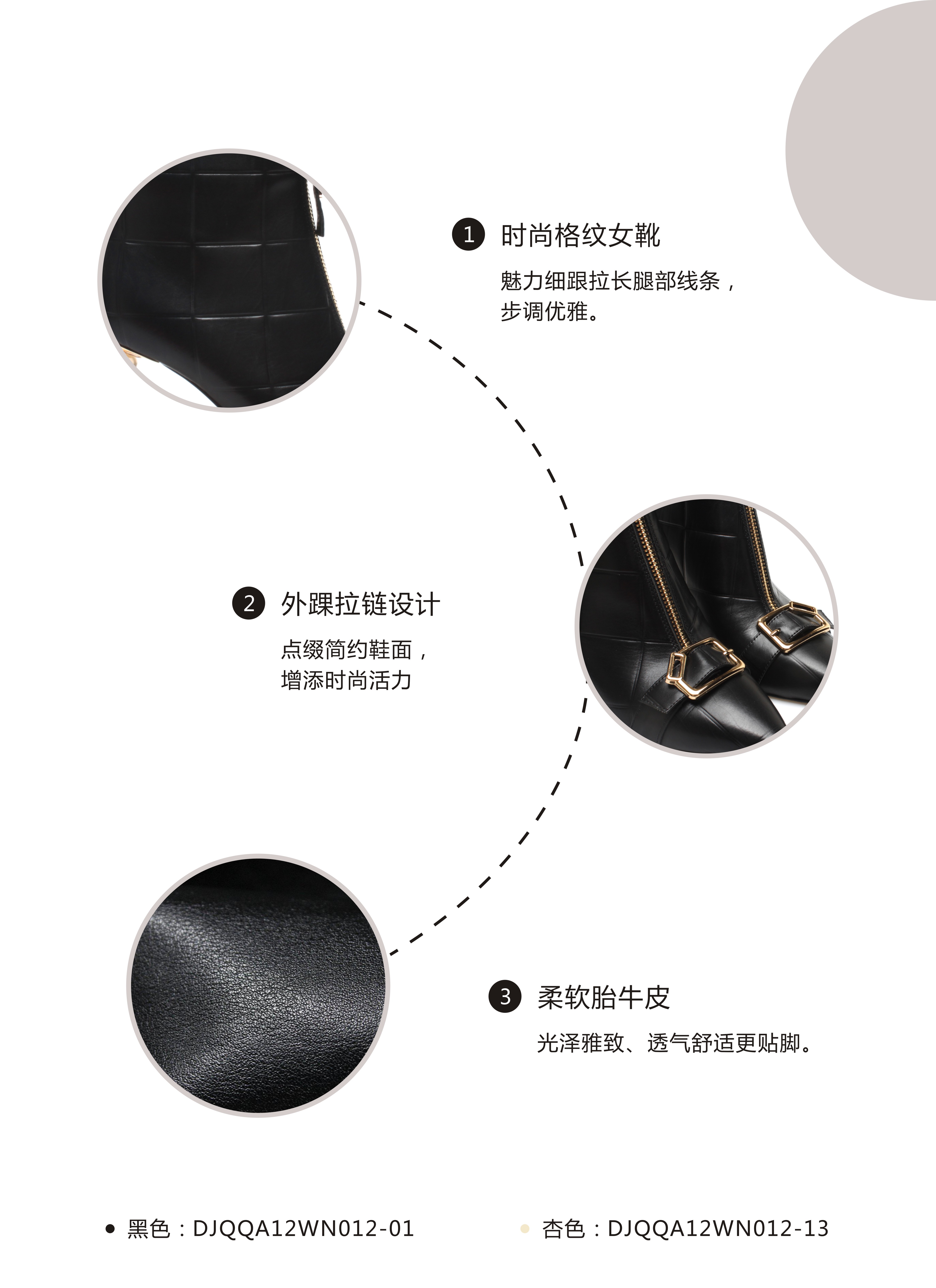 豪麟名鞋奥莱迪嘉女装胎牛皮革时尚雅致靴DJQQA12WN012黑色 原价2960元