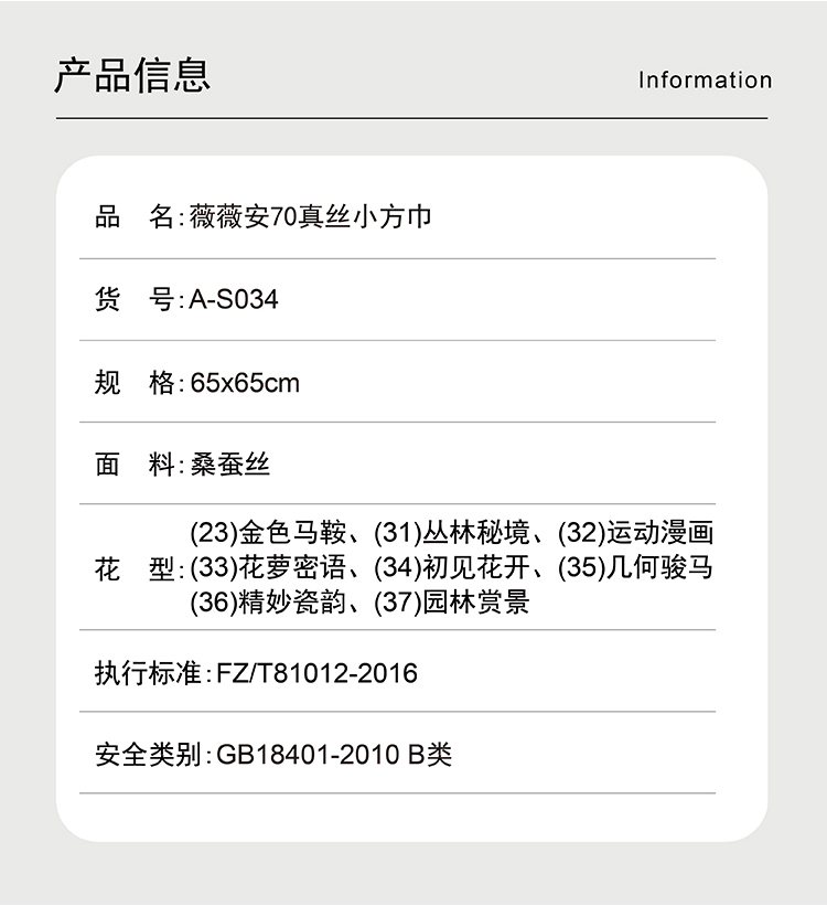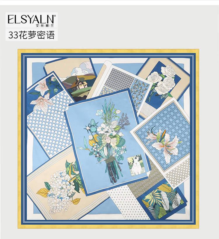 【100%桑蚕丝】薇薇安70真丝小方巾A-S034 尺寸65x65cm【赠礼盒】【Y】