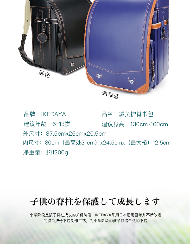 贵一点给孩子一个健康的书包 | 日本IKEDAYA池田屋 儿童减负护脊防驼背防水书包 6-13岁双肩背包[福利品]