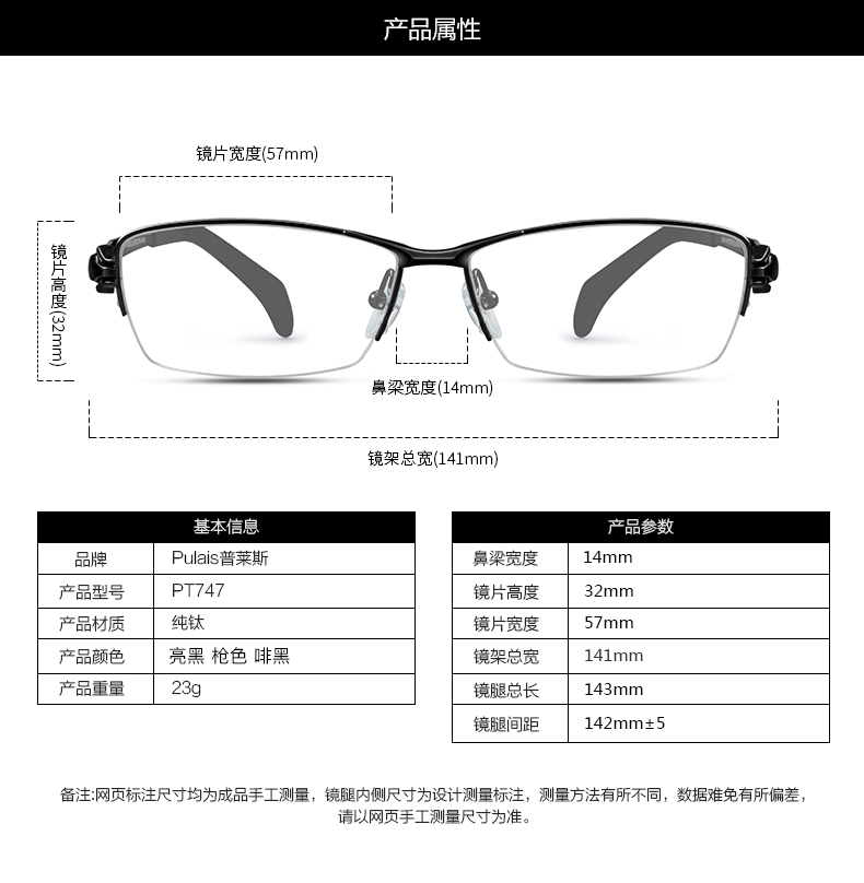 普莱斯PT747 商务纯钛 气质半框 双色可选